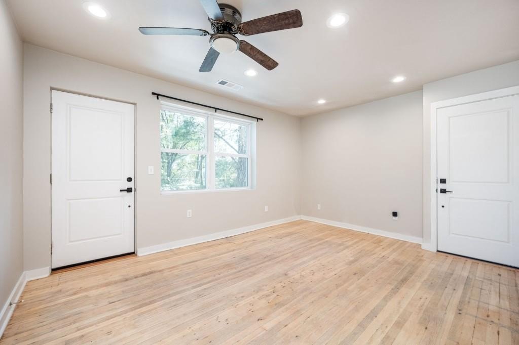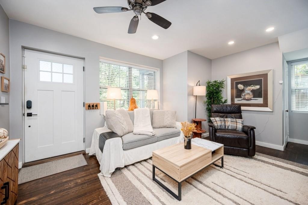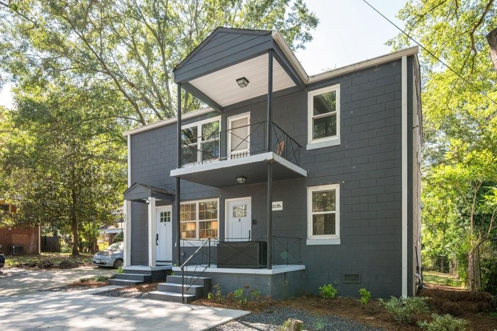 Welcome to this fully renovated two-story duplex in the heart of Hunter Hills, offering modern updates and flexible living or income opportunities. Each mirror-image unit features 2 bedrooms and 1 bath, with private outdoor spaces including an upstairs balcony and a downstairs covered porch. Interiors showcase refinished hardwood floors, updated kitchens with granite counters, stainless steel appliances, new cabinetry, and in-unit laundry. A stylish herringbone marble bath adds a touch of luxury. Recent upgrades include a new sewer line, an expanded driveway with 3 parking spaces, and refreshed landscaping designed for privacy and low upkeep. Separate gas and electric meters plus fiber optic internet provide added convenience. Just blocks from the Atlanta BeltLine and West Lake MARTA, and minutes from Downtown, Midtown, and Georgia Tech, the location offers easy access to parks, recreation, and major city attractions. This turn-key duplex is a rare find in one of Atlanta's fastest-growing neighborhoods.