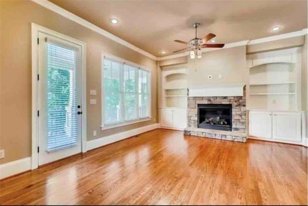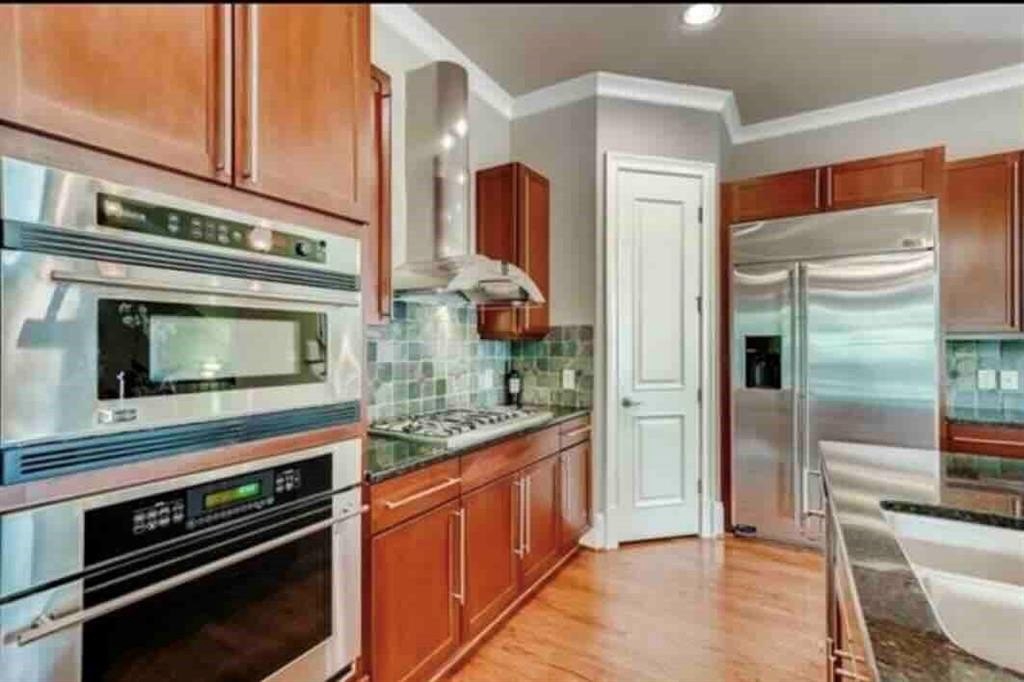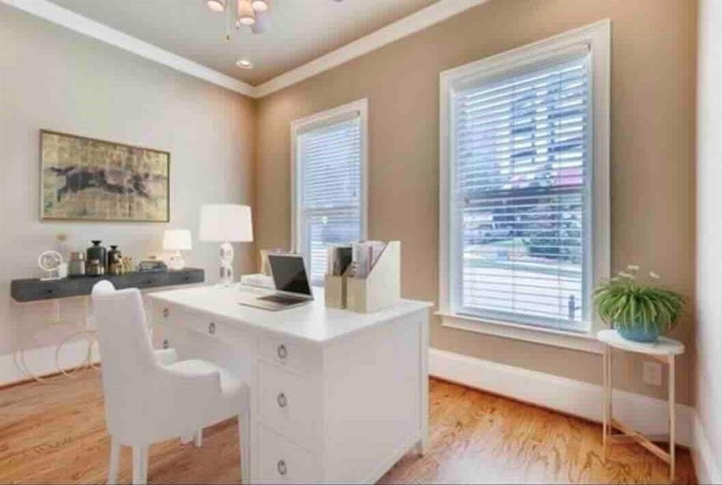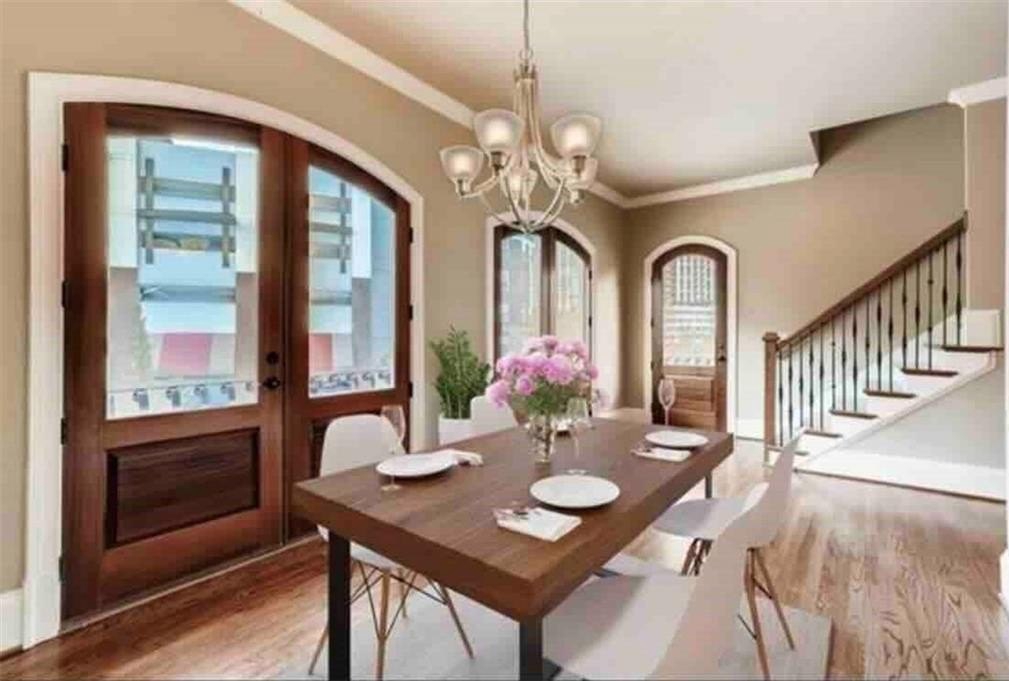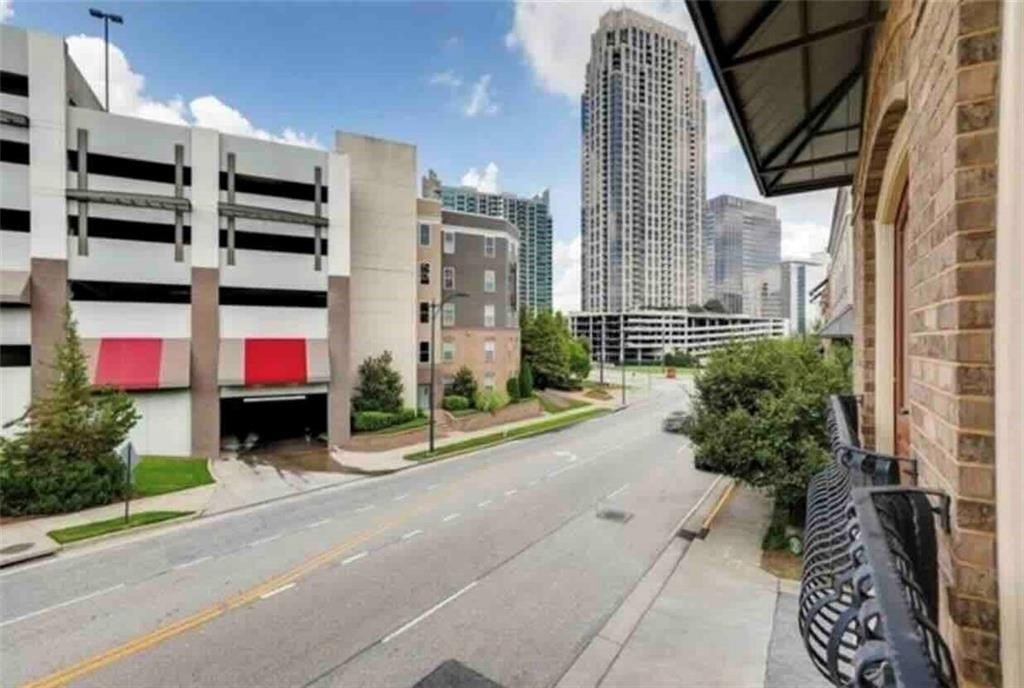 END UNIT – GORGEOUS EUROPEAN-INSPIRED TOWNHOME IN THE HEART OF ATLANTIC STATION! Located in a charming enclave of European-style townhomes with picturesque sidewalks, this beautifully maintained 3-bedroom, 3.5-bath residence offers stunning Midtown skyline views from its spacious porch. The open-concept layout features a generous kitchen with stainless steel appliances, a bright eating area, and a cozy living room, along with a separate formal dining room. Upstairs, two large bedrooms each boast private en-suite baths, while the lower-level bedroom is perfect for a home office. Hardwood floors, a gourmet kitchen, and ample natural light add to the home's appeal. Additional short-term parking is available in the back, complementing the 2-car garage and extra driveway space for two more vehicles. Enjoy the best of city living with shops, restaurants, and entertainment just steps away, yet nestled in a peaceful retreat. Take the free Atlantic Station shuttle to MARTA Arts Center Station for easy access to all of Atlanta, or stay close to home and experience the vibrant holiday festivities right in your neighborhood!! No rental restrictions. Priced to sell!