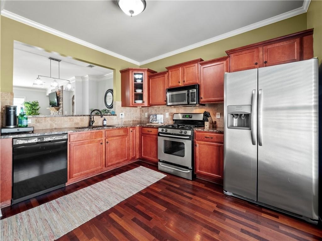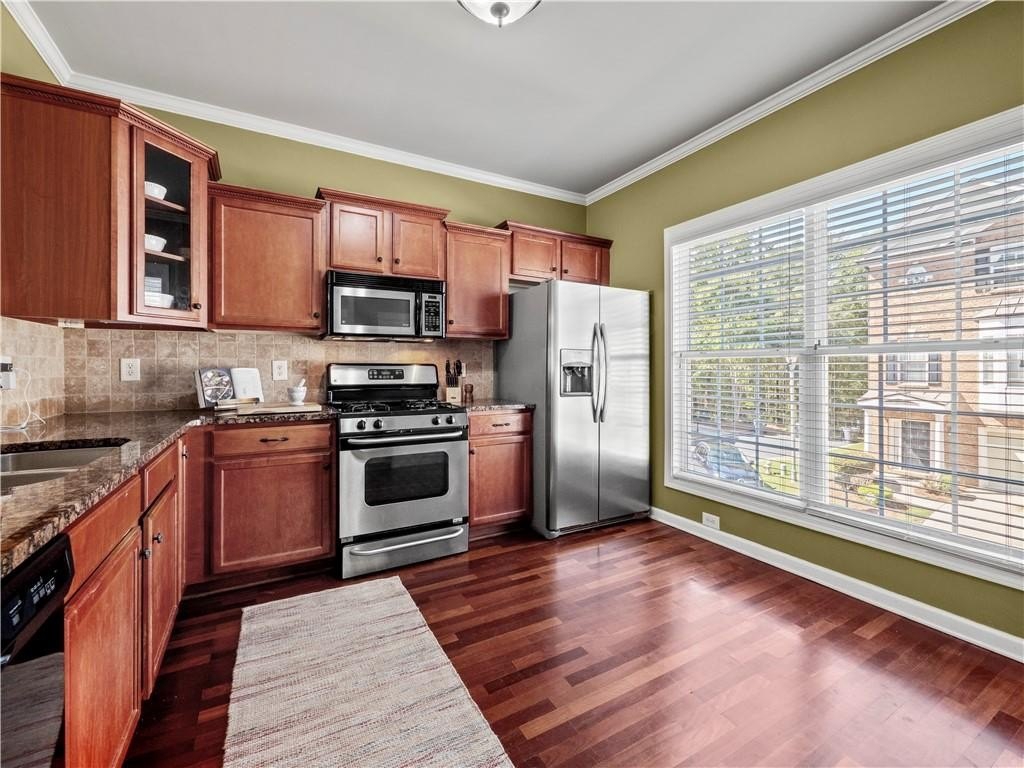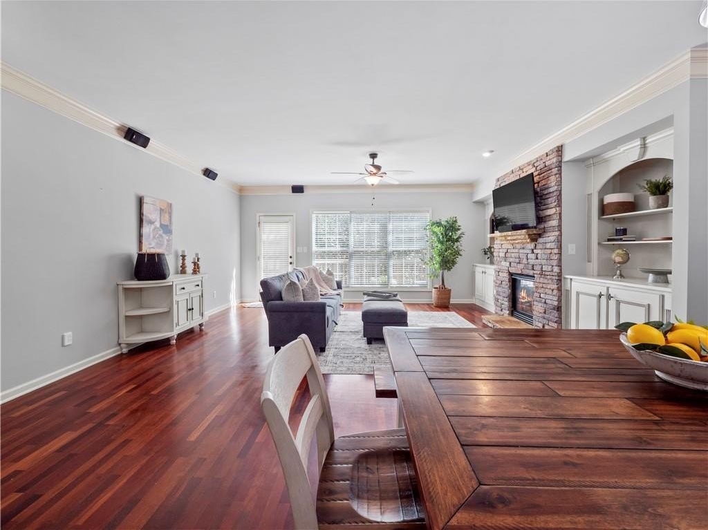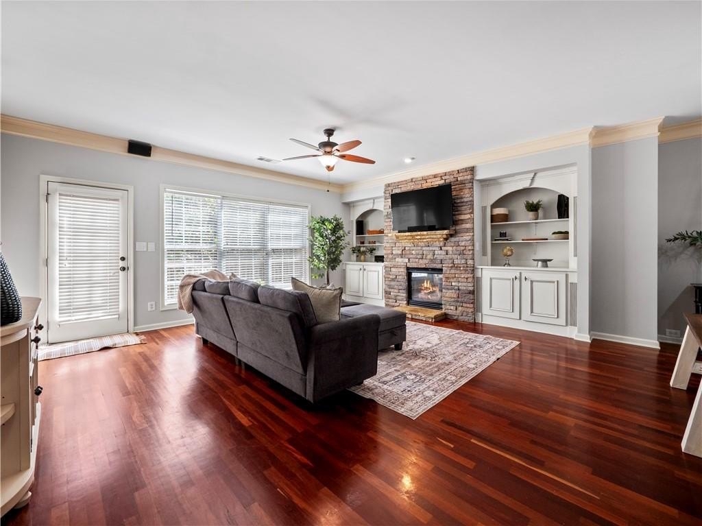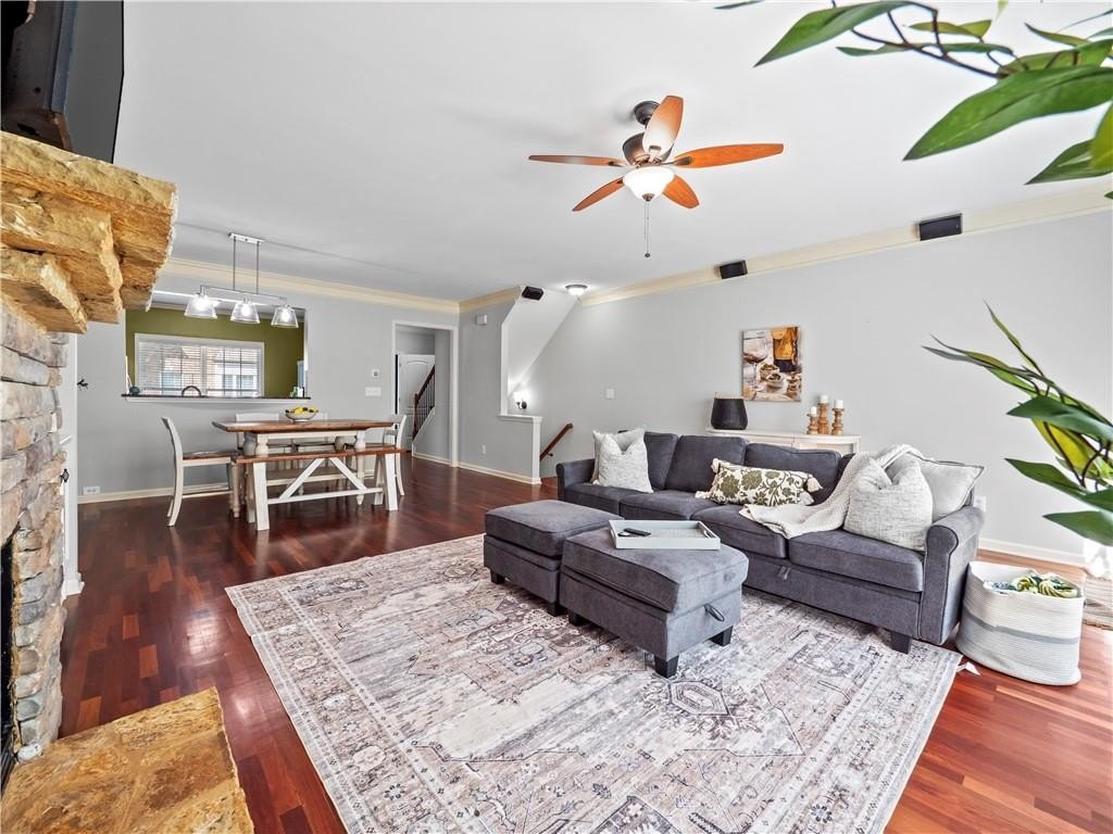 Enjoy the unbeatable convenience of living near the Mall of Georgia, with a wide variety of shopping, dining, and entertainment options right at your doorstep. Quick access to major highways makes commuting a breeze! This three-story townhome ideally located just moments away from the Mall of Georgia! With a private one-car garage and ample living space, this home is perfect for those seeking comfort and convenience**Spacious Layout:The kitchen showcases beautiful hardwood floors, enhancing its elegance. It's perfect for cooking and entertaining has stainless steel appliances, breakfast area a& under mount lighting with pantry. The Living Room is highlighted by custom shelving and a stunning stack stone gas fireplace, providing a cozy atmosphere for gatherings or quiet evening . The Dining Room is open to the Great Room for function & Entertaining. The 3 bedrooms & multiple private spaces make this home designed for versatility and privacy. Each bedroom features its own distinct charm and plenty of room to relax. The upstairs bedrooms are thoughtfully designed in a roommate plan, with walk in closets, private bathrooms, providing each occupant with their own space and privacy. The first floor features a flex room currently a bedroom with its own full bathroom & walk in closet. First Floor entry foyer to drop your keys ! The First Floor also features a covered porch & private patio. The second floor has a deck just off the Living room for entertaining. Schedule your showing today !