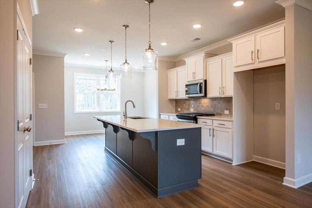 Traton Homes Kaufman C is MOVE IN READY NOW! Wilkins Walk welcomes you to a spacious ensuite on the entry level of this beautiful 3-story open layout in Mableton. The ensuite could be a home office, exercise room, playroom...so many possibilities! Light grey hardwood stairs lead to your main living area, with a kitchen that includes a gas top range, microwave hood, white cabinets and carrera colored quartz countertops. The oversize island with gray cabinetry is great for everyday enjoyment as well as entertaining! Enjoy your electric fireplace located in the spacious family room. The fireplace remote allows you to change the colors of the flame and adjust the heat from the fireplace. Such a cozy feature! From your family room you can walk out to the large open deck, while watching the fireplace. The upper level of this amazing home offers a spacious owner's suite and walk-in closet. The bath includes a dual vanity, extended white tile shower wall with a full tile bench seat, a frameless shower door, white floor and wall tiles and gray tile bath floors. On this level you will also enjoy a gray carpeted second bedroom with a private bath. Our Wilkins Walk community offers a pool, cabana and open green space. We are conveniently located one-half mile from the Silver Comet Trail and Bicycle rental shop! Great shopping, restaurants, concerts and events at nearby Mable House Amphitheater make this a perfect location to call home! Convenient to Hwys. 285, 20 and 75. STRESS FREE WARRANTY FROM AWARD-WINNING BUILDER, TRATON HOMES. All applicants must prequalify with one of our preferred lenders regardless of who they choose for their loan. All incentives are tied to a preferred lender only. ALL FINISHED HOME PICTURES AND TOURS ARE REPRESENTATIVE.