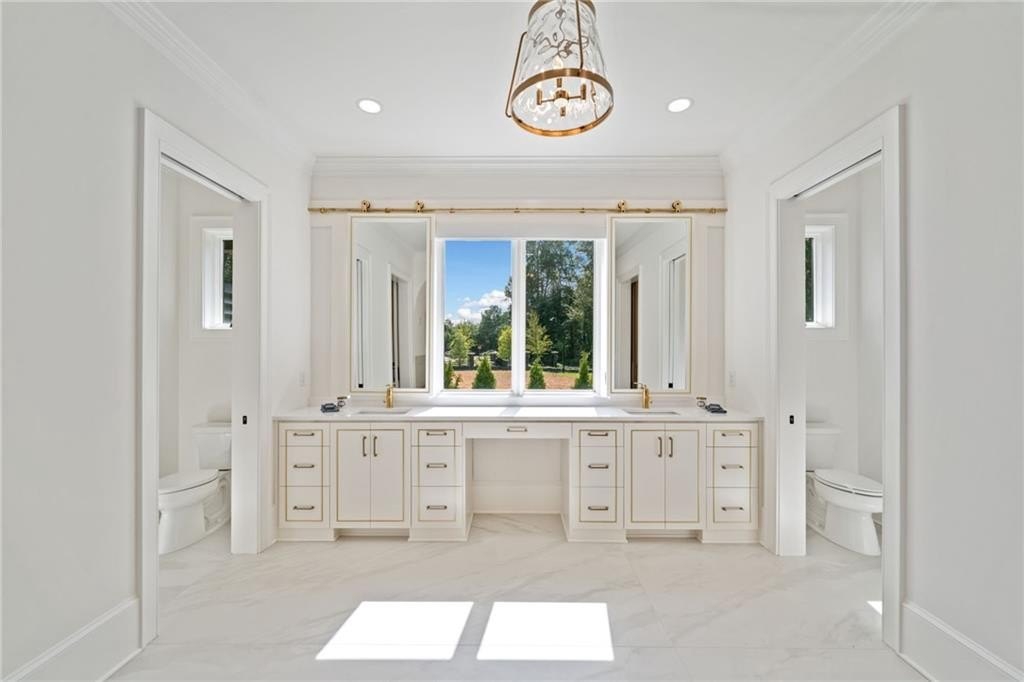 Renowned Chatham quality in the heart of Alpharetta’s most sought-after gated enclave. Complete and move-in ready! Southern Living Magazine's Custom Builder of the year, Chathambilt Homes is proud to announce its newest gated luxury community, Baxley. Located a mile from Alpharetta’s City Center, Baxley is an exclusive enclave of 6 custom homes featuring unparalleled luxury appointments. As you approach the home on the hand cut limestone walkway, you are greeted by the warmth and ambiance of the Bevolo gas lanterns. The exterior of the home is wrapped in Artisan siding by James Hardie Vertical Siding featuring Pella Windows and Doors with stained tongue and groove porch ceilings. Once you enter through the mahogany doors, you the step onto the herringbone white oak flooring in the foyer as you enjoy the views of the open floor plan leading your eyes to the floor to ceiling glass wall. The home also includes custom inset cabinets and built-ins capped with quartz countertops and backsplash throughout, Sub Zero/Wolf appliances. The expansive family foyer that one enters off the garage has well thought out custom built cabinetry with ample storage to organize a busy lifestyle with flare and design. Main living room opens seamlessly to the vaulted covered porch. Primary suite on main featuring louvered sleeping porch. Kohler plumbing fixtures, pad for a swimming pool, Schluter master bath heated floor underlayment and heated shower seat, curbless double French-door shower, double water closet and vanities in the master bath, marble tile throughout, elevator ready closet, tulip poplar ceiling accents, soft-close interior slider doors, premium closet systems, dog wash, pet food and water station, built-in reading nook, and a 3 car garage with Clopay cedar overlayed cedar garage doors and composite garage floor finish are some of the amazing custom details featured in this home. The second floor features three ensuite bedrooms and a loft area and large bonus room. The home was constructed with energy efficient systems including Rinnai tankless water heaters, radiant barrier roof sheathing, cellulose insulation, Zip wallboard system, and 90%+ efficiency furnaces This home has the pool permit available.