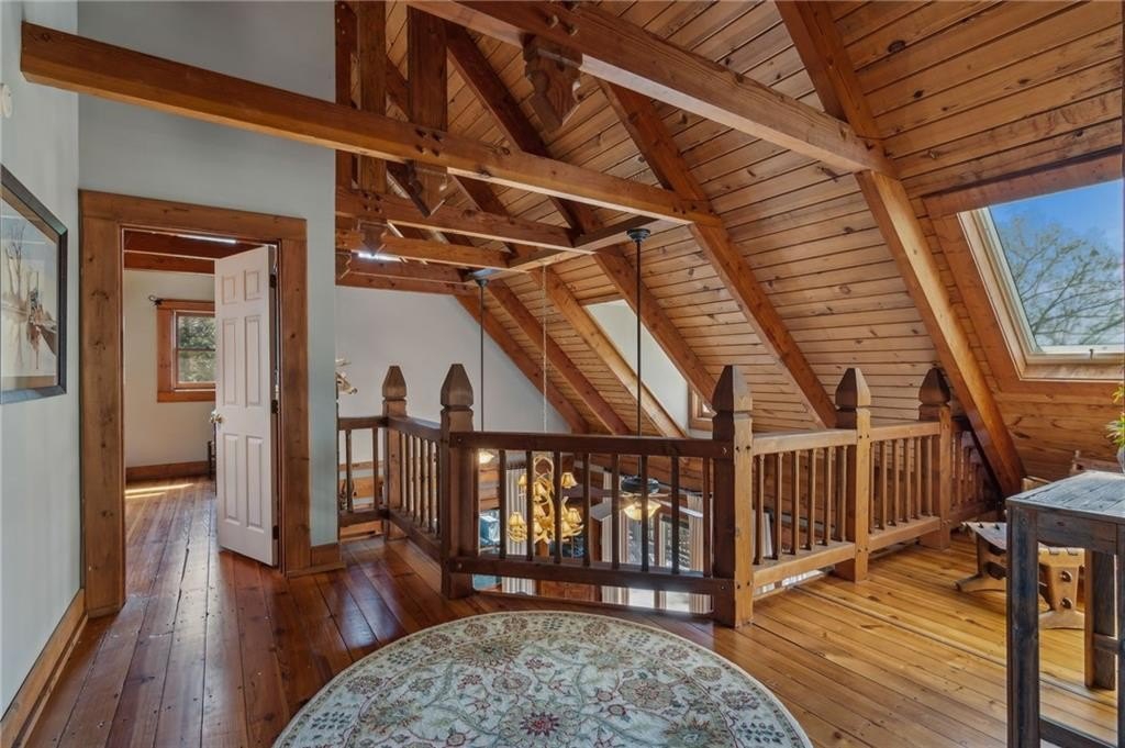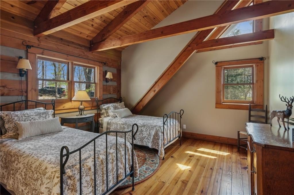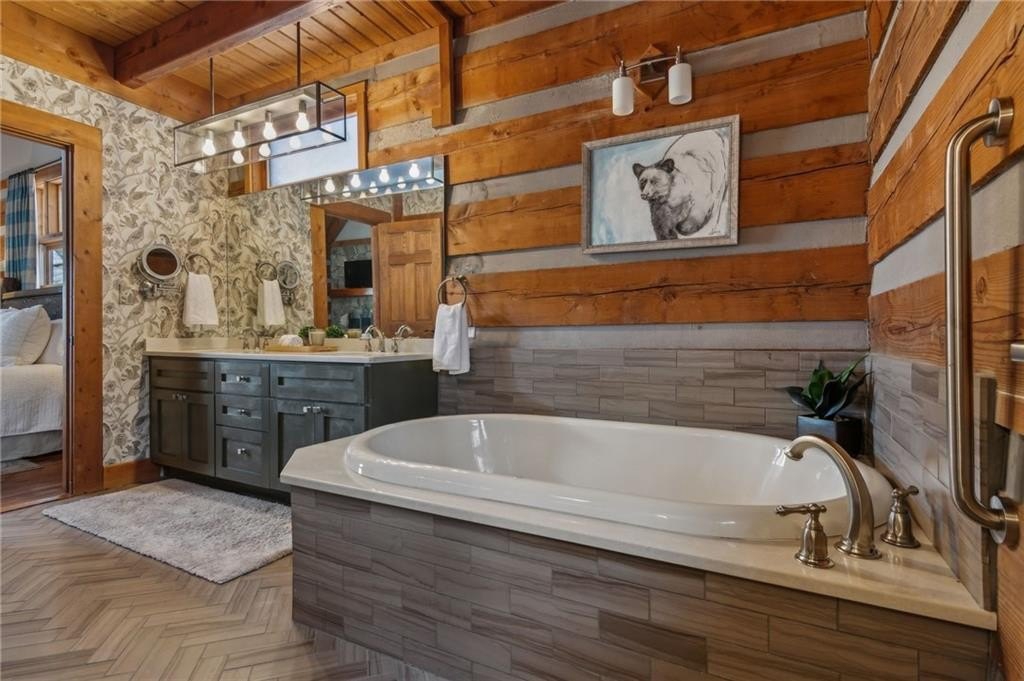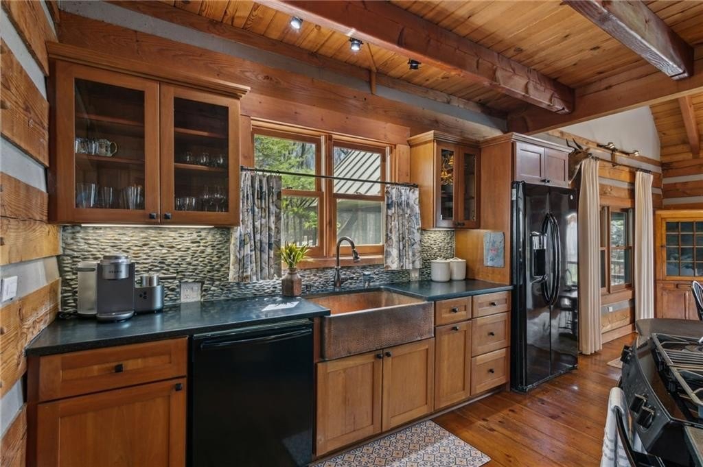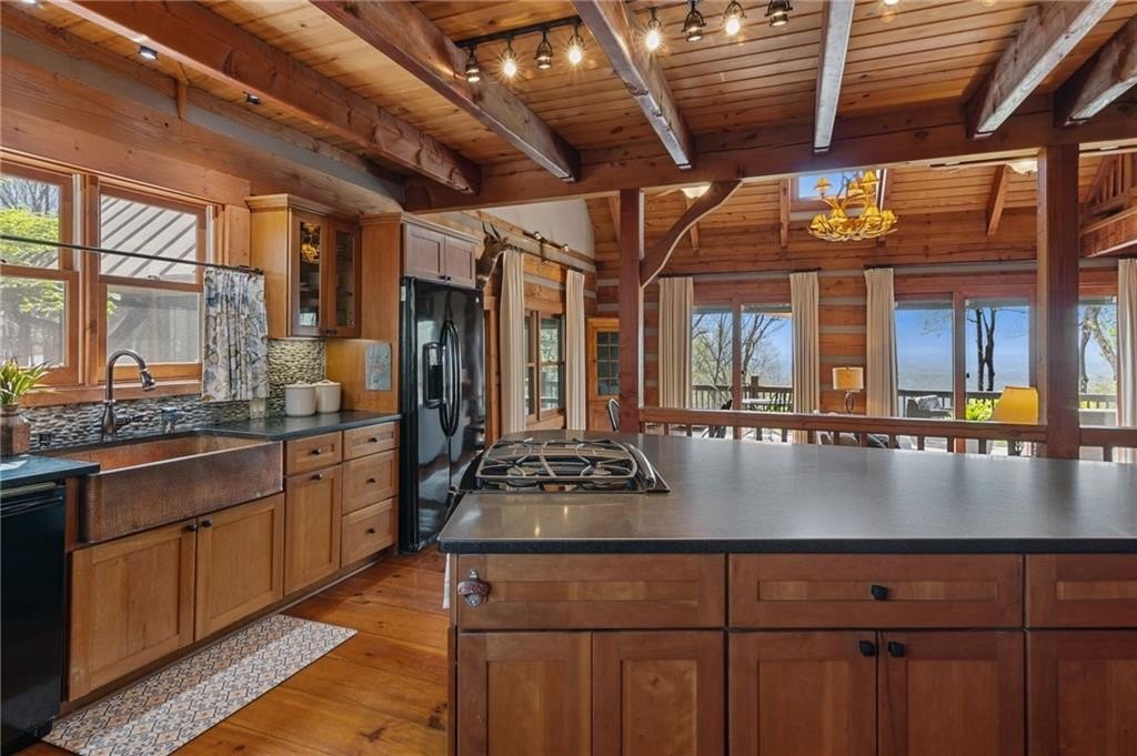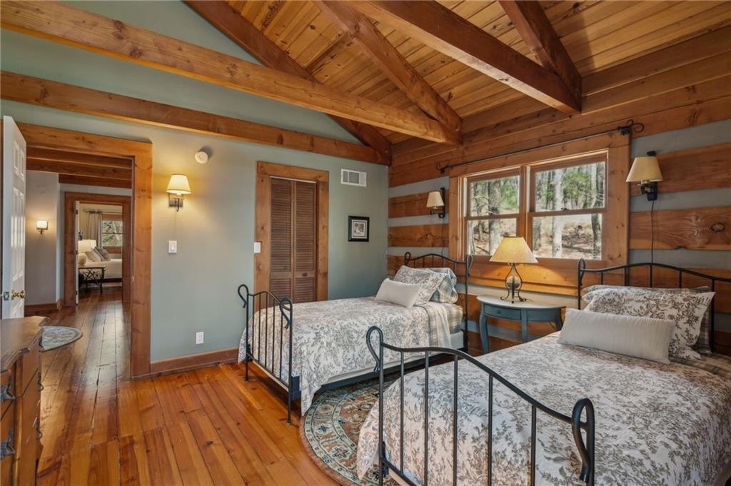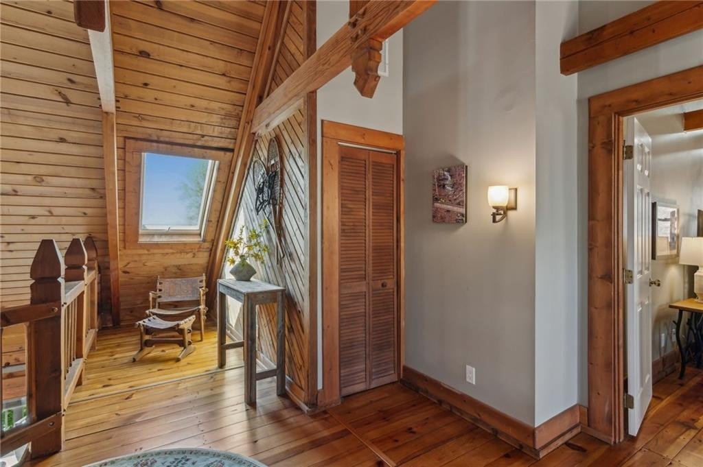 This beautifully updated 4-bedroom, 3.5-bath log home offers the perfect blend of rustic charm and modern comfort. The great room features a cathedral ceiling with solid wood beams and wide plank hardwood floors set the tone for the open main level, where the floor-to-ceiling stone fireplace creates a perfect mountain home, while multiple living areas provide plenty of room for family and guests.