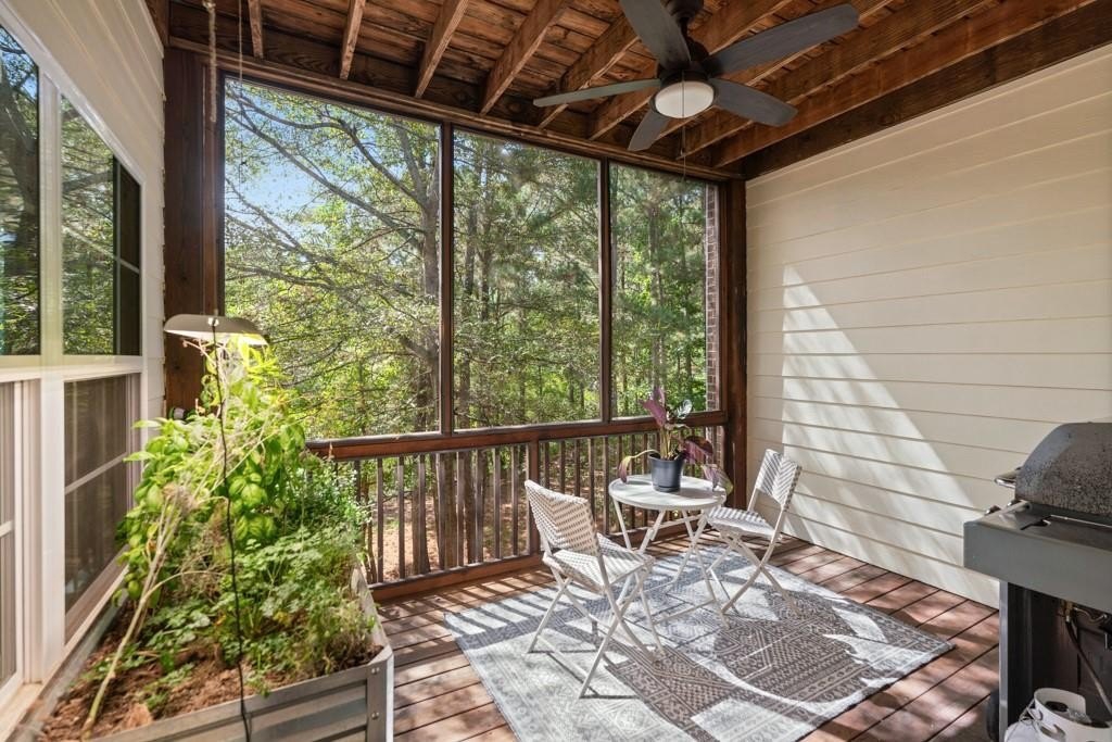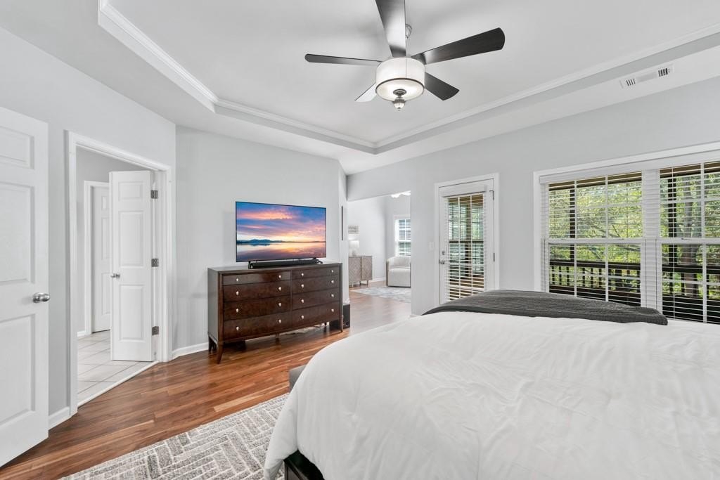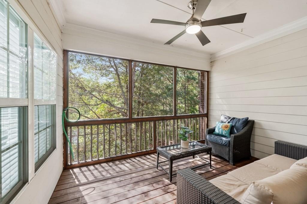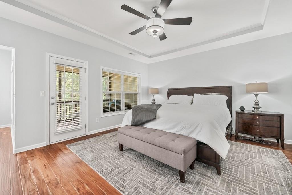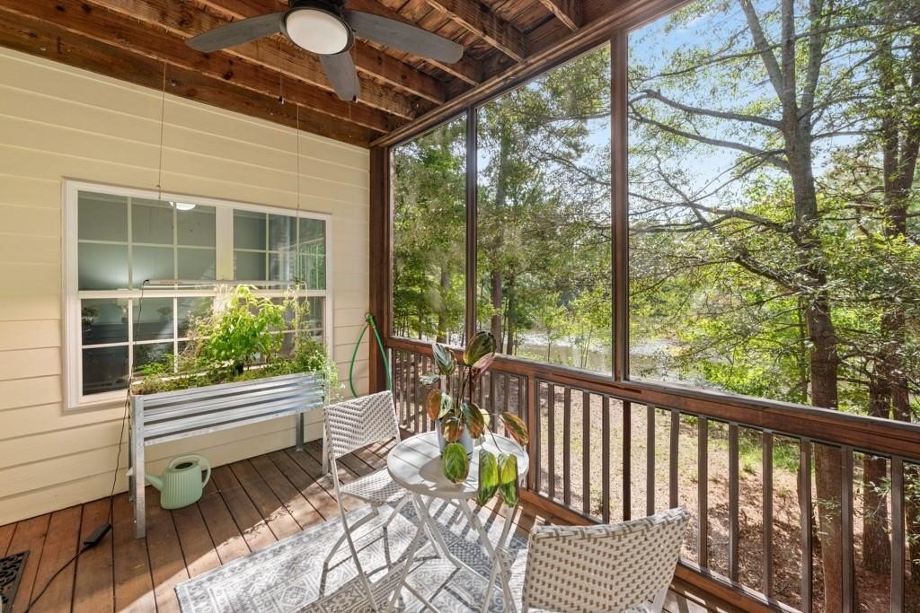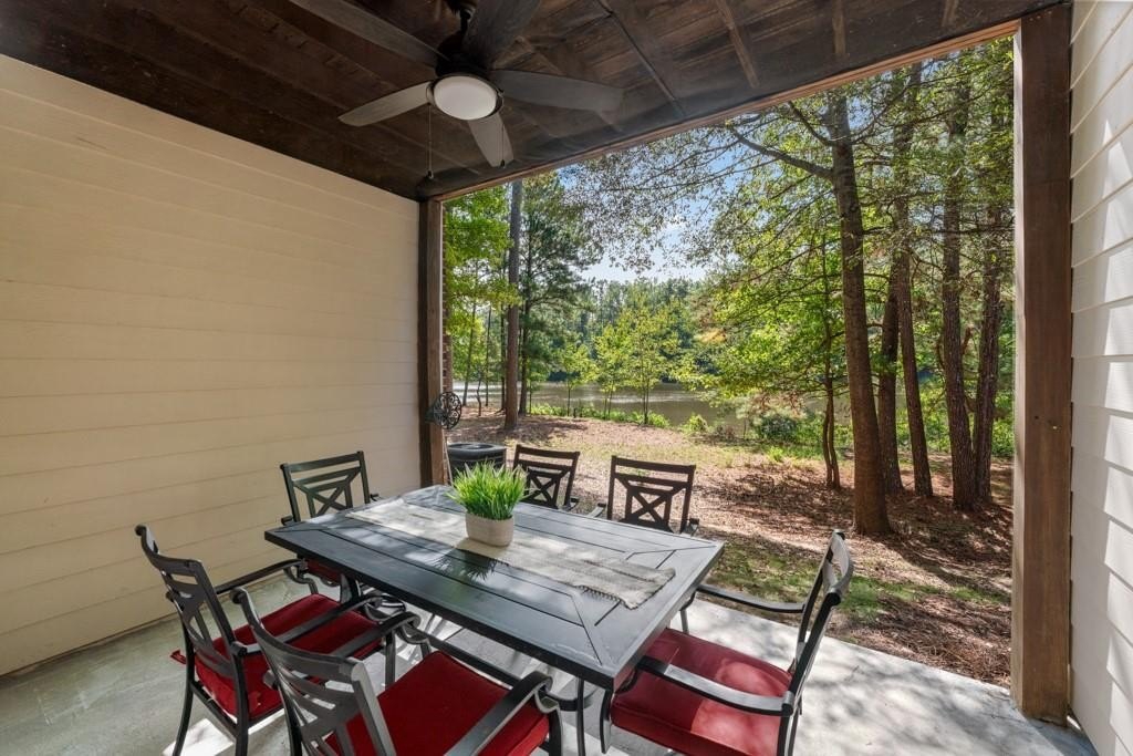 Enjoy maintenance free living in a desirable area in Milton. This gorgeous townhome boasts breathtaking private views of Lake Deerfield. This home features elegant hardwoods throughout, designer paint and upgraded luxury lighting. The gourmet kitchen features custom cabinetry, striking backsplash, luxury stainless steel appliances (including a Kitchenaid Profile Refrigerator that brews your Keurig coffee), and a custom pantry. This home also features a whole house water filtration system. A light-filled sunroom and serene screened deck capture the lakefront setting, while the dining room is enhanced with an elegant dry bar and wainscoting. Each spacious bedroom offers its own spa-like bath and walk-in closet. Relax in the oversized primary suite featuring a tray ceiling and a sitting room wrapped in windows, luxury custom closet, and a private screened deck overlooking the water, plus a spa-inspired bath with dual vanities, soaking tub, and separate shower. The laundry room has been upgraded with custom cabinetry and tile flooring. The terrace level offers a spacious living area plus an ensuite bedroom. This level features a private patio with access to the lake where you can enjoy fishing or kayaking. Live here and you'll be minutes from Avalon, Downtown Alpharetta, GA-400, shopping, dining, and parks including the Big Creek Greenway. HOA maintains all exterior (including the roof), lawn care, water, trash, and pest control. This home combines luxury finishes, ample storage, worry free living and serene lake views in a prime location.