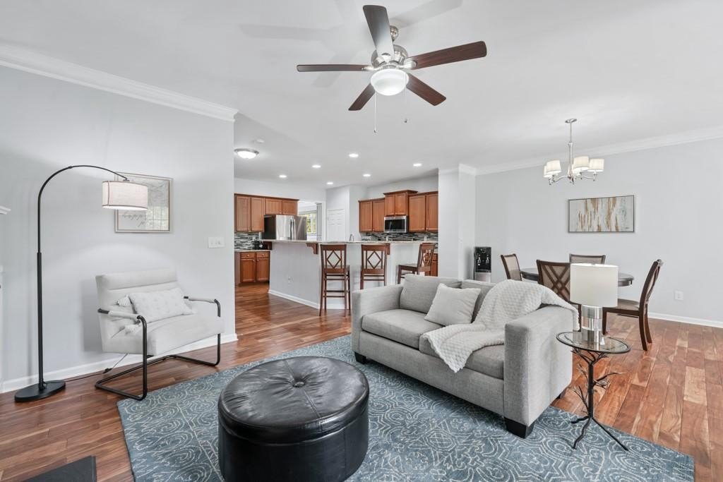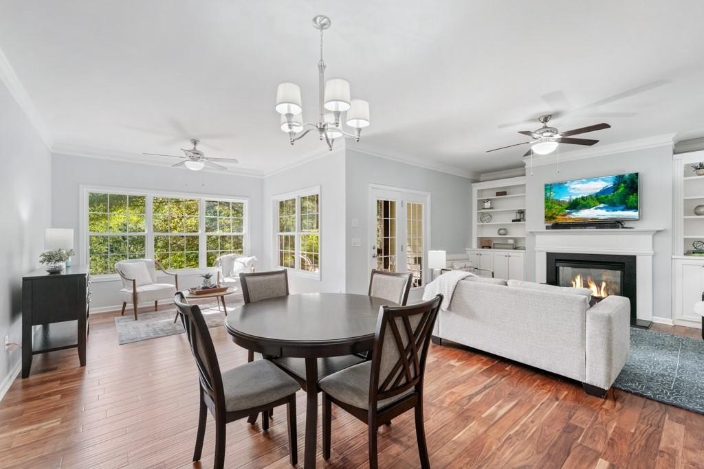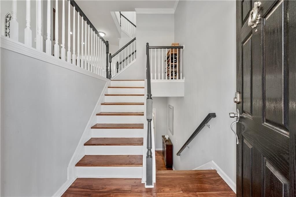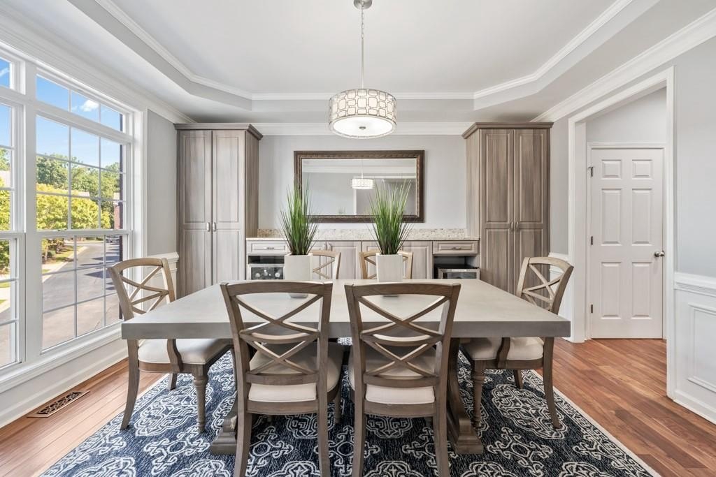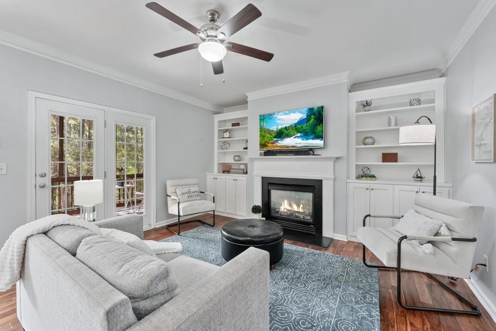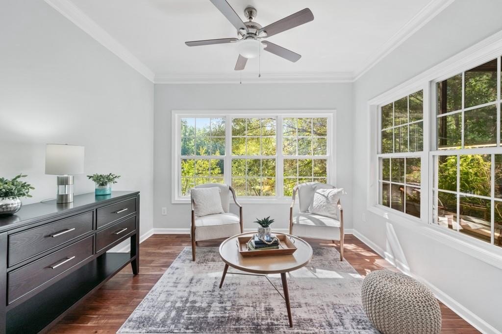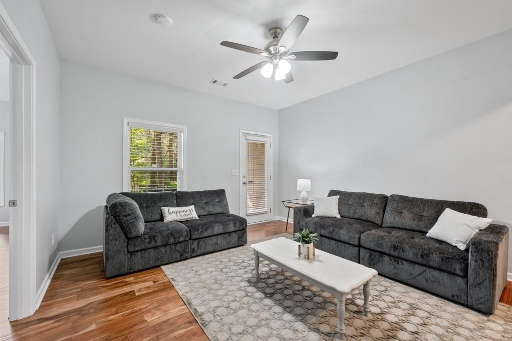 Enjoy maintenance free living in a desirable area in Milton. This gorgeous townhome boasts breathtaking private views of Lake Deerfield. This home features elegant hardwoods throughout, designer paint and upgraded luxury lighting. The gourmet kitchen features custom cabinetry, striking backsplash, luxury stainless steel appliances (including a Kitchenaid Profile Refrigerator that brews your Keurig coffee), and a custom pantry. This home also features a whole house water filtration system. A light-filled sunroom and serene screened deck capture the lakefront setting, while the dining room is enhanced with an elegant dry bar and wainscoting. Each spacious bedroom offers its own spa-like bath and walk-in closet. Relax in the oversized primary suite featuring a tray ceiling and a sitting room wrapped in windows, luxury custom closet, and a private screened deck overlooking the water, plus a spa-inspired bath with dual vanities, soaking tub, and separate shower. The laundry room has been upgraded with custom cabinetry and tile flooring. The terrace level offers a spacious living area plus an ensuite bedroom. This level features a private patio with access to the lake where you can enjoy fishing or kayaking. Live here and you'll be minutes from Avalon, Downtown Alpharetta, GA-400, shopping, dining, and parks including the Big Creek Greenway. HOA maintains all exterior (including the roof), lawn care, water, trash, and pest control. This home combines luxury finishes, ample storage, worry free living and serene lake views in a prime location.
