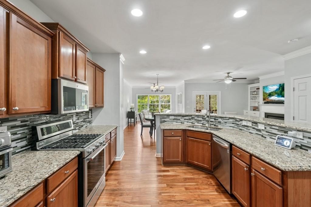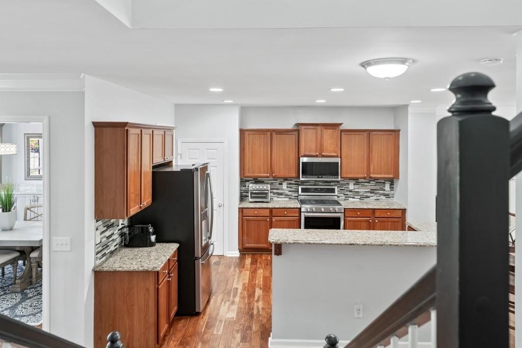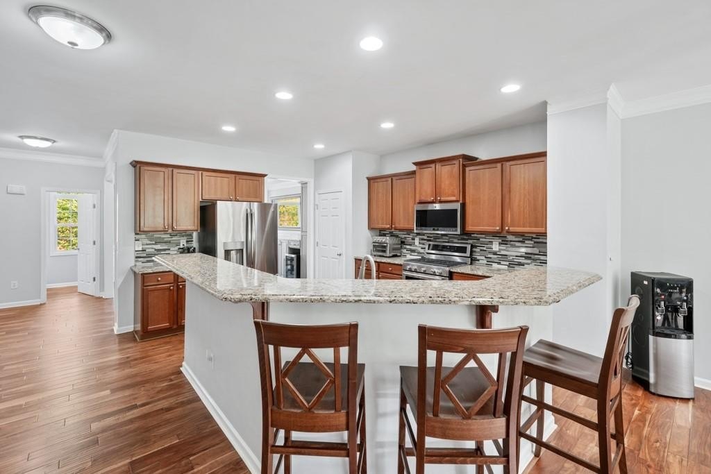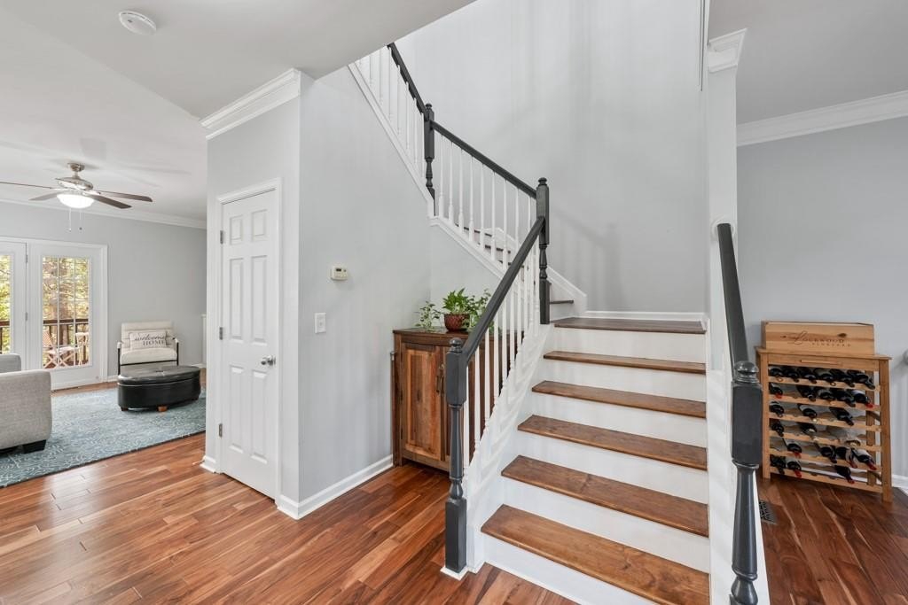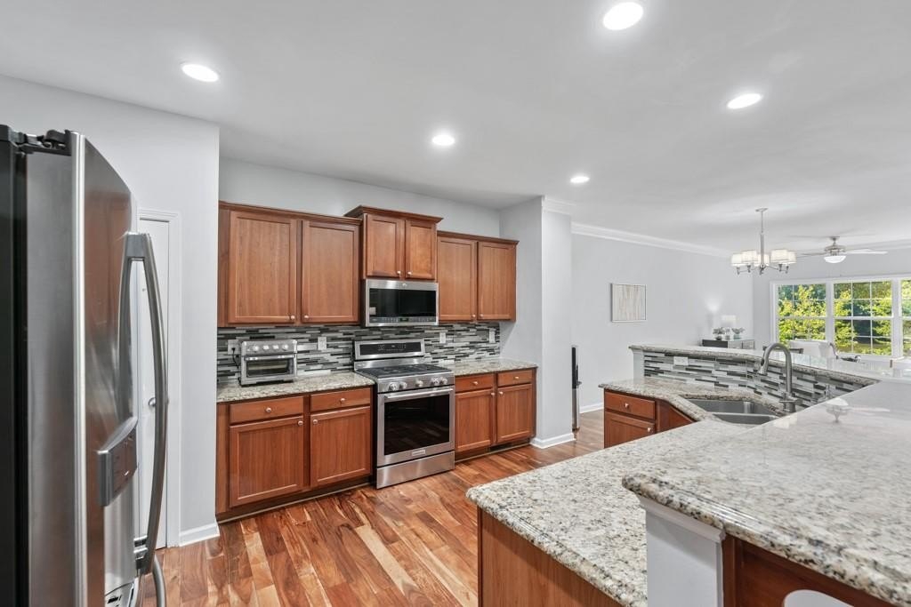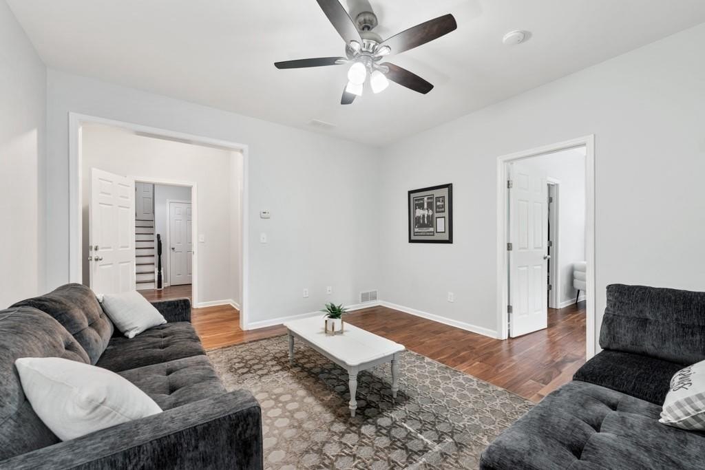 Enjoy maintenance free living in a desirable area in Milton. This gorgeous townhome boasts breathtaking private views of Lake Deerfield. This home features elegant hardwoods throughout, designer paint and upgraded luxury lighting. The gourmet kitchen features custom cabinetry, striking backsplash, luxury stainless steel appliances (including a Kitchenaid Profile Refrigerator that brews your Keurig coffee), and a custom pantry. This home also features a whole house water filtration system. A light-filled sunroom and serene screened deck capture the lakefront setting, while the dining room is enhanced with an elegant dry bar and wainscoting. Each spacious bedroom offers its own spa-like bath and walk-in closet. Relax in the oversized primary suite featuring a tray ceiling and a sitting room wrapped in windows, luxury custom closet, and a private screened deck overlooking the water, plus a spa-inspired bath with dual vanities, soaking tub, and separate shower. The laundry room has been upgraded with custom cabinetry and tile flooring. The terrace level offers a spacious living area plus an ensuite bedroom. This level features a private patio with access to the lake where you can enjoy fishing or kayaking. Live here and you'll be minutes from Avalon, Downtown Alpharetta, GA-400, shopping, dining, and parks including the Big Creek Greenway. HOA maintains all exterior (including the roof), lawn care, water, trash, and pest control. This home combines luxury finishes, ample storage, worry free living and serene lake views in a prime location.