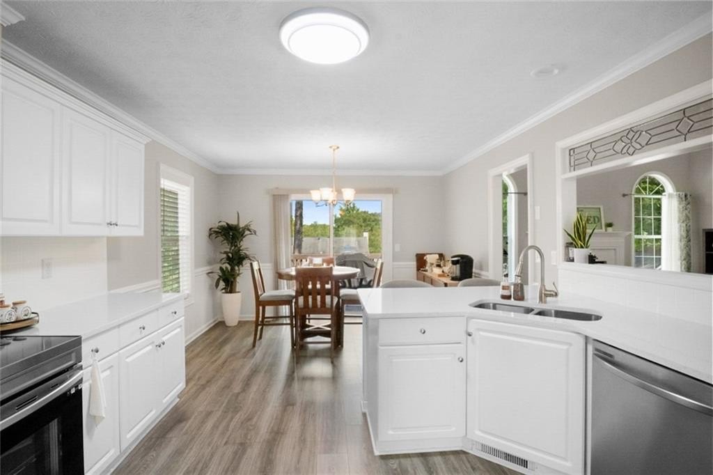 Gorgeous COMPLETELY RENOVATED home with EN-SUITE PRIMARY BEDROOM ON THE MAIN! This home features a NEWER HVAC, NEWER INTERIOR PAINT, a stunning kitchen complete with NEWER QUARTZ COUNTERTOPS, NEWER UPGRADED LIGHT FIXTURES, and NEWER STAINLESS APPLIANCES. Walk out to the deck and enjoy your morning coffee. NEWER LVP FLOORING, GAS FIREPLACE, and CATHEDRAL CEILING make the main floor pop! The bathrooms all boast QUARTZ COUNTERTOPS and NEWER TOILETS. Entertain in the very SPACIOUS FLAT FENCED BACKYARD, plenty of room for the dog to run and play! The backyard also features a HUGE STORAGE SHED 24’x12’ that could be a she/he shed. Located on a quiet street, this home has it all! Conveniently located to shopping, schools, and entertainment.
