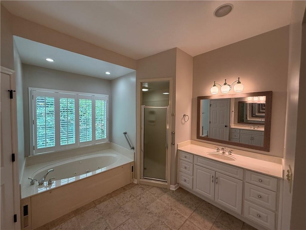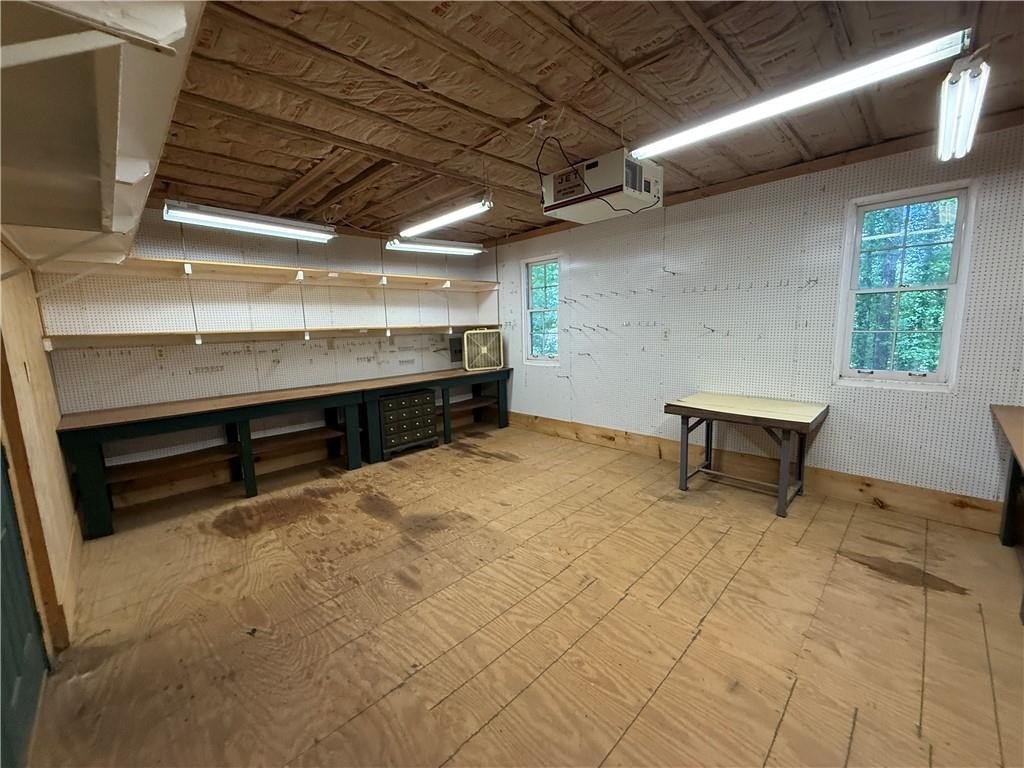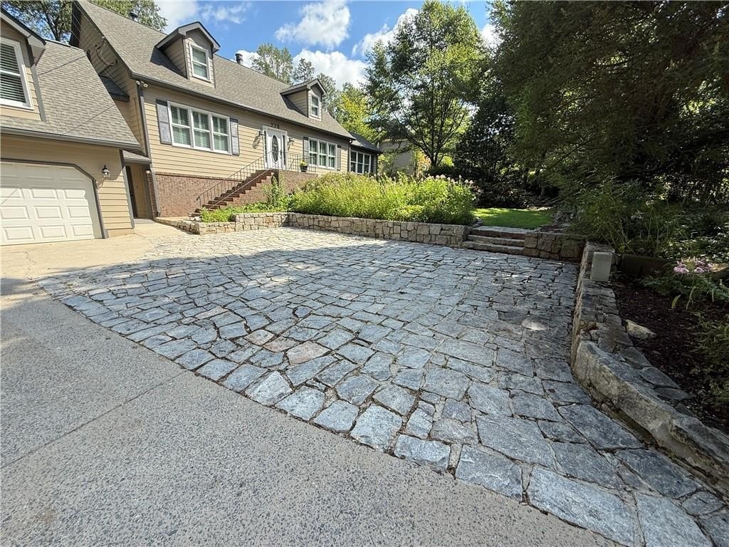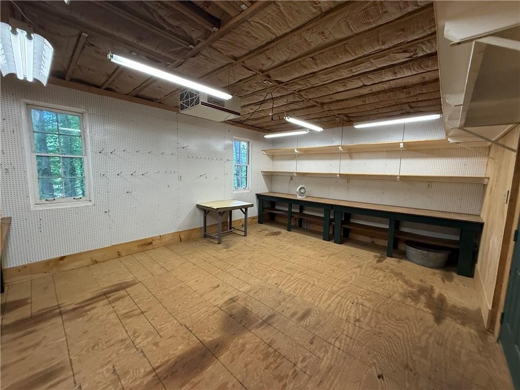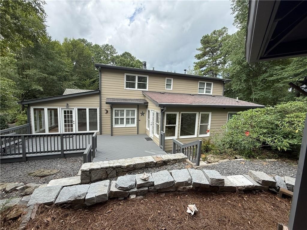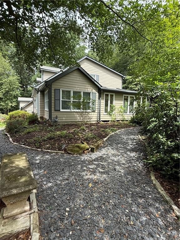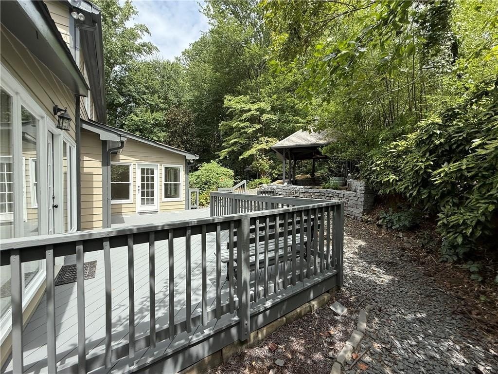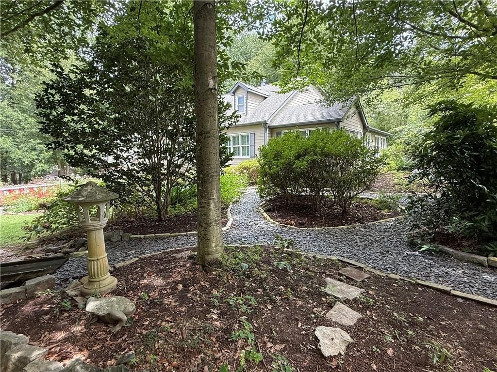 Welcome to this beautifully maintained home in Roswell, situated on a large private lot and featuring numerous updates. Upon entering, you are greeted by a stunning two-story foyer with a wrought iron railing staircase. Elevator access from the basement to the main level. Expansive living areas on the main level include a large great rm and fireplace, a vaulted sun room with a sliplap ceiling, and a huge bonus rm/ office area over the garage. Updated kitchen with stained cabinets, stainless steel appliances and solid surface counters, flows to a bright breakfast room with shiplap ceiling. Main-level master suite with dual walk-in closets, separate vanties, whirlpool tub and a separate shower. upstairs you will find two spacious bedrooms with hardwood floors, a full bath, walk-in closets, and tons of walk-in attic area for extra storage. A true gardener's dream with a beautiful yard unfolds as a lush, vibrant sanctuary, blending raised gardens, colorful plants, and stately trees. Picture relaxing on the deck, gazebo w/ fireplace or patio areas surrounded by nearly a 3/4 acre, bathed in soft sunlight filtering through a canopy of mature trees. The three story barn offers room for a work shop, art studio or separate office: the ultimate she/ he shed!