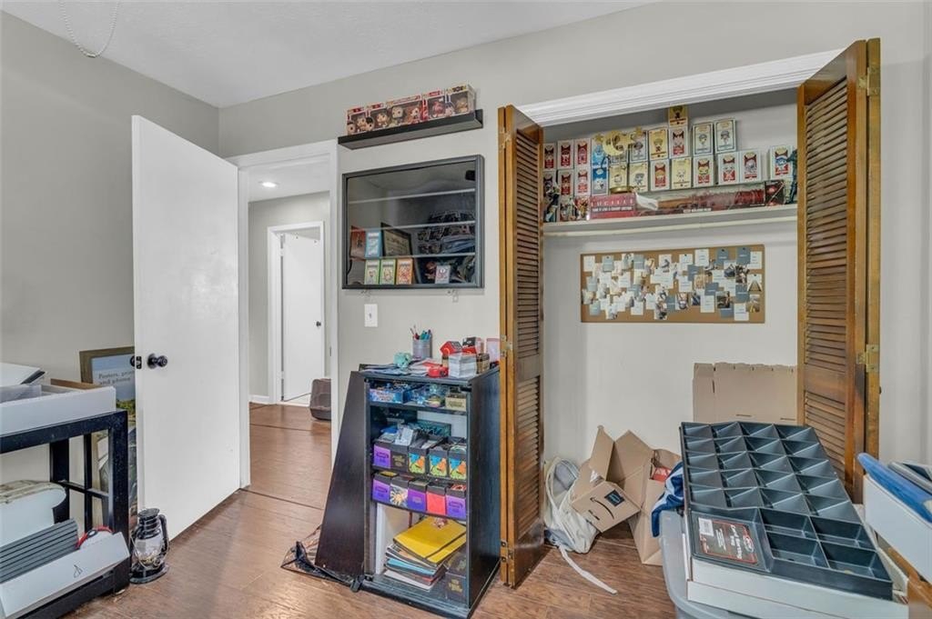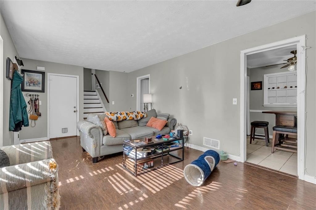 Amazing opportunity in unbeatable location! This fixer upper is priced to sell! Located on a quiet street surrounded by mature trees, this home is ready for someone to add their personal touches. The addition on the back of the house has great potential and could be turned into an in-law suite, 5th bedroom, or an Air BnB. No neighborhood HOA. The plumbing for the 3rd full bath is installed. Please note, the back addition suffered water damage in recent years and will need mold remediation. The backyard is a nature lovers paradise, full of mature trees, fenced and private. Minutes to the interstates, Truist Park, shopping and dining. Schools within walking distance. Two car garage with extra storage. All systems/appliances in working order. Don't miss this opportunity to make this house your home.