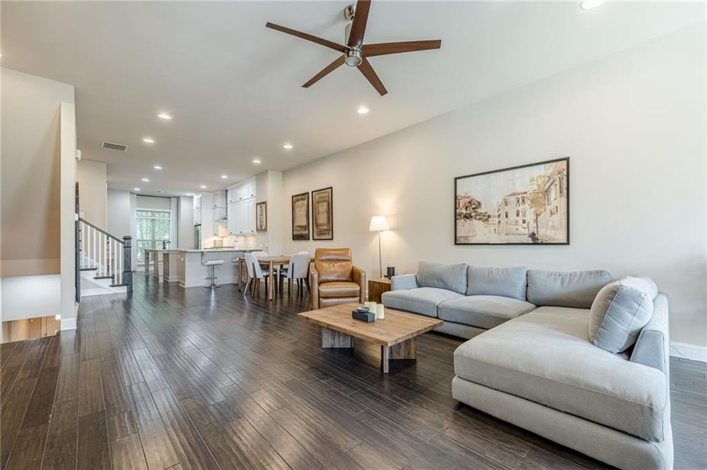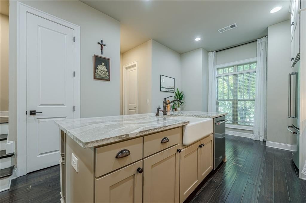 Welcome home to Townes at Chastain, a gated ITP community built by The Providence Group, one of Atlanta’s premier homebuilders. Located in the sought-after Riverwood International Charter school district, this three-story townhome is the Tyndale floorplan and offers 3 bedrooms, 3.5 bathrooms, and a desirable open floorplan on the main level. The entry level welcomes you with a spacious foyer and private guest suite with full bath -- which also makes a great home office, separate from the rest of the home and convenient for deliveries. On the main level, enjoy an open-concept design with abundant natural light. The chef’s kitchen features an oversized island as well as a breakfast bar, granite countertops, stainless steel appliances, and plentiful cabinetry. It flows seamlessly into the dining area and fireside great room, which extends to a private deck—an ideal spot for entertaining or relaxing outdoors. Upstairs, the luxurious owner’s suite includes a sitting area, walk-in closet, spa-like bath with dual vanities, and oversized shower, plus its own private balcony retreat. A secondary bedroom with ensuite bath and a convenient laundry room complete the top floor. Residents of this gated-access community enjoy amenities including a swimming pool and outdoor grilling area. With Chastain Park, dining, and shopping just minutes away, this fantastic Sandy Springs home offers both convenience and sophistication.