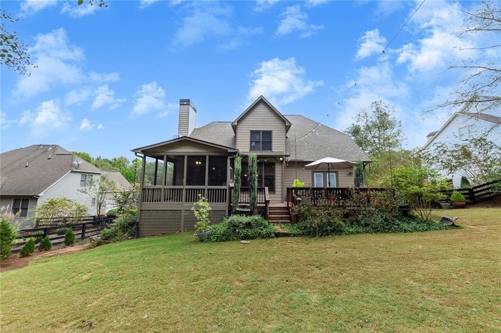 Welcome to this beautiful primary-on-main home, perfectly situated on a large lot on a cul-de-sac street in the sought-after community of The Preserve at Etowah. This neighborhood is known for its spacious lots and wonderful amenities, including a pool, tennis courts, playground, and a picturesque lake. The home features a welcoming front porch and a two-story entry foyer leading to a spacious dining room perfect for gatherings. The vaulted family room with fireplace opens to the kitchen, which boasts wood cabinets, stainless steel appliances, and a bright breakfast area for casual meals. Step out to the screened porch, a favorite spot to relax while overlooking the beautifully landscaped, fenced backyard—plenty of space for playing and gardening. A deck off the porch offers the perfect setting for grilling and alfresco dining. The main-level primary suite is a true retreat with a tray ceiling, private deck access, and a spa-like bath featuring a soaking tub, glass shower, double vanity, and walk-in closet. A convenient laundry room and guest half bath complete the main level. Upstairs, a versatile loft provides space for reading, studying, or relaxing, while three spacious bedrooms share a well-appointed hall bath. The partially finished terrace level offers endless possibilities with heating, air, and a bathroom stub already in place. Recent updates provide peace of mind, including new carpet, refinished and added hardwoods, fresh interior paint, a new hot water heater, a replaced water supply line, and a septic system pumped in 2023. Move-in ready and lovingly maintained, this home is ready for its next owners to enjoy and make memories in.