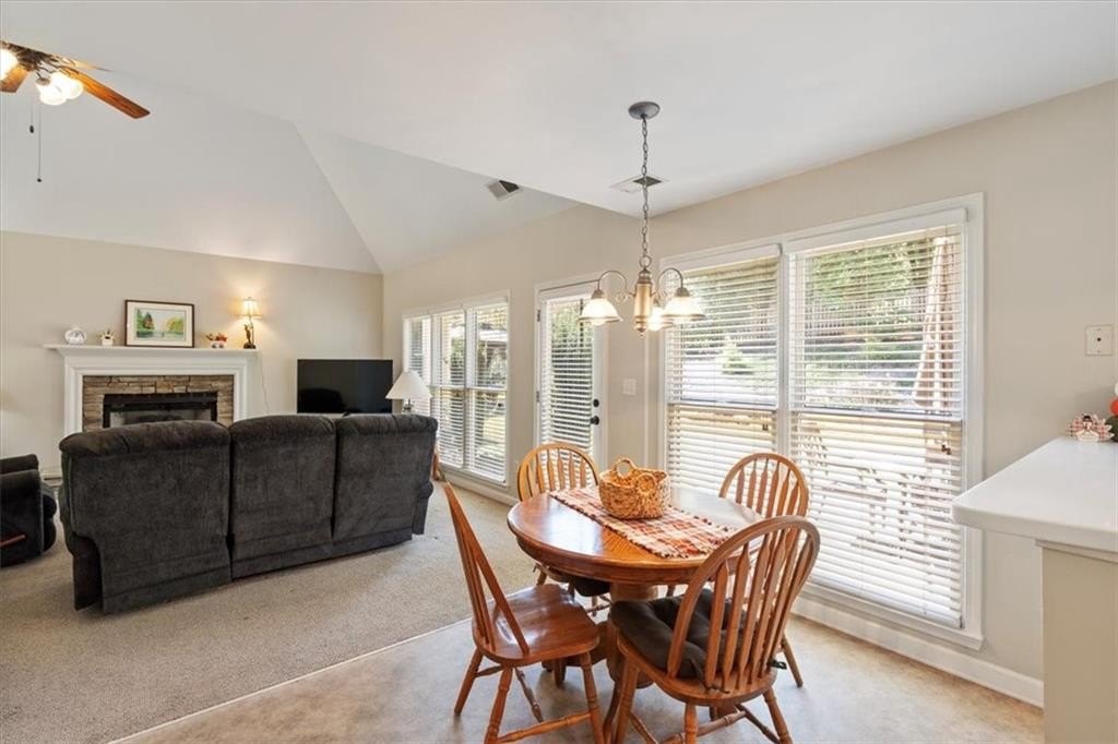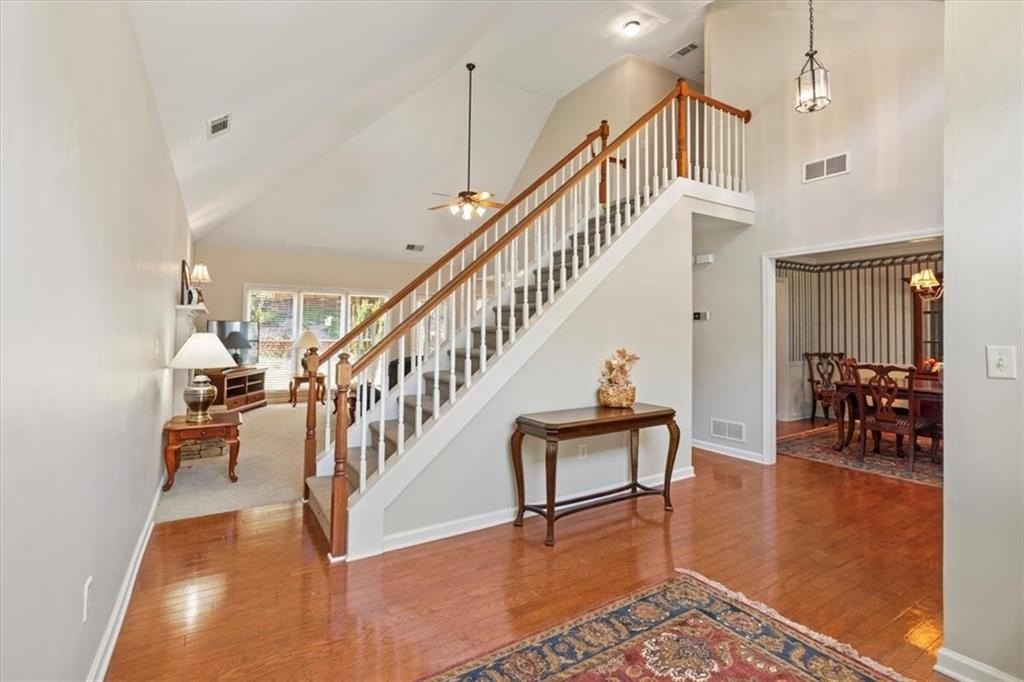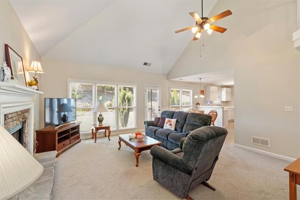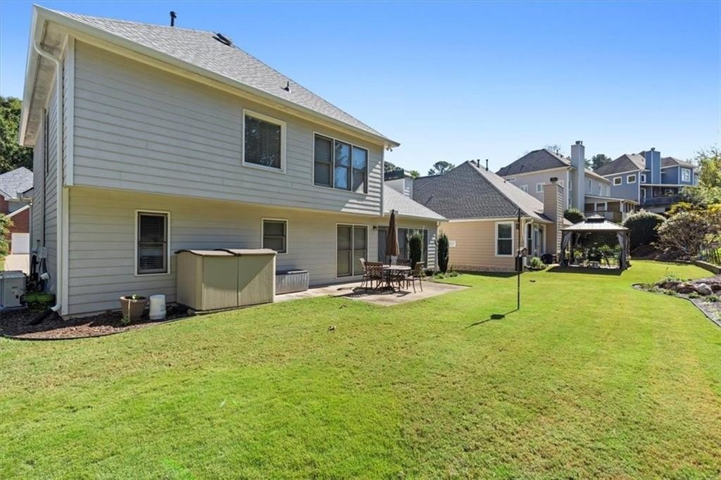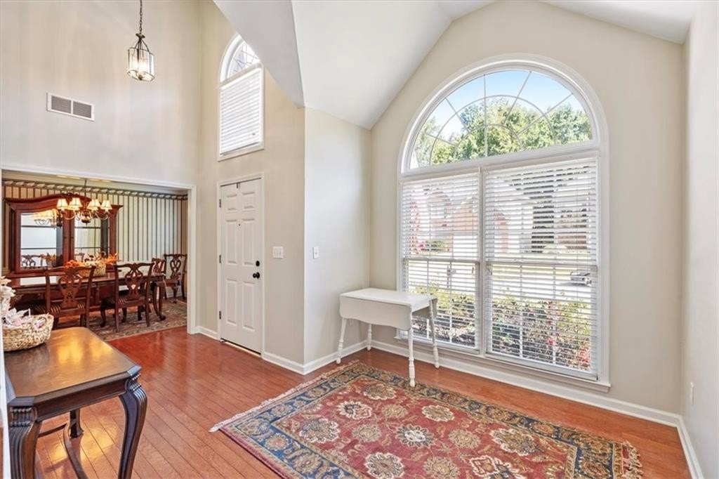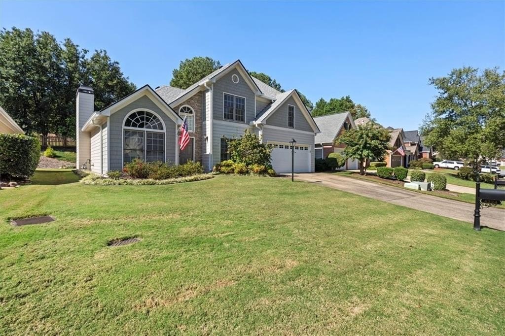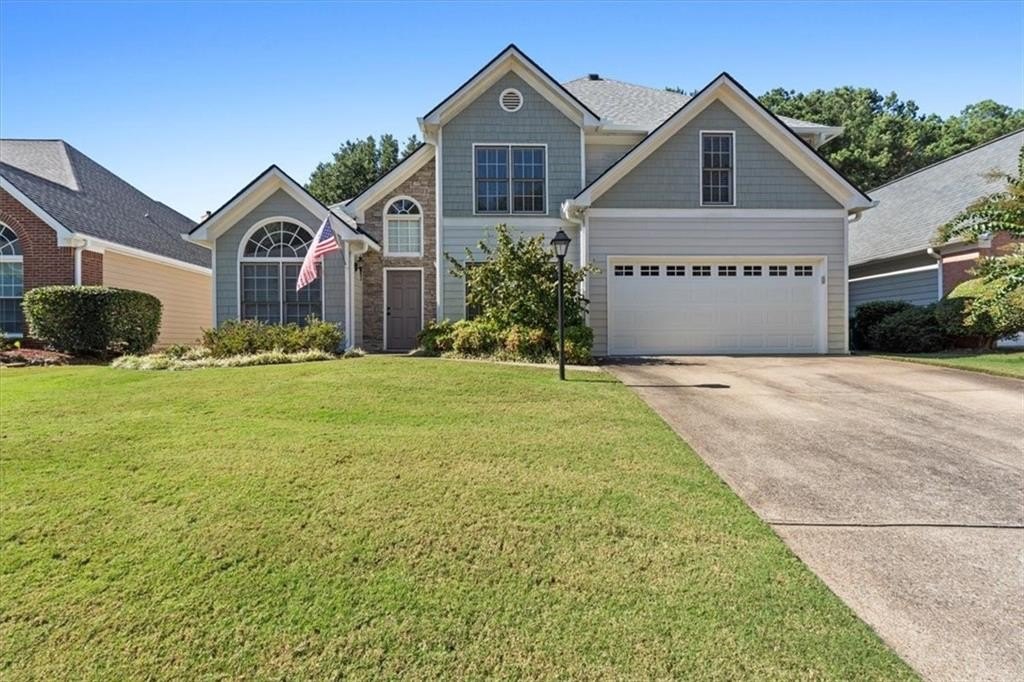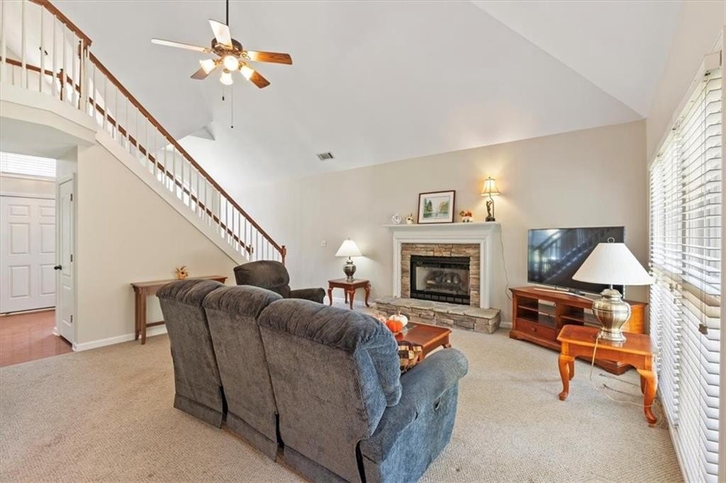 Welcome to this inviting 4-bedroom, 2.5-bath home offering a bright and functional floor plan. The main level features a soaring two-story foyer with abundant natural light, hardwood floors, and a formal dining room perfect for gatherings. The spacious family room boasts vaulted ceilings, a cozy stone fireplace, and large windows overlooking the backyard. The kitchen includes ample cabinetry, a gas cooktop, and an adjoining breakfast area that opens to the family room—ideal for both entertaining and everyday living. A convenient laundry room sits just off the kitchen. The primary suite offers a tray ceiling, walk-in closet, and ensuite bath with double vanities and a soaking tub. Upstairs, three additional bedrooms provide flexibility for family, guests, or office space. Enjoy outdoor living with a private backyard and a level front lawn. The home also includes a two-car garage and curb appeal with a combination of stone, shake, and siding accents. Located in a desirable neighborhood with easy access to shopping, dining, and major highways, this home blends comfort and convenience. The home has a brand new roof and the hvac is one year old.
