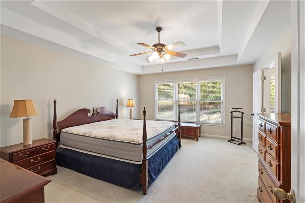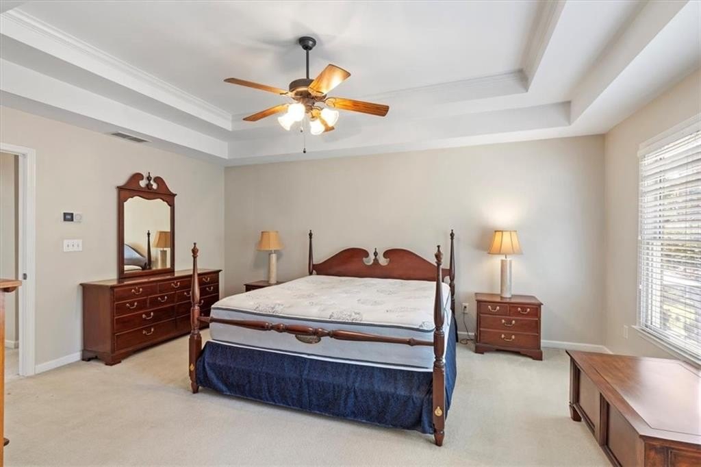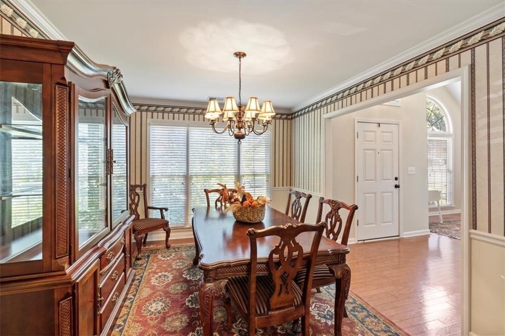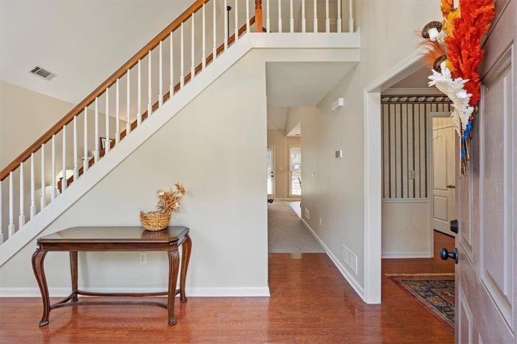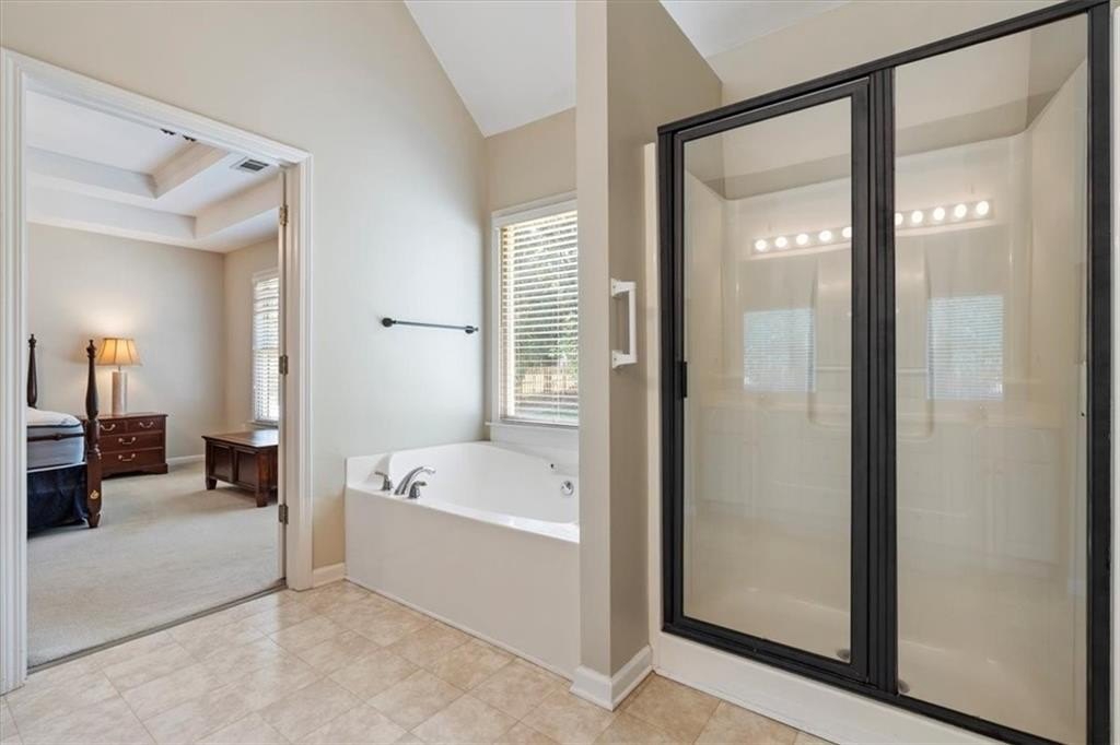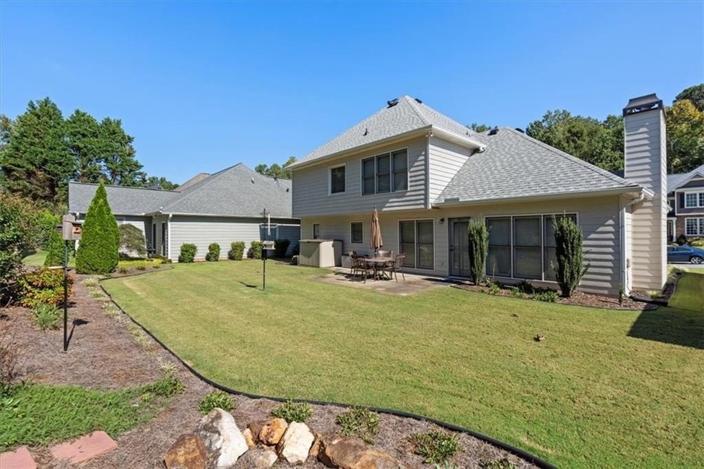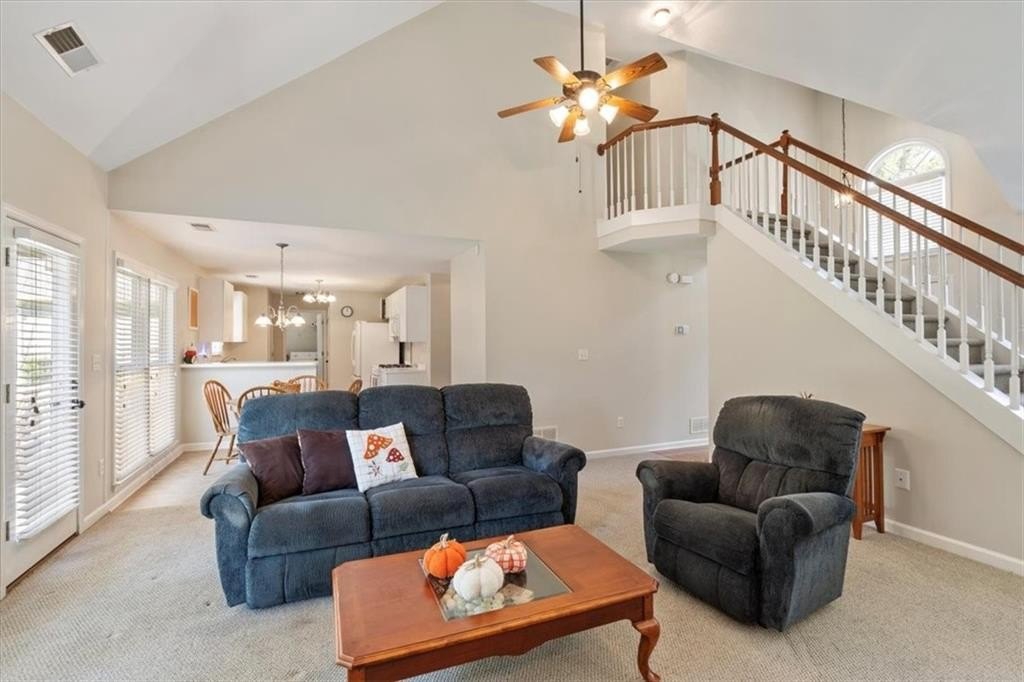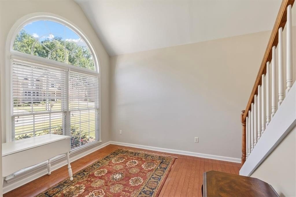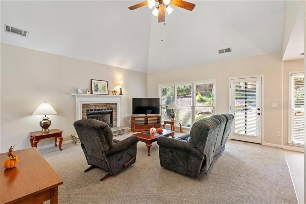 Welcome to this inviting 4-bedroom, 2.5-bath home offering a bright and functional floor plan. The main level features a soaring two-story foyer with abundant natural light, hardwood floors, and a formal dining room perfect for gatherings. The spacious family room boasts vaulted ceilings, a cozy stone fireplace, and large windows overlooking the backyard. The kitchen includes ample cabinetry, a gas cooktop, and an adjoining breakfast area that opens to the family room—ideal for both entertaining and everyday living. A convenient laundry room sits just off the kitchen. The primary suite offers a tray ceiling, walk-in closet, and ensuite bath with double vanities and a soaking tub. Upstairs, three additional bedrooms provide flexibility for family, guests, or office space. Enjoy outdoor living with a private backyard and a level front lawn. The home also includes a two-car garage and curb appeal with a combination of stone, shake, and siding accents. Located in a desirable neighborhood with easy access to shopping, dining, and major highways, this home blends comfort and convenience. The home has a brand new roof and the hvac is one year old.