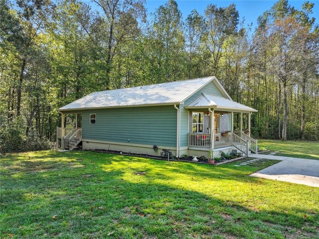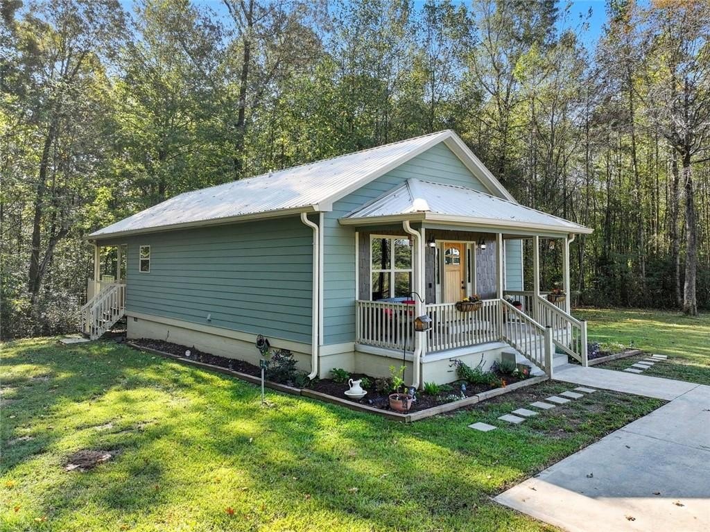 If you’ve been dreaming of a peaceful, private place to call home, this charming cottage on 1.5 acres of unrestricted land might be just what you’re looking for. It’s full of character, thoughtfully updated, and move-in ready. Perfect for a quiet lifestyle, weekend getaway, or even as a short- or long-term rental. The rocking chair front porch welcomes you into a warm and inviting space with an open floor plan, hardwood floors throughout, and tons of natural light. The kitchen has been completely updated from top to bottom, including brand-new premium LG appliances. The master on the main level adjoins a fully redone bathroom that features a dual vanity and updated finishes. You’ll love the covered front and back porches, perfect spots for morning coffee or evening grilling. The outbuilding on the property could be used for extra storage, or even your own personal workshop. This one has the charm, the land, and the updates. Don’t miss the chance to make it yours.