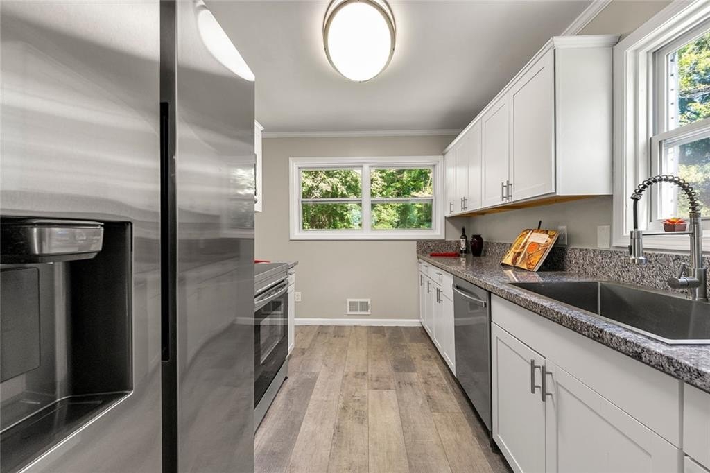 Nestled on a quiet cul-de-sac, this 4-Sided Brick 3-bedroom, 2-bathroom, Split-Level home boasts a fully renovated interior, including a modern kitchen with Stainless Steel Appliances and Granite Countertops and updated baths, brand new windows throughout, fresh paint inside and out, hardwood and luxury vinyl floors, a separate Dining Room, and a spacious two-car garage! Step onto the brand new deck and enjoy the freshly sodded level backyard, fully fenced for privacy. This gem is ready for you to call home, so hurry--this one won't be on the market for long!!