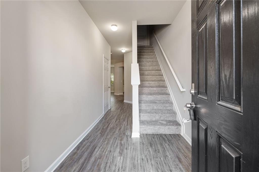 Welcome to this exceptional 6-year-old townhome, designed with contemporary living in mind. Featuring 3 spacious bedrooms and 2.5 baths, this home comes equipped with cutting-edge smart home technology, including Alexa integration and smart locks for enhanced convenience and security. As you step inside, you'll be greeted by the open and inviting main level, adorned with luxurious LVT flooring. The modern kitchen is a chef's delight, boasting granite countertops, sleek white cabinetry, and stainless steel appliances, including a high-end refrigerator. Ample storage is provided by a generous pantry, and the main level also includes a convenient half bath for guests. The outdoor patio offers a perfect spot for relaxation or entertaining, seamlessly blending indoor and outdoor living. Venture upstairs to discover the thoughtfully designed split-bedroom plan. The private owner's suite is a true retreat, featuring an enormous master closet and a spacious master bathroom with elegant fixtures. Two additional bedrooms provide plenty of space for family or guests, complemented by a full bathroom that ensures comfort for all. This home also includes a 1-car garage, offering both parking and additional storage options. High-end washer and dryer units are included, making laundry a breeze. Located in a vibrant community, this former model home combines style, functionality, and modern amenities, making it the perfect place to call home. Don't miss the opportunity to experience luxury living in this beautifully maintained townhome!