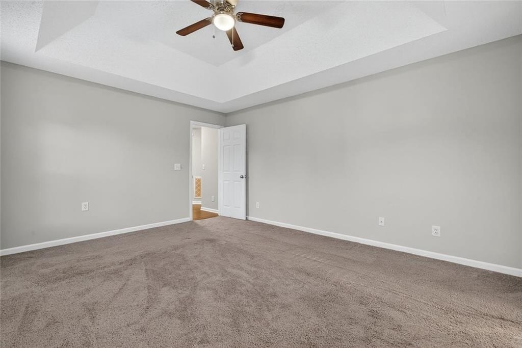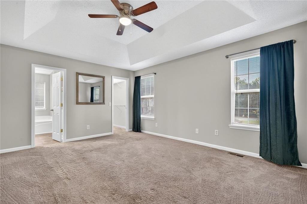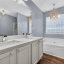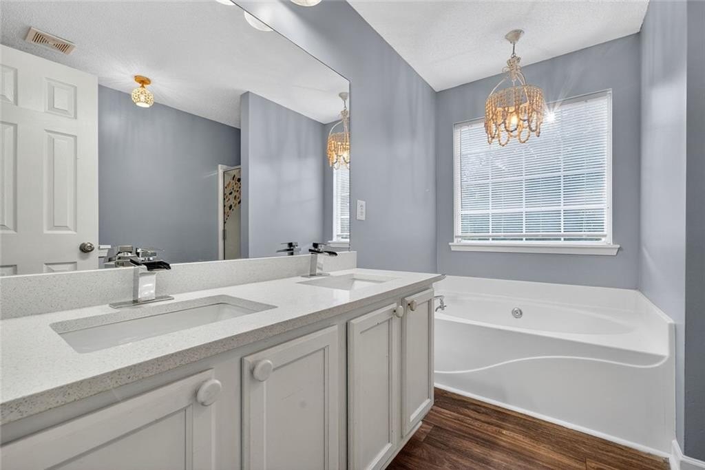 The fully updated kitchen features quartz countertops, a stylish tile backsplash, and stainless steel appliances, blending both form and function. Upstairs, the spacious primary suite offers a walk-in closet and a spa-like ensuite with double vanities, a soaking tub, and a freestanding shower. Two additional bedrooms and a renovated full bath complete the upper level.