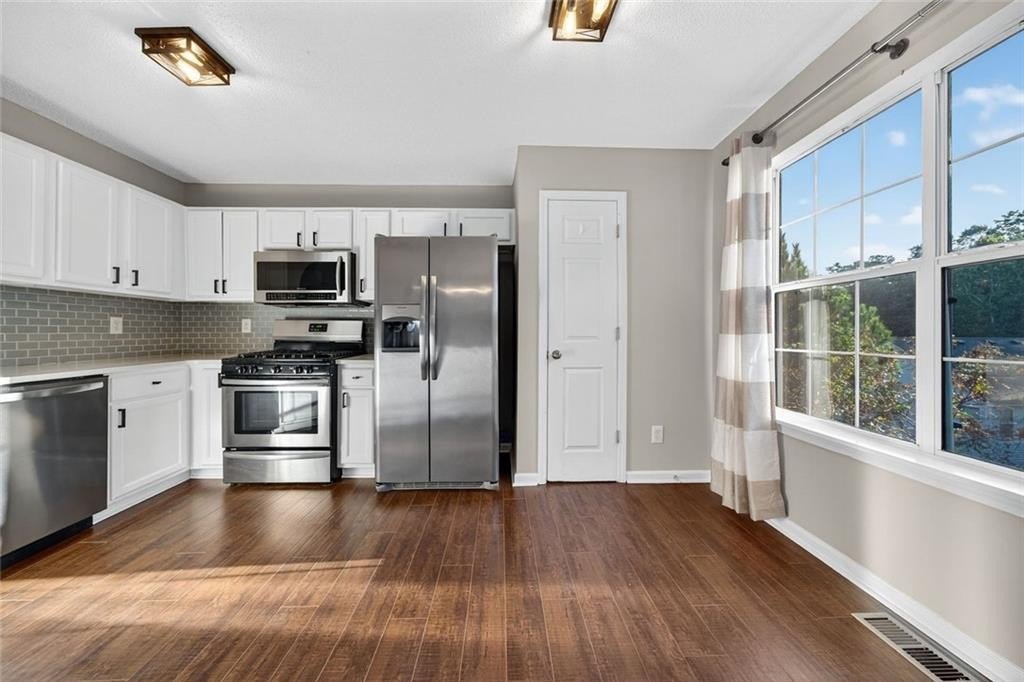 Tucked away on a quiet cul-de-sac in the heart of Cobb County, this beautifully renovated home is ready to impress! Step inside to a bright, two-story foyer that creates a warm and welcoming first impression. The semi-open floor plan makes entertaining effortless, with seamless sight lines from the kitchen into the living room. Gather around the stunning gas-starter fireplace, the perfect centerpiece for cozy fall evenings.