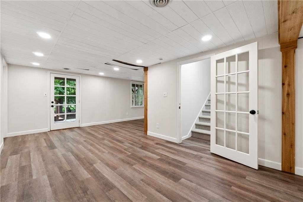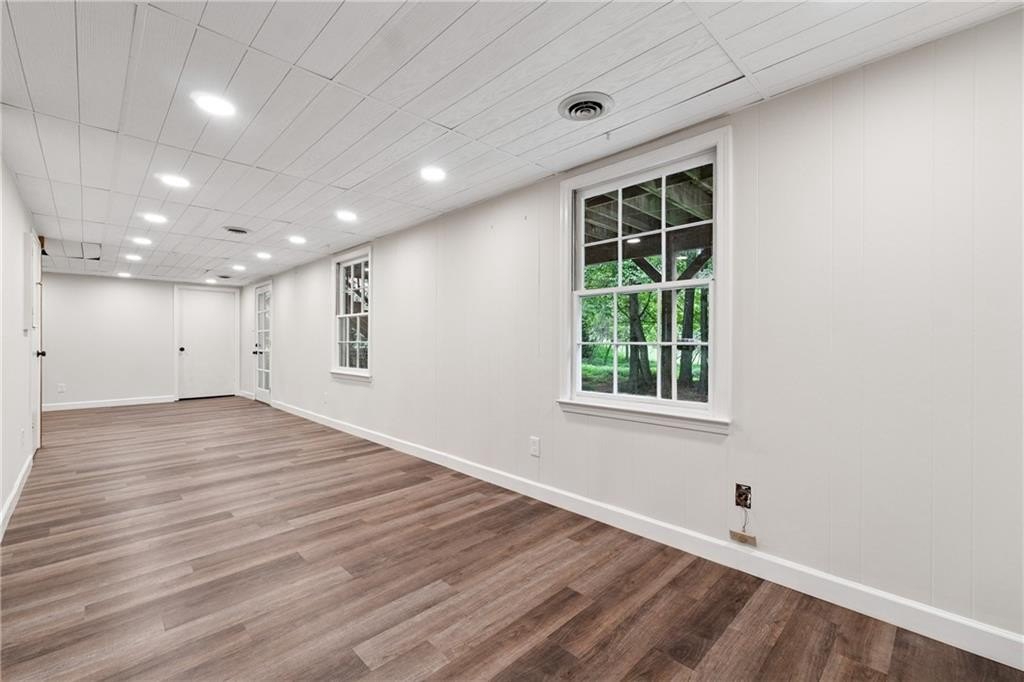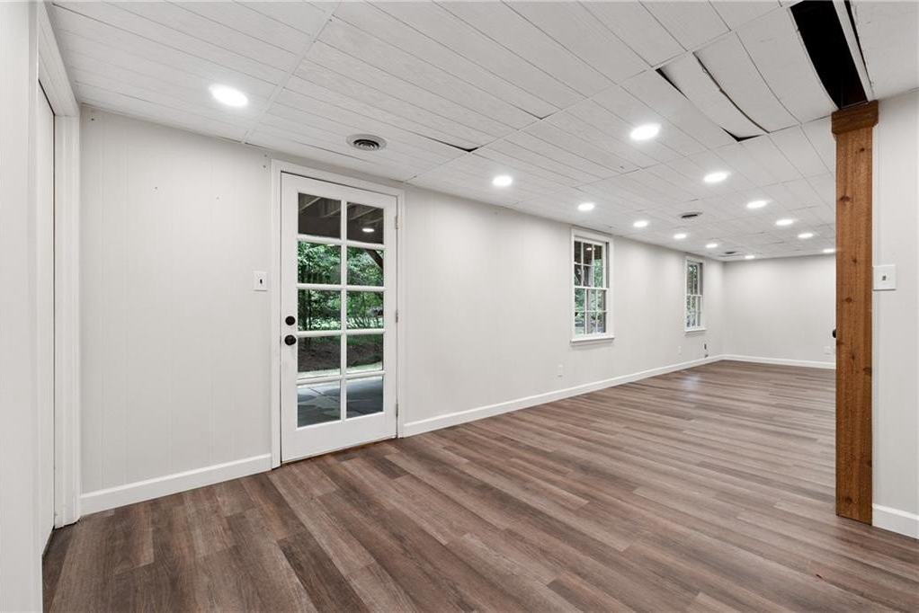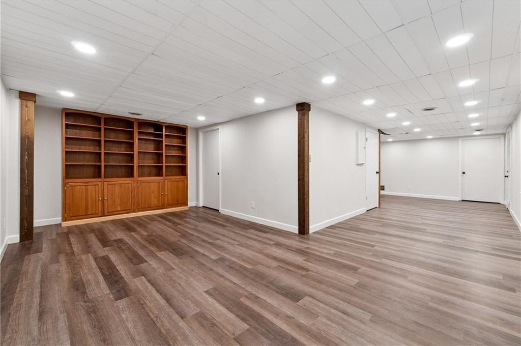 Full huge basement with tons of storage and a storage den which walks out to the yard as well. Easily convertible basement space to add an additional bedroom and still have space for a huge living room in basement.