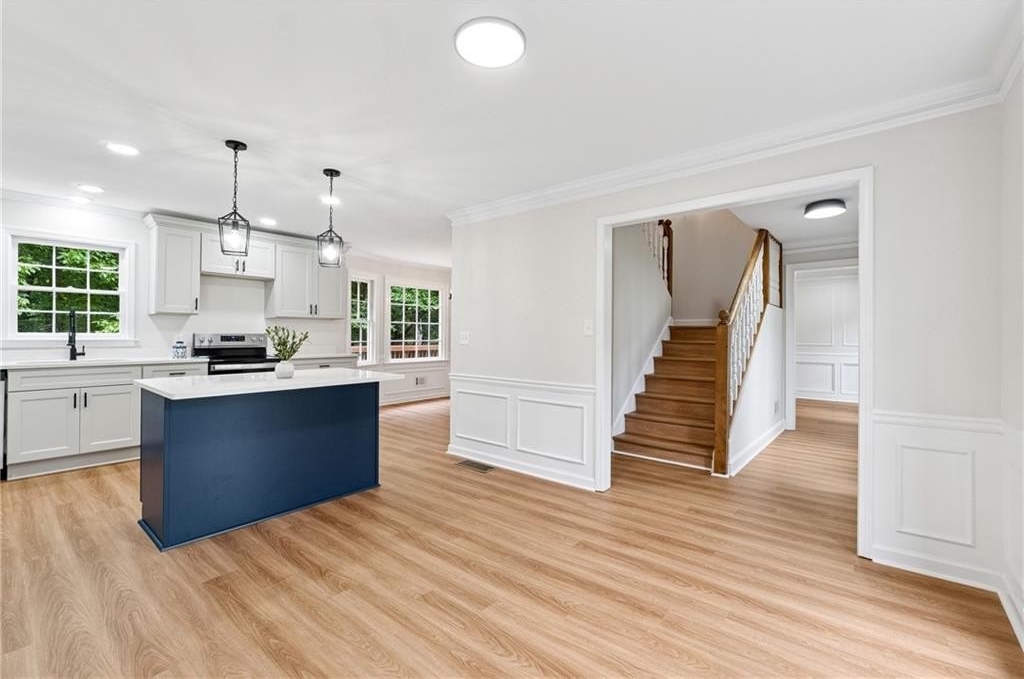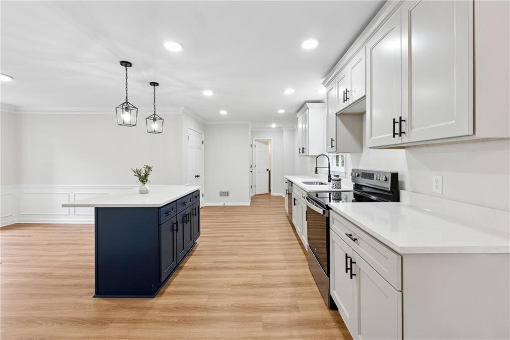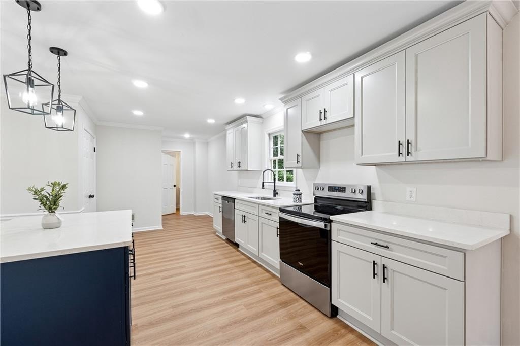 Home features 3 bedrooms, 2 and half bathrooms. Brand new kitchen with new appliances. Kitchen opens to the living room with a beautiful island. Breakfast area feature picture window for viewing Nature.
