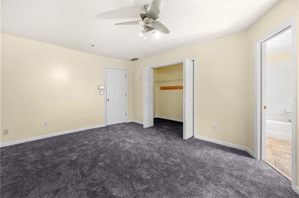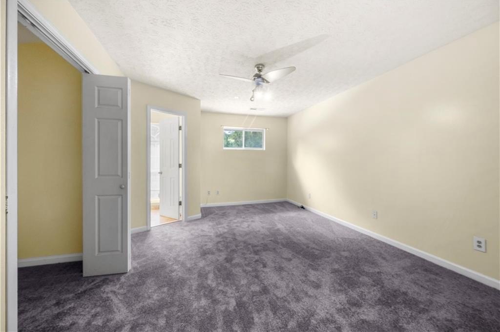 Inside, enjoy fresh interior paint and brand-new carpet on the upper level, creating a bright, updated feel. The kitchen provides ample white cabinetry and generous counter space, while the living room’s cozy fireplace makes it an inviting place to relax or entertain. Upstairs, you’ll find a convenient laundry area, a spacious primary suite with a private bath, and a large walk-in closet.