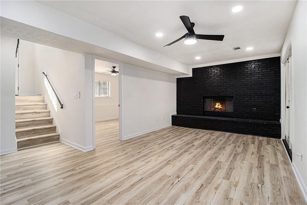Enjoy cozy evenings by the new modern electric fireplace, or entertain outdoors on your expansive brand-new deck. The layout mimics a duplex with 3BD/2BA upstairs and 2BD/1BA downstairs, yet both levels share a single entrance, offering privacy without sacrificing connection.