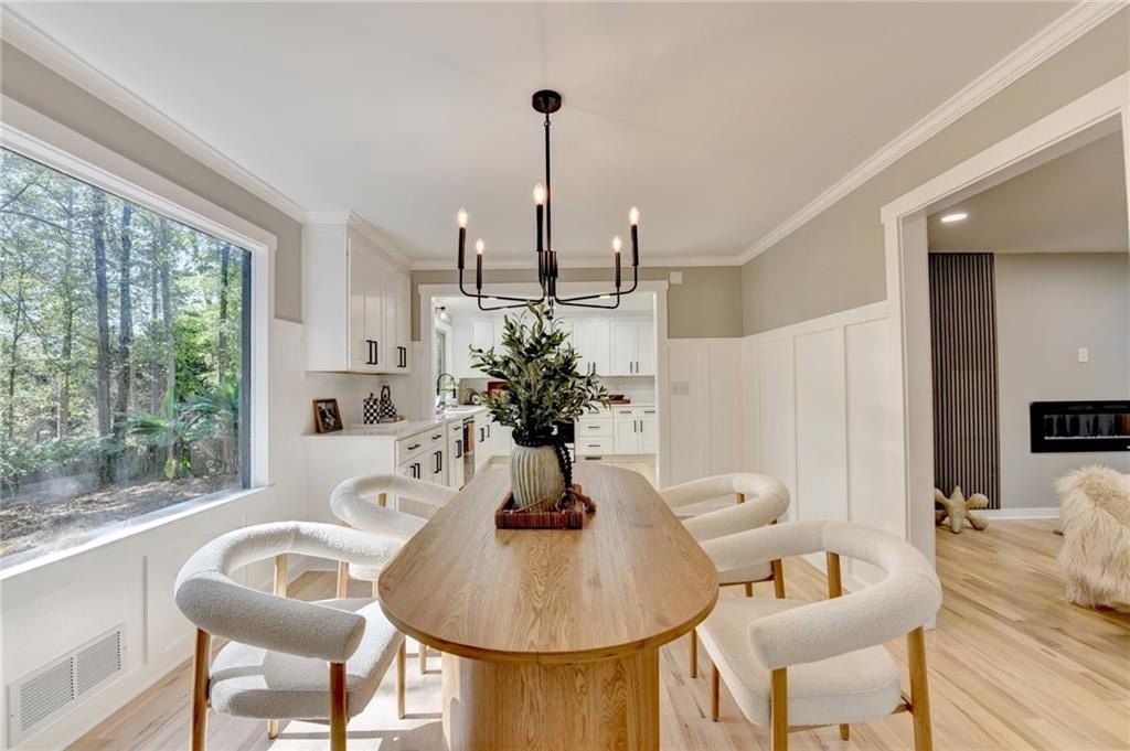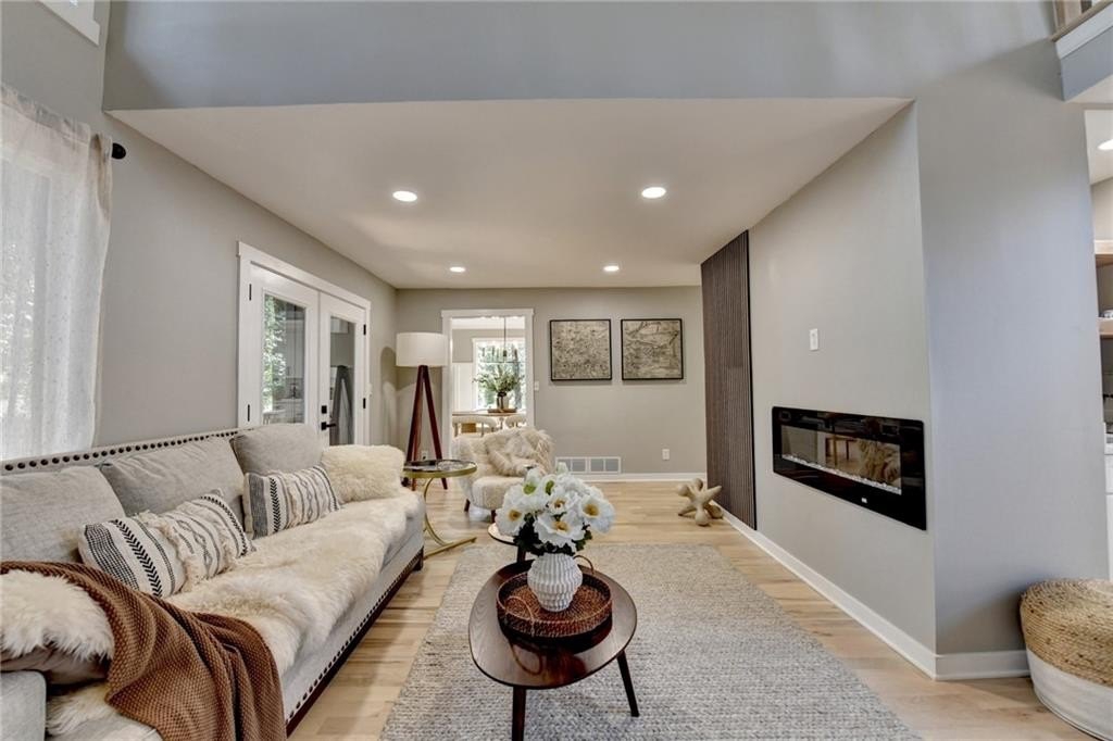 Stylishly remodeled bathrooms, upgraded lighting, and a modern fireplace
