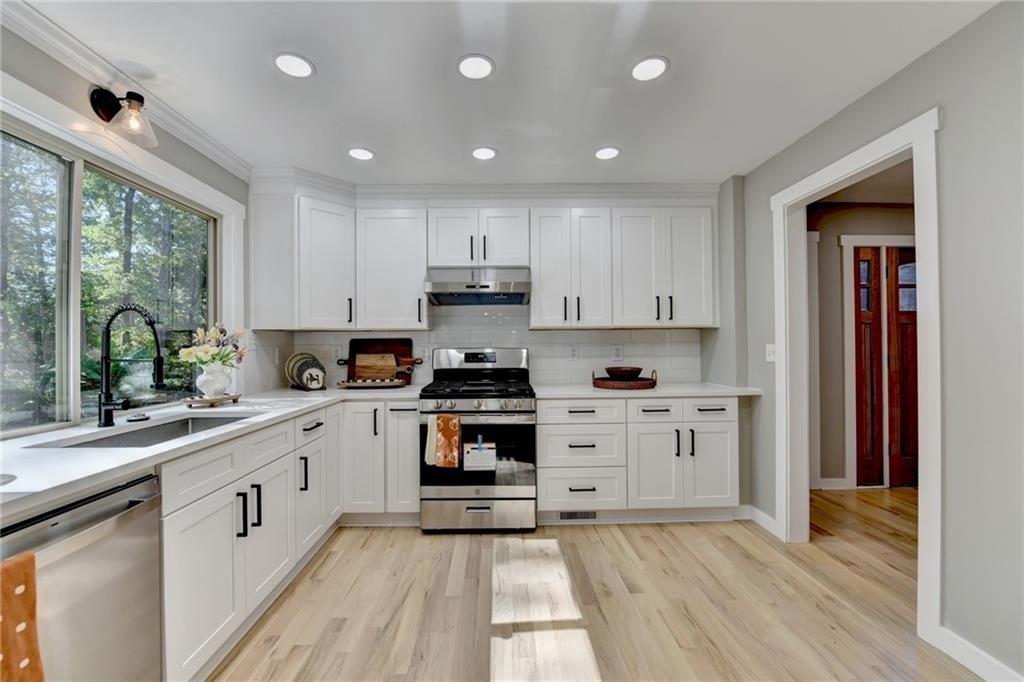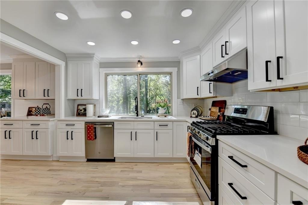 Fully updated kitchen with premium solid wood cabinetry, upgraded fixtures, and modern finishes