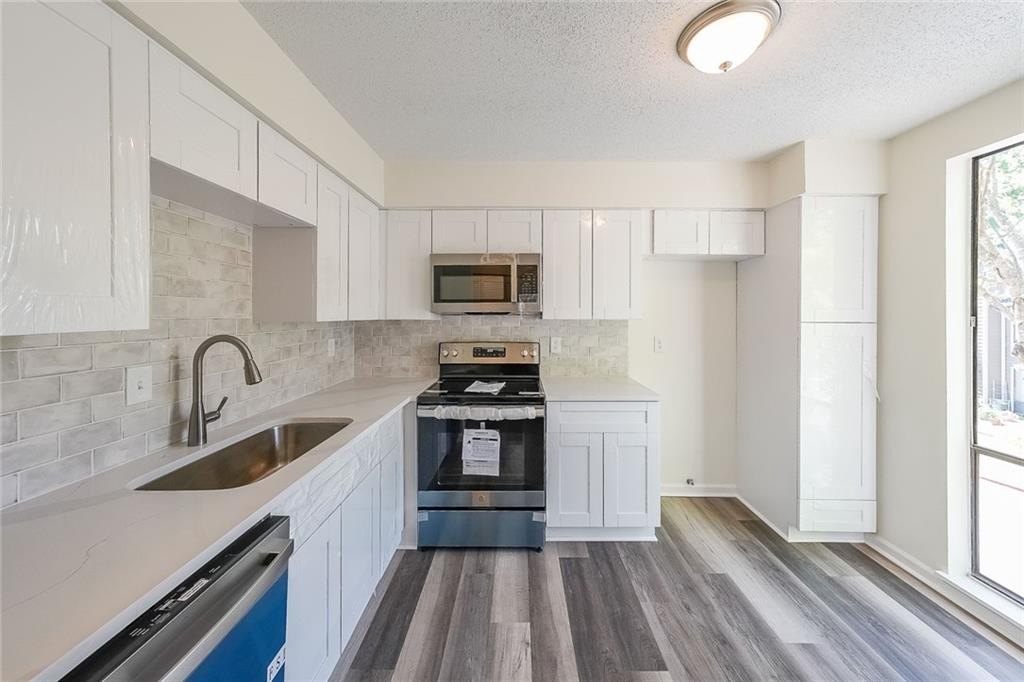 Updated! Move-in ready incredibly rare End Unit River Front townhome! Panoramic riverfront views with direct water access! Best Value on the Water! Floor to ceiling windows and multiple glass doors offering gorgeous river views from all levels. Deck opens to a large grassy area along the river with additional community seating areas and walkable trails. Kayak entry just steps from back door. This professionally landscaped community. New Interior Paint, New LVP hardwoods, New Carpet, New Kitchen Cabinets, Countertops, New sink and disposal, New stainless steel appliances – Range, Dishwasher and Microwave vented to the outside, New Bathroom cabinets, Sinks and Toilets, New lighting, 2 New HVAC systems, New Hot Water Heater, New electrical Panel, New Blinds ! New sun shades on remotes in Family room! too many features to list. Must SEE! LOCATION, LOCATION, LOCATION inside the perimeter with easy access to 285/75/400. Atlanta address with Cobb County lower taxes. A+ walkability factor - walking distance to the Battery/Braves Stadium, Chattahoochee Coffee Shop, restaurants, grocery, and more. Kayak over for Sunday Brunch right across the river to the renowned Ray's on the River. Private access to walking trails. This is your chance for river living inside the perimeter. Priced to Sell!