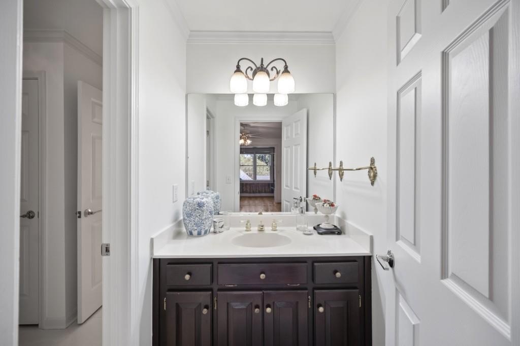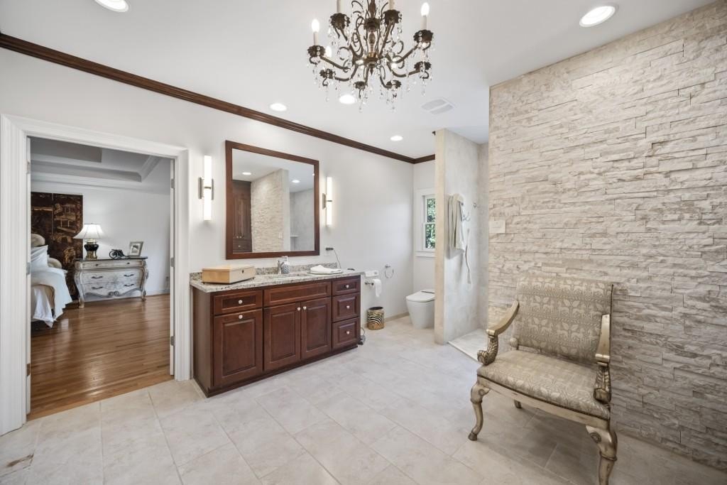Expansive Brick Traditional in Charlton Forge Swim/Tennis Community Nestled in the highly sought-after Charlton Forge community, this stately brick home sits proudly on a private corner lot, offering an abundance of space, storage, and versatile living. Its curb appeal shines with timeless brick construction, black shutters, and a welcoming curved driveway. Step inside the soaring two-story foyer with hardwood floors, crown molding, and abundant natural light. Hardwood floors flow throughout the main level (tile in the sunroom). To the left of the foyer, a formal dining room features a decorative ceiling medallion with chandelier and sconces. To the right, a formal living room (or ideal office/flex space) adds versatility. French doors lead to the cozy family room with a gas fireplace. At the heart of the home, the expansive kitchen impresses with a massive island for prep and bar seating, floor-to-ceiling cabinetry, and a Sub-Zero panel-ready refrigerator for a seamless design look. The gas stove includes dual warming drawers, and there are two sinks with disposals. A built-in pantry with desk nook houses the microwave, while an additional glass-front cabinet section offers lighted display storage. The kitchen flows into a casual dining area and a sunroom with cedar shake walls and a dramatic two-story rock fireplace for natural wood burning. Also on the main level, you'll find a guest suite with sitting area, walk-in closet, and adjacent full bath. A hallway leads to a spacious laundry room with cabinetry and utility sink, a 2-car garage, and a built-in office nook with custom cabinets. Upstairs, the primary suite offers a sitting room, double closets, and a spa-inspired bathroom with dual vanities, a large walk-in shower with multiple showerheads, an auto-opening bidet, built-in shelving, and a dressing-room style walk-in closet. Another bedroom has a private full bath, while two additional bedrooms share a Jack-and-Jill bath. The finished basement is designed for entertaining and flexible living, featuring a full kitchen, kitchenette, theater room, bonus rooms, and an extra-deep 1-car garage. This home offers access to Charlton Forge's amenities-including swim, tennis, clubhouse, sidewalks, and playground-along with a warm community feel. Just minutes to Marietta Square, Kennesaw Mountain, shopping, dining, and more, and located within the Hickory Hills Elementary and Marietta High school zones (buyer to verify), this residence delivers a winning combination of space, location, and lifestyle.