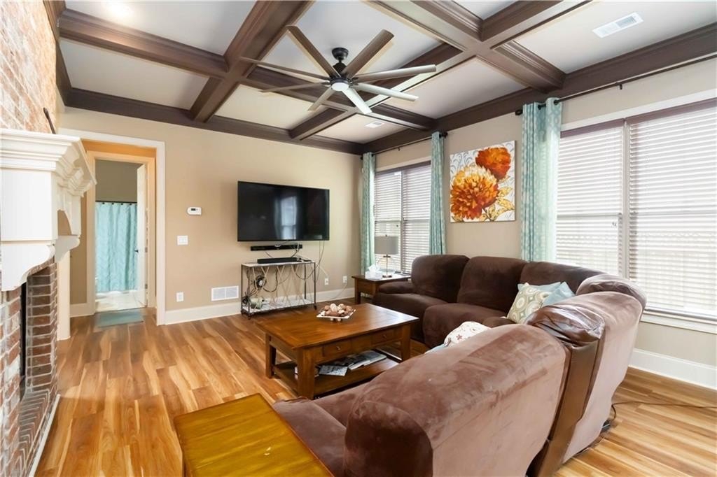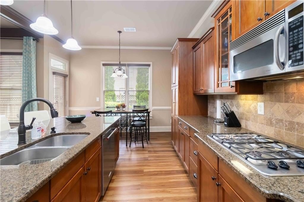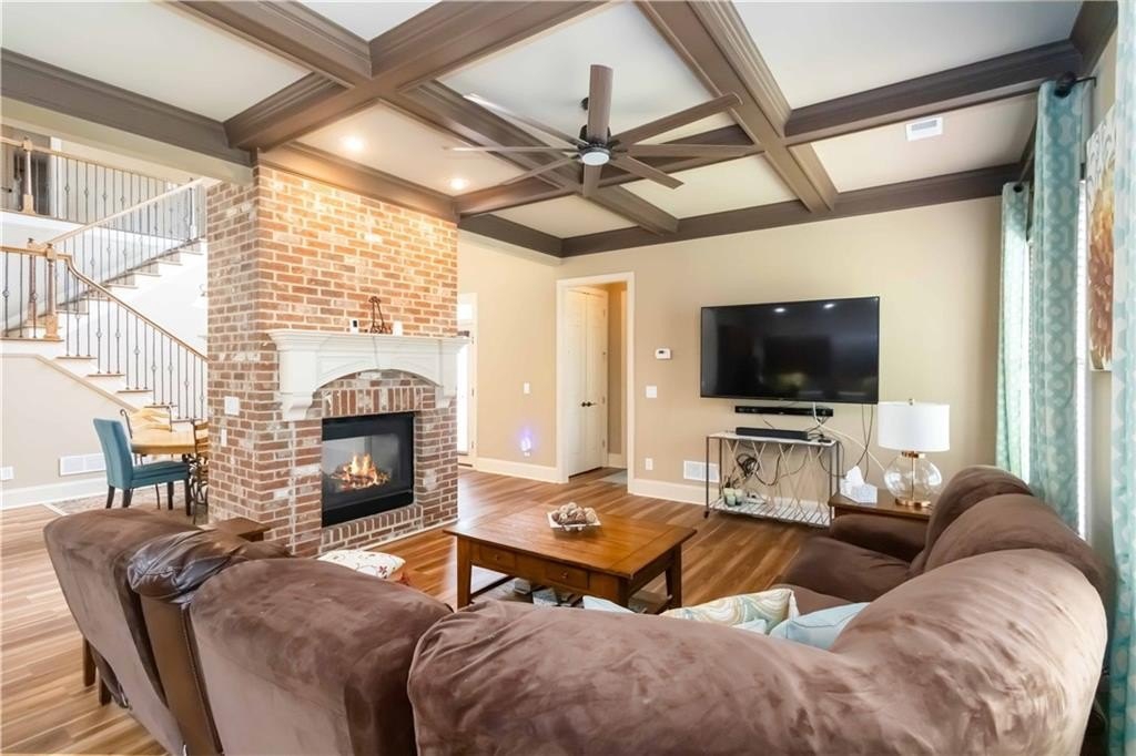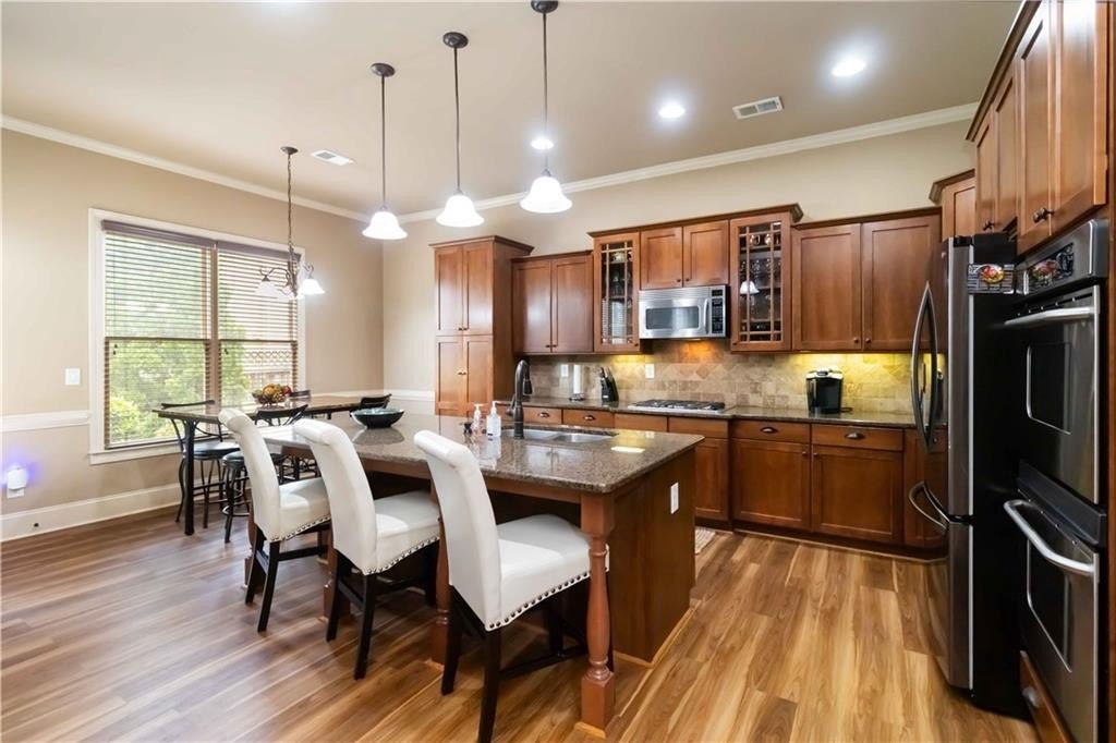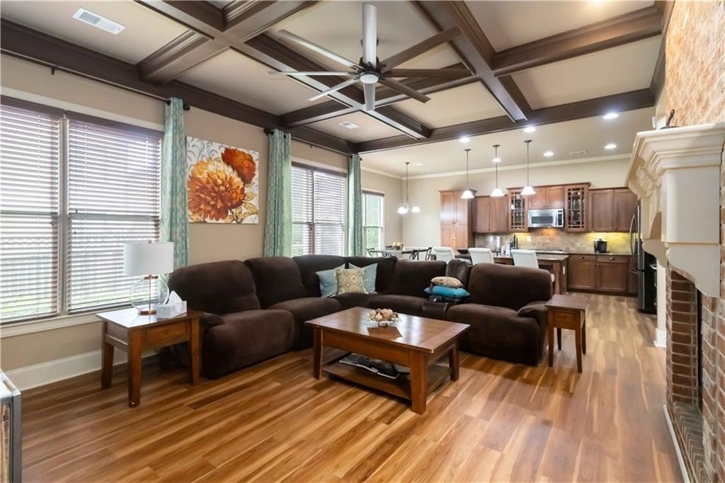 **BACK ON MARKET/NO FAULT TO SELLER. HOME APPRAISED WELL ABOVE LIST PRICE!!! Model home floor plan gives this gorgeous, unique Craftsman Home Luxury Features! Step into timeless elegance with this stunning Craftsman-style residence, showcasing exceptional craftsmanship. A charming front veranda welcomes you into a two-story foyer, setting the stage for the grandeur that follows. The main level boasts a guest bedroom, new floors and soaring tall doors that evoke a storybook feel, adding warmth and charm. Designed for both comfort and sophistication, the open-concept living space features vaulted ceilings, a coffered ceiling sitting area, and dual fireplaces that grace both the living and dining areas, as well as the expansive primary suite and its spa-like bathroom. The gourmet kitchen is a chef's dream with granite countertops, an abundance of custom wooden cabinetry, stainless steel appliances, including a double wall oven, and a spacious walk-in pantry. Jack and Jill connect two nice-sized bedrooms and offer a roomy loft that allows the perfect retreat for a second TV area or reading nook. The walk-in laundry room, oversized garage with extra storage, and double patios enhance everyday convenience. Outside, enjoy the fully fenced backyard with a sprinkler system ideal for hosting or relaxing, and take full advantage of the community amenities, including a sparkling swimming pool, playground, and a beautiful fishing lake that invites peaceful weekend escapes. The owners have already taken care of the major updates for you, including a brand-new HVAC unit, a new water heater, and a new roof, offering peace of mind and added value. From its dramatic architectural features to its thoughtful design, this home offers luxury living with Craftsman charm in a vibrant and charming neighborhood.