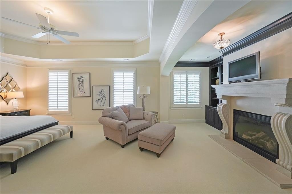 Upstairs the oversized owner’s suite features a sitting area with a second fireplace and a morning coffee bar. The primary bathroom offers his / her walk-in closets, more custom cabinets, a jetted tub and a large glass enclosed shower. Bedroom #2 features and an ensuite bathroom. The spacious laundry room, also on the 2nd floor, includes custom cabinets and a sink.