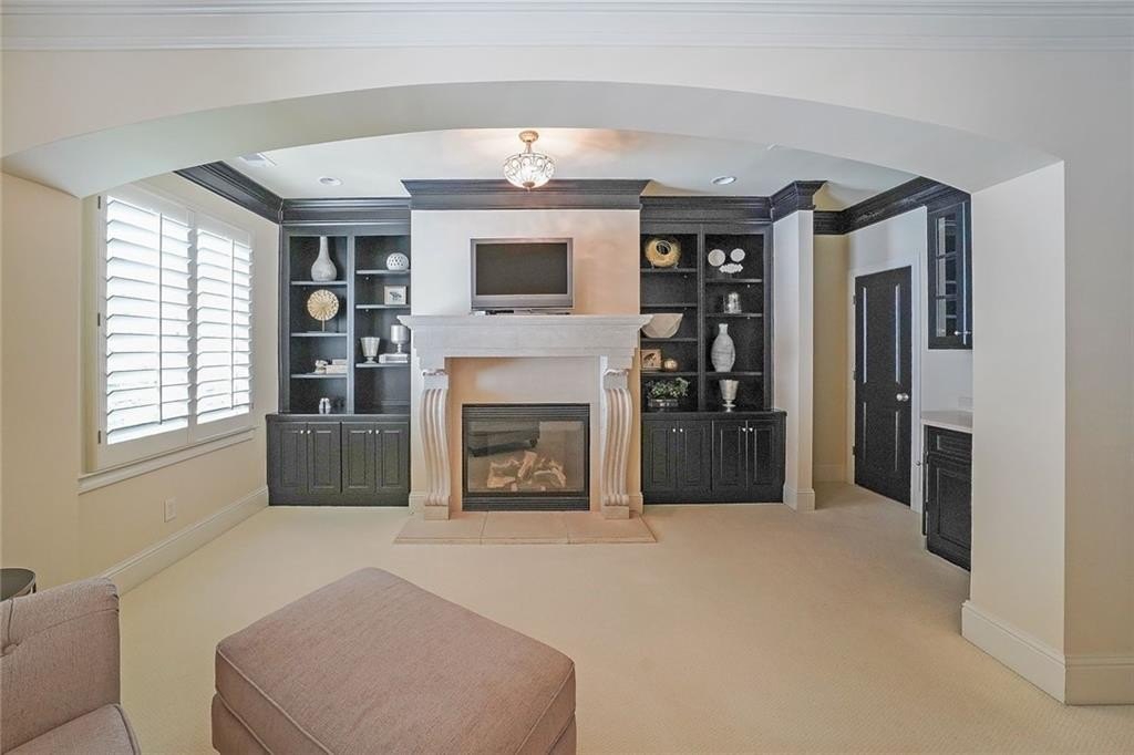 The entry foyer leads to the kitchen that looks brand new. From there the open concept gives way to the family room, dining room and living room. The kitchen features Wolf and Sub-Zero stainless-steel appliances, granite countertops, a built-in microwave and custom cabinetry with glass doors. The adjoining family room includes a gas fireplace and built-in shelving. Custom cabinetry adds beauty and storage to almost every room.