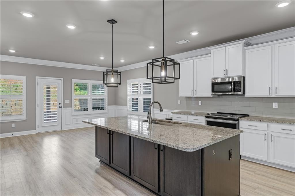 Welcome to this meticulously maintained 5-Bedroom home in Highly Sought-After Community, nestled in one of the area's most desirable neighborhood! This beautiful home is in a swim and tennis community with sidewalks throughout. It is conveniently located right around the corner from Mall of Georgia and near anything you could possibly ask for. From the moment you step into the house, you'll appreciate the care and designer updates that make this property truly move-in ready. Gleaming hardwood floors throughout the ENTIRE Home, complemented by fresh, neutral paint. Luxurious 100% Wood Plantation shutters throughout the entire home provide privacy, and updated light fixtures add a modern touch. The spacious layout offers both comfort and function, with ample room for living, entertaining, and everyday life. Stunning gourmet kitchen with oversized island, walk-in pantry, ample counter and cabinet space with beautiful granite countertops. Beautiful open living room with incredible views into the private backyard! Outside, you'll find a fenced backyard, a stone flower bed in the front, and a stone retaining wall in the back. Relax on the covered back porch and enjoy all this lovely home has to offer!