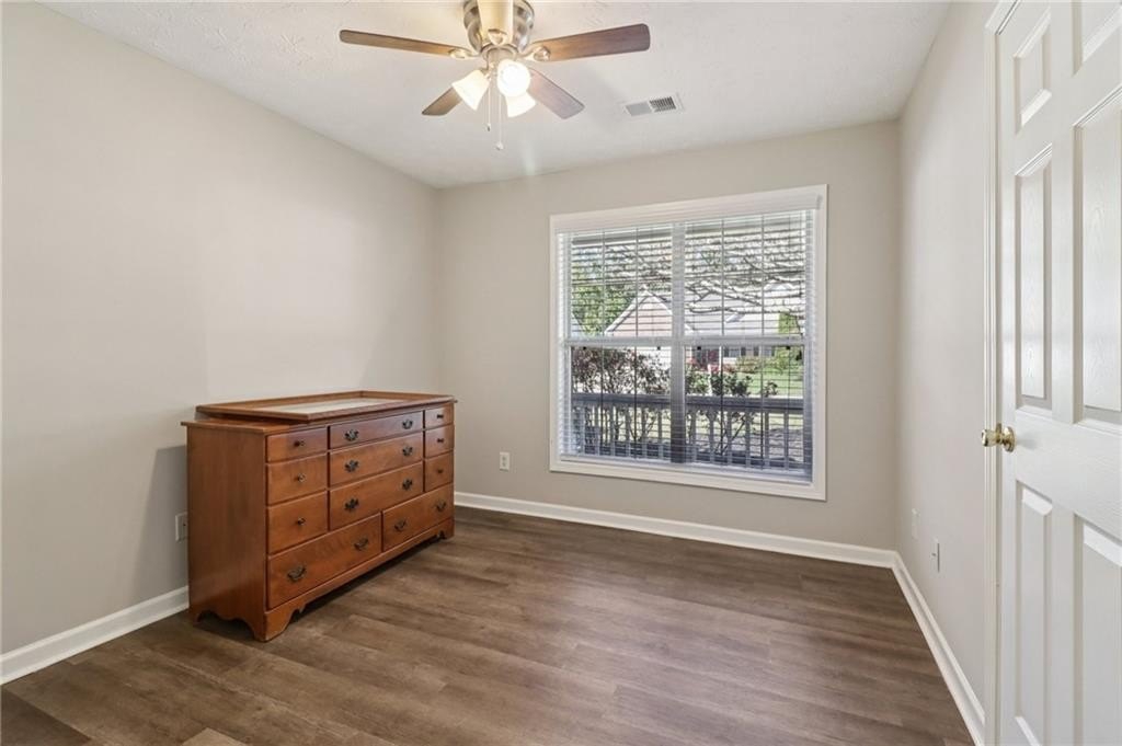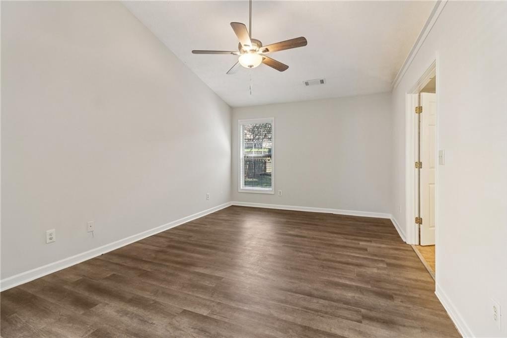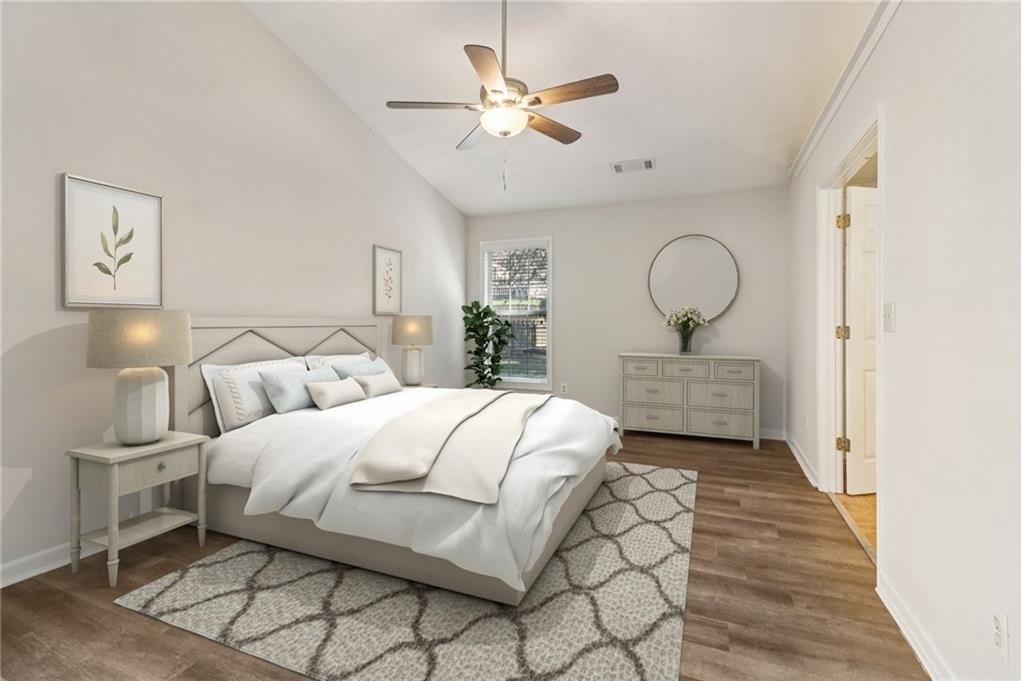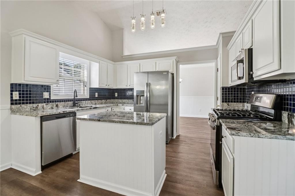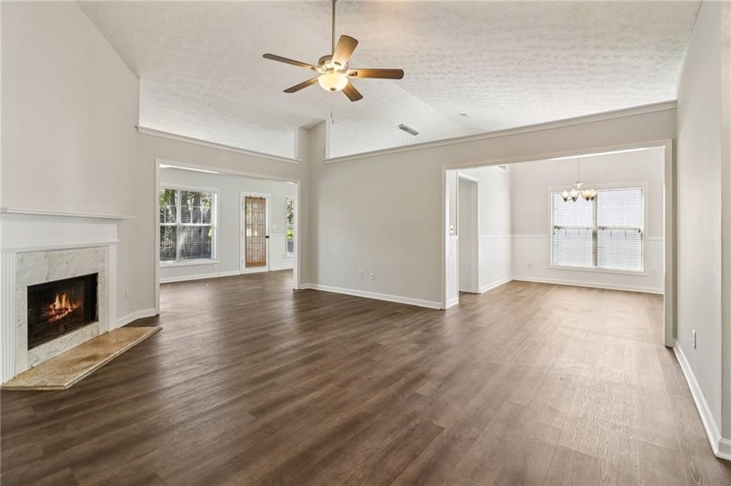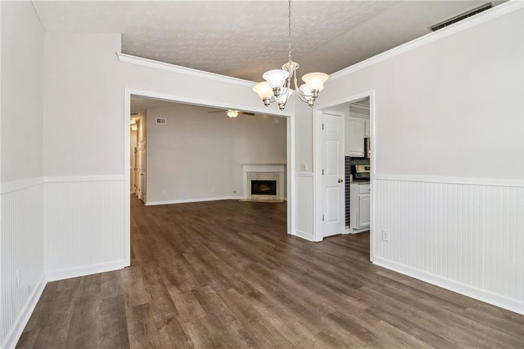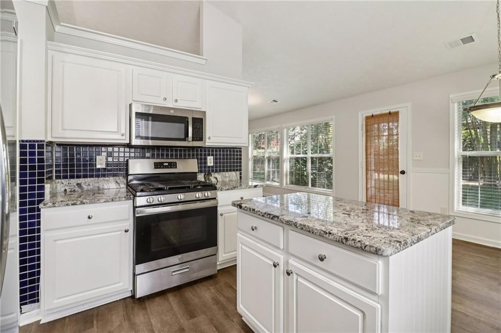 Lovely Single-Story Home with Bright, Open Spaces! This inviting home features a sweeping front yard and welcoming porch. Inside, beautiful, easy-to-maintain vinyl wood floors run throughout the living areas and bedrooms—no carpet! The open-concept living room offers a cozy fireplace, while an architectural entryway leads to the formal dining room with chair railing. A bright sunroom with a wall of windows makes the perfect reading nook or relaxing retreat. The on-trend kitchen includes white cabinetry, granite countertops, tile backsplash, stainless steel appliances, and a center island, plus a breakfast room overlooking the private backyard. The primary suite features a vaulted ceiling and en-suite bath with dual vanities, a soaking tub, and a fully tiled walk-in shower. Two additional spacious bedrooms and a full bath provide plenty of room for everyone. Enjoy outdoor living in the fenced backyard with mature trees, green space, and a patio ideal for grilling and entertaining. Community amenities include a clubhouse, pool, and playground. Conveniently located near schools with easy access to shopping and dining, this home offers both comfort and convenience! Book your tour today!