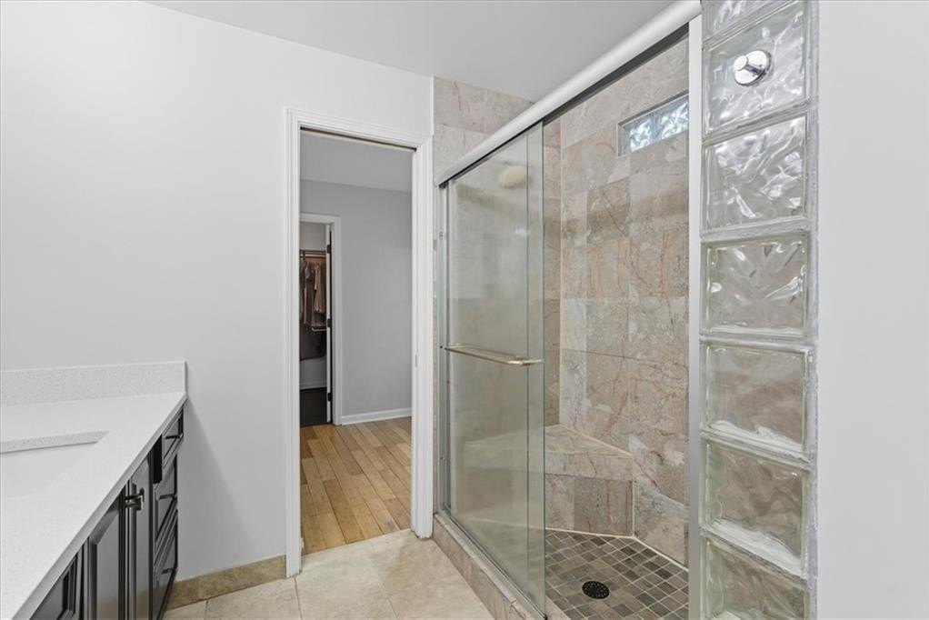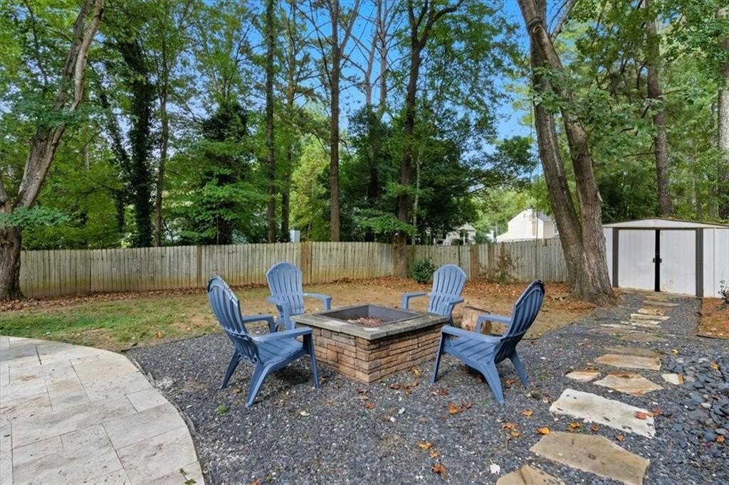Step outside to your private backyard oasis. The heated gunite saltwater pool with Pebble Tec finish and travertine surround is the centerpiece, complemented by a spacious pool deck, outdoor shower, and cozy firepit, perfect for entertaining or relaxing.