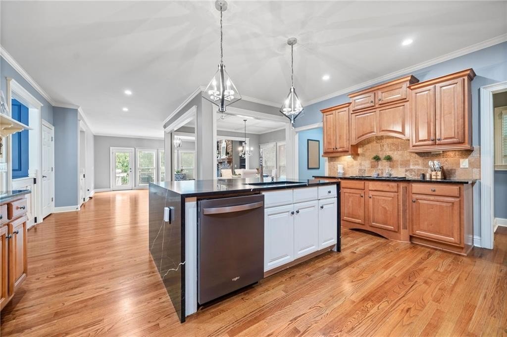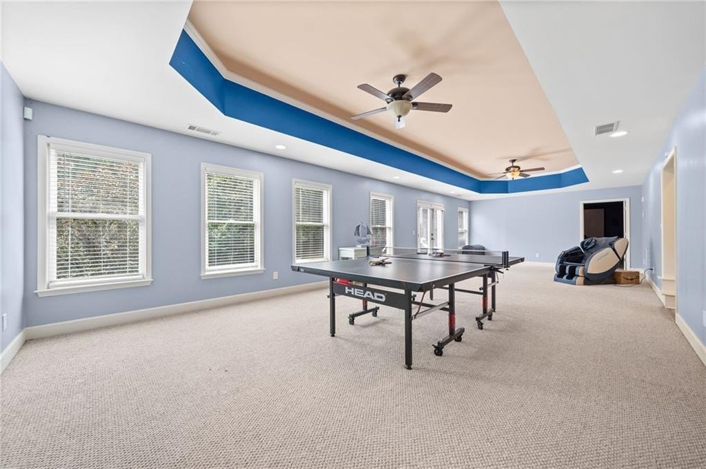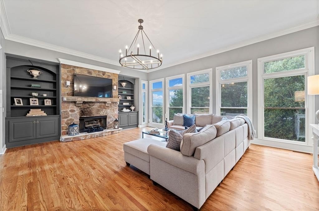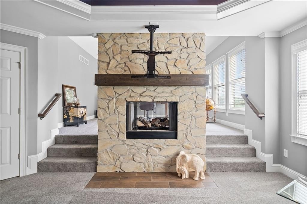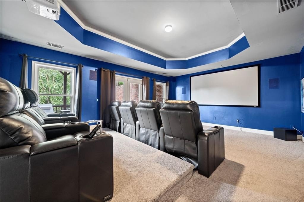 Looking for a beautiful, enormous house in the golf course/swim/tennis community of Bridgemill? Then look no further and own this gorgeous home with over 6800 sq feet that has a theater room with luxurious leather seating, wine room, chef's kitchen and incredible primary suite with enormous custom closet! This is a spectacular home that is even more impressive in person! This gorgeous executive brick home has everything you need! The rocking chair front porch is inviting as you enter a grand foyer flooded with natural light. The millwork in this home is superb with custom wall molding, trim and even handcrafted barn doors for the office. Enjoy hardwood floors throughout the home with the oversized dining room that also showcases custom millwork and lighting. The family room and keeping room have gorgeous stone fireplaces with built in bookcases. The massive breathtaking windows in the family room offer a gorgeous view of a private backyard. Enjoy entertaining in the chefs' kitchen with custom cabinets and a massive marble island that is a showstopper. A walk-in pantry, gas stove top, double oven, and second office make this kitchen a delight to entertain while enjoying even more living space in the large open keeping room. Open the doors to a deck for barbequing and more entertainment as you view this lush private backyard that is fully fenced in. Bedroom ensuite with full bath on first floor offers privacy. Upstairs is an owner's retreat with a massive bedroom, including custom millwork trey ceiling, 2-sided fireplace that joins to sitting room/office. The primary bathroom is extraordinary with whirlpool tub, large doubled headed shower with separate and highly desirable beauty room/vanity mirror. The incredible DREAM closet that is the size of a 3-car garage offers a sitting/dressing area to lounge and additional closet for locked storage for securing valuables. A convenient and custom laundry room awaits on the second floor which offers plenty of storage and can be used for crafts as well. Three additional bedrooms are a part of the upstairs space, with two bedrooms sharing a bathroom and the third offering a private bath. Daylight basement features custom wine storage cabinetry and elegant wine tasting room. Enjoy the huge game room that can hold a pool table and ping pong table. Step inside the custom theater room with surround sound for a "night at the movies". Guests can enjoy staying on this terrace level in the bedroom with hall bath or turn this room into a custom gym! Outdoor entertainment includes a custom-built fire pit, deck, lighting and even a hand painted jumbo chess board for game enthusiasts! Other amenities of this property include a 3-car garage, smart tech security and NEST thermostats, and upgraded outdoor lighting. Bridgemill is a paradise of outdoor activities with a golf course, aquatic center with water slides, 28 tennis courts, pickleball, gym, playground and pavilion and restaurant. An active neighborhood social calendar awaits you and Lake Allatoona is only a few miles away! Don't miss this great opportunity to own this beautiful home in Bridgemill! ( HOA dues are required but private membership to Bridgemill Athletic/Golf Club offered but not mandatory.)