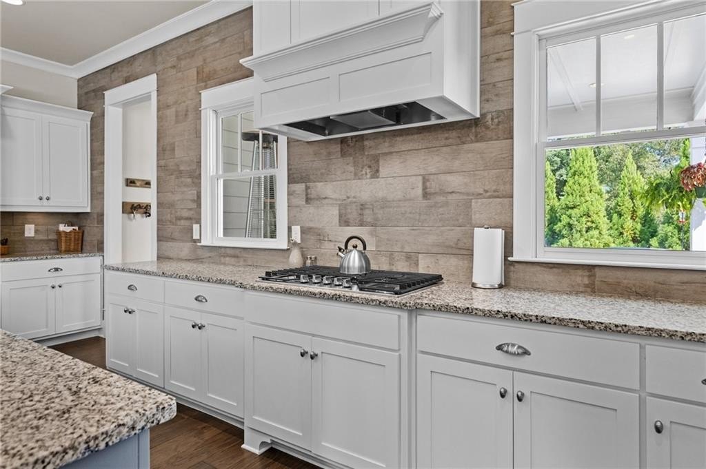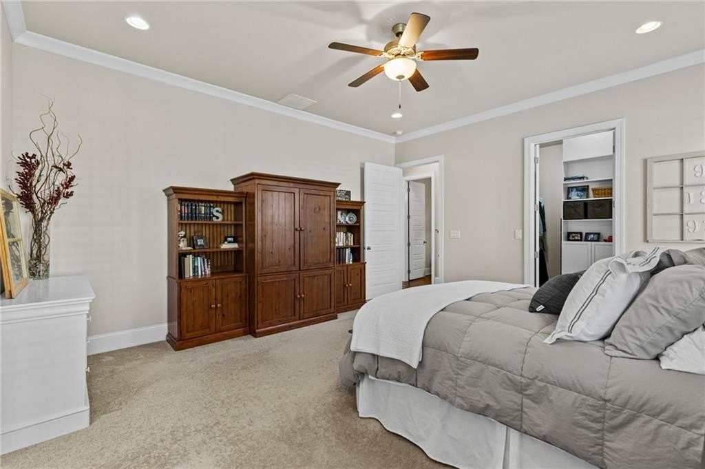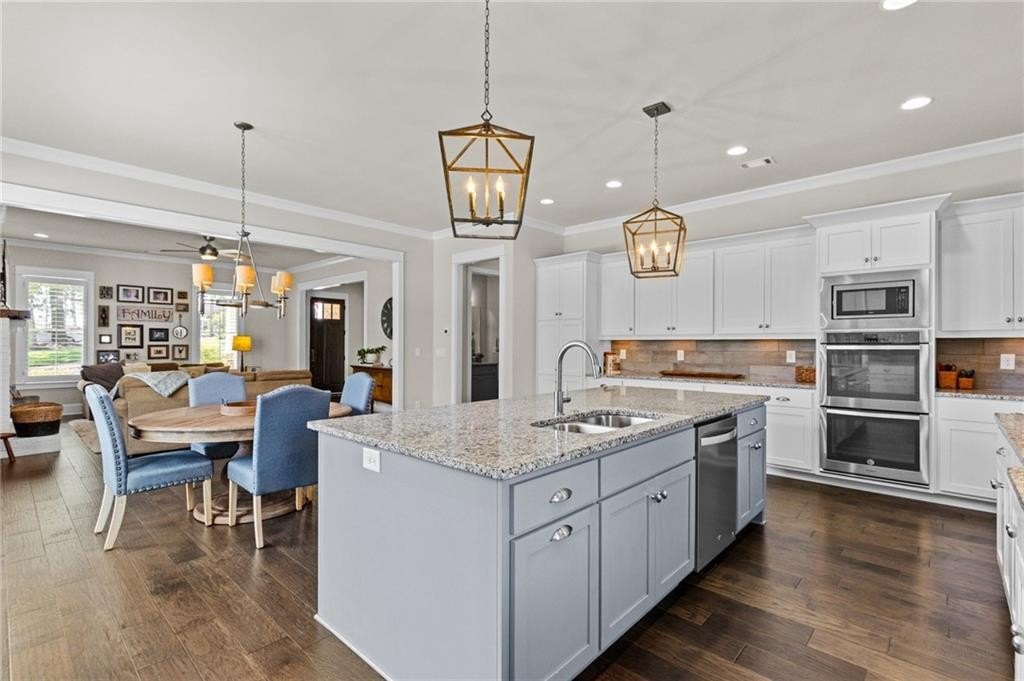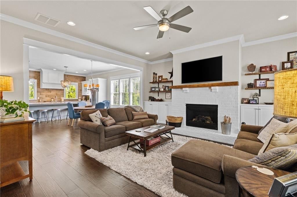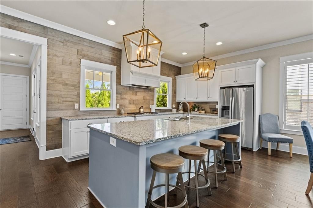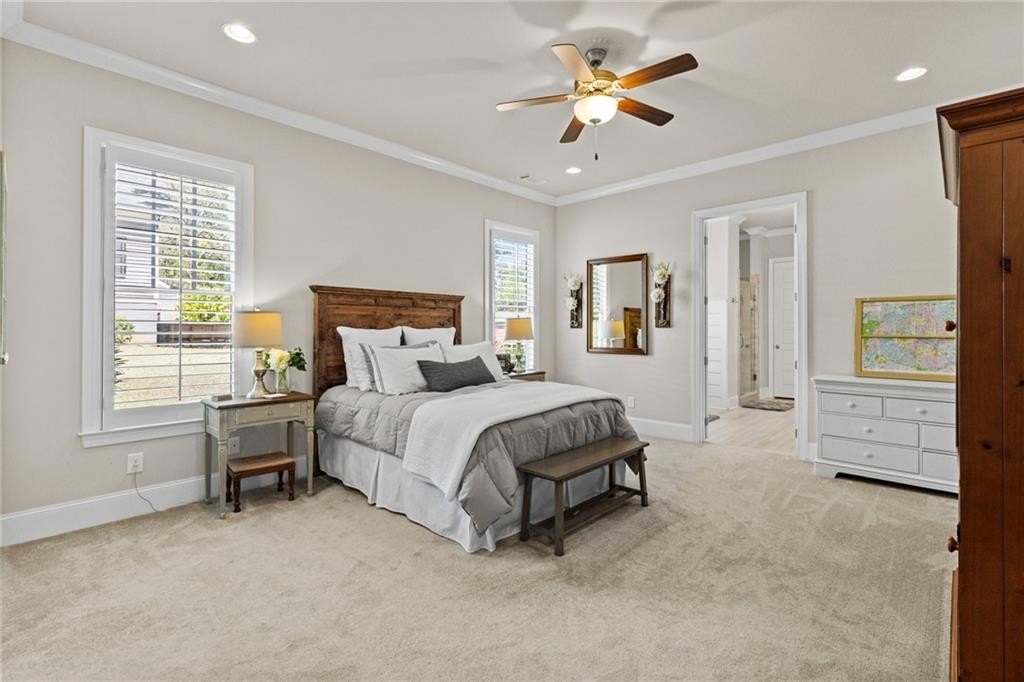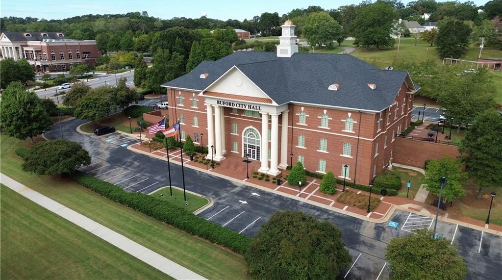 This stunning Craftsman style home combines classic architecture and an unbeatable location in a highly sought-after Buford City School district- just a short stroll to downtown and the community center! A classic rocking chair front porch invites you inside to a stunning open floor plan designed for both comfort and entertaining. Step inside to discover a spacious and thoughtfully designed layout, featuring a main level primary suite. Highlights include a large walk-in closet, a serene spa like en-suite, and direct access to the laundry room. The heart of the home is the cozy family room, open dining area and expansive chef's kitchen, complete with a massive island, high-end appliances, and a dedicated coffee bar. Enjoy the flexibility of a private office, ideal for working from home. Upstairs, you'll find three spacious secondary bedrooms, two full bathrooms and a versatile loft area and walk-in closet. Beautiful plantation shutters grace every window, providing both privacy and a polished look throughout the home. The three car garage, mudroom, extra closet space throughout, and attic space provide plenty of storage to keep things organized and tidy. Retreat to the outdoors on the cozy outdoor covered patio. Walk to charming shops, top notch restaurants, and the community center where year round concerts and festivals bring families and neighbors together. This home offers the perfect blend of lifestyle, location, and luxury in one unbeatable package.