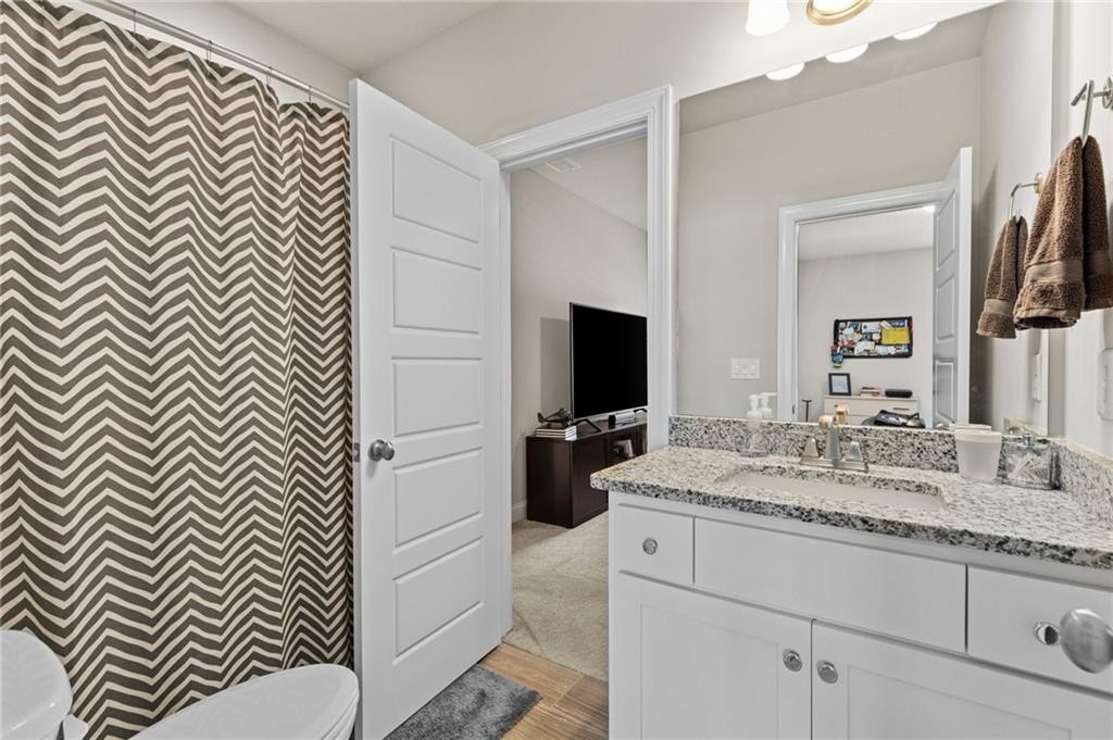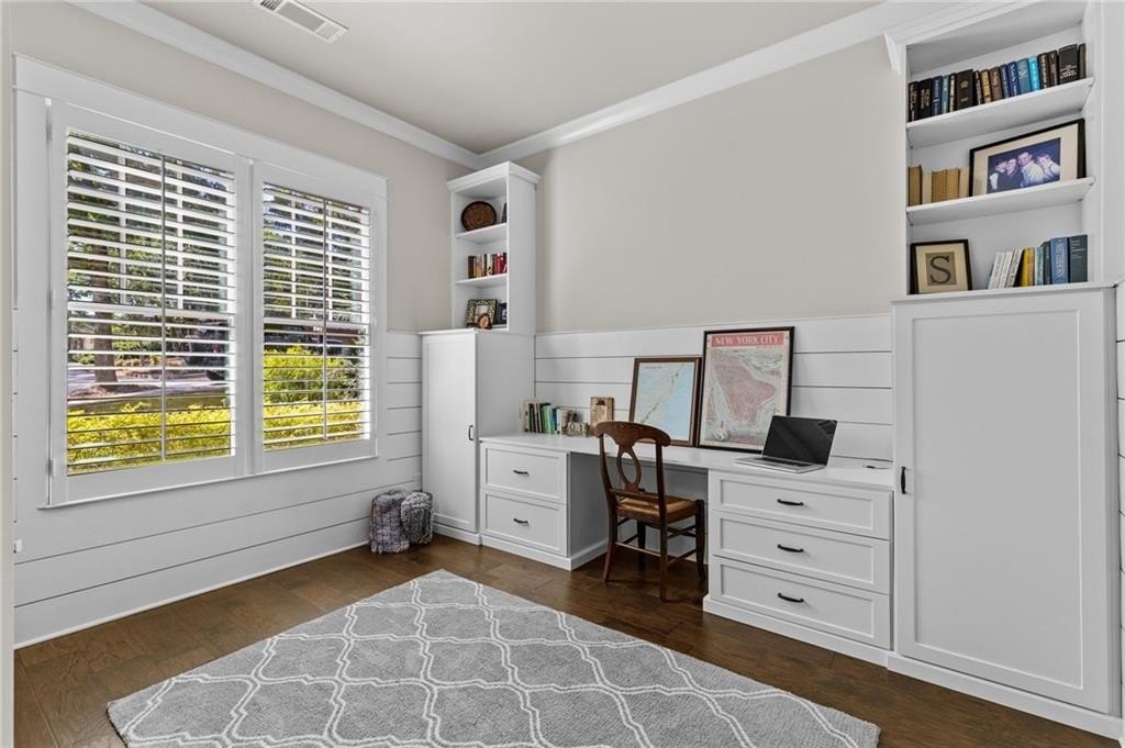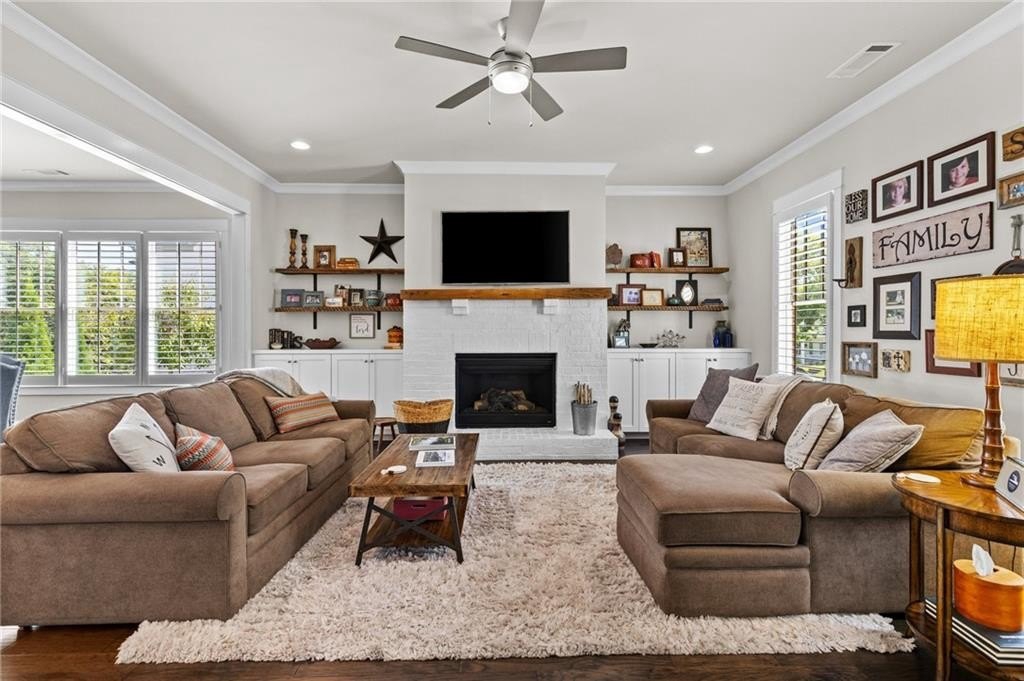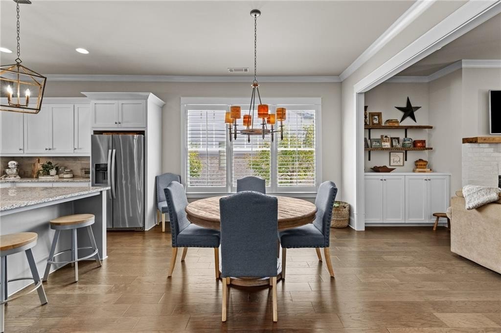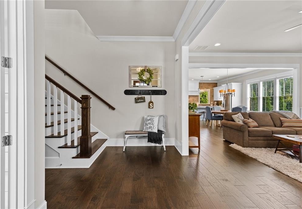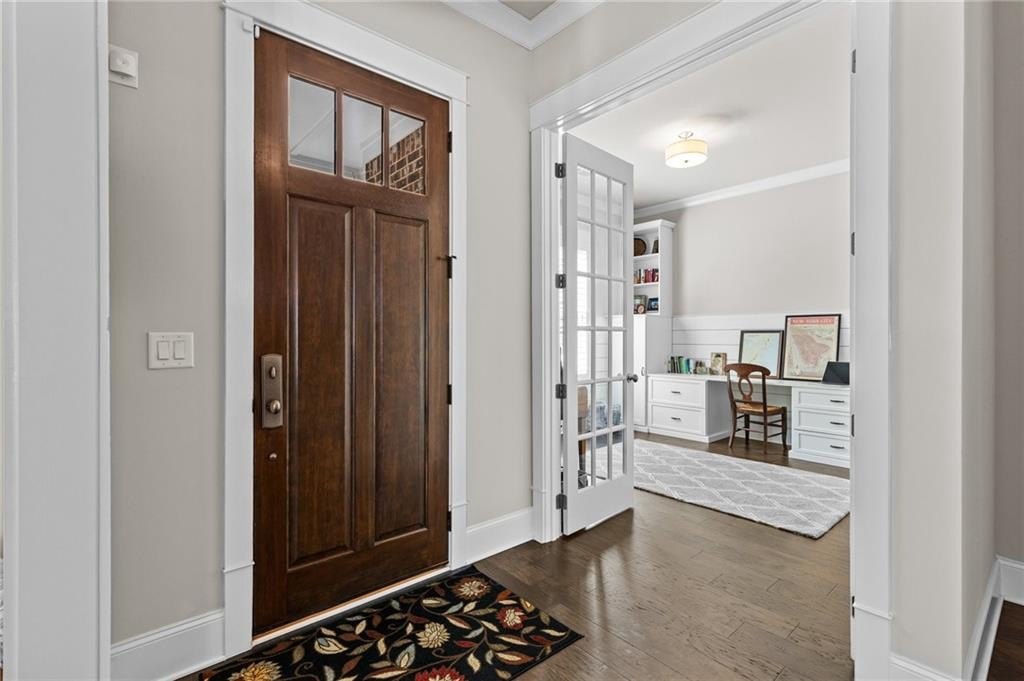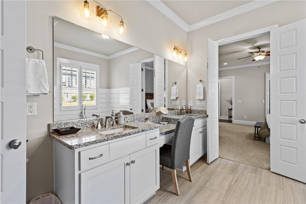This stunning Craftsman style home combines classic architecture and an unbeatable location in a highly sought-after Buford City School district- just a short stroll to downtown and the community center! A classic rocking chair front porch invites you inside to a stunning open floor plan designed for both comfort and entertaining. Step inside to discover a spacious and thoughtfully designed layout, featuring a main level primary suite. Highlights include a large walk-in closet, a serene spa like en-suite, and direct access to the laundry room. The heart of the home is the cozy family room, open dining area and expansive chef's kitchen, complete with a massive island, high-end appliances, and a dedicated coffee bar. Enjoy the flexibility of a private office, ideal for working from home. Upstairs, you'll find three spacious secondary bedrooms, two full bathrooms and a versatile loft area and walk-in closet. Beautiful plantation shutters grace every window, providing both privacy and a polished look throughout the home. The three car garage, mudroom, extra closet space throughout, and attic space provide plenty of storage to keep things organized and tidy. Retreat to the outdoors on the cozy outdoor covered patio. Walk to charming shops, top notch restaurants, and the community center where year round concerts and festivals bring families and neighbors together. This home offers the perfect blend of lifestyle, location, and luxury in one unbeatable package.