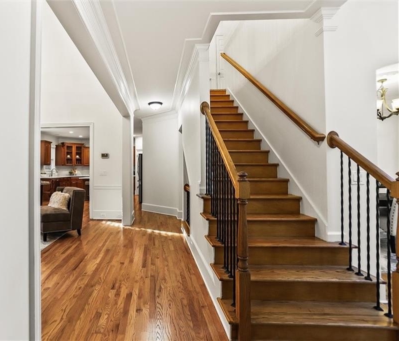 The finished terrace level adds even more versatility with a media room, in-law suite, or recreation area, opening to a covered patio and private backyard with wooded views.