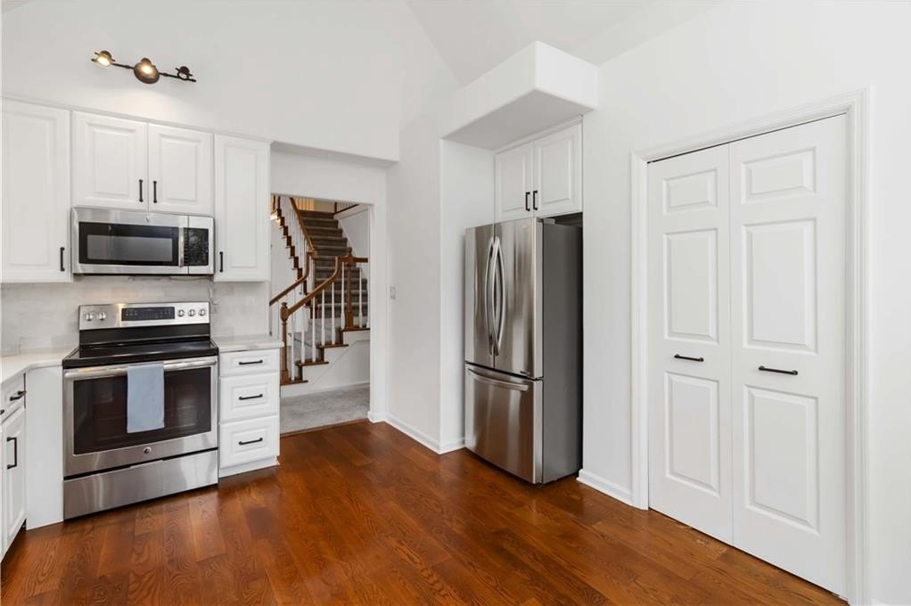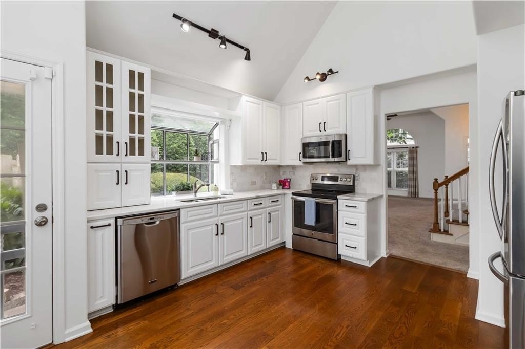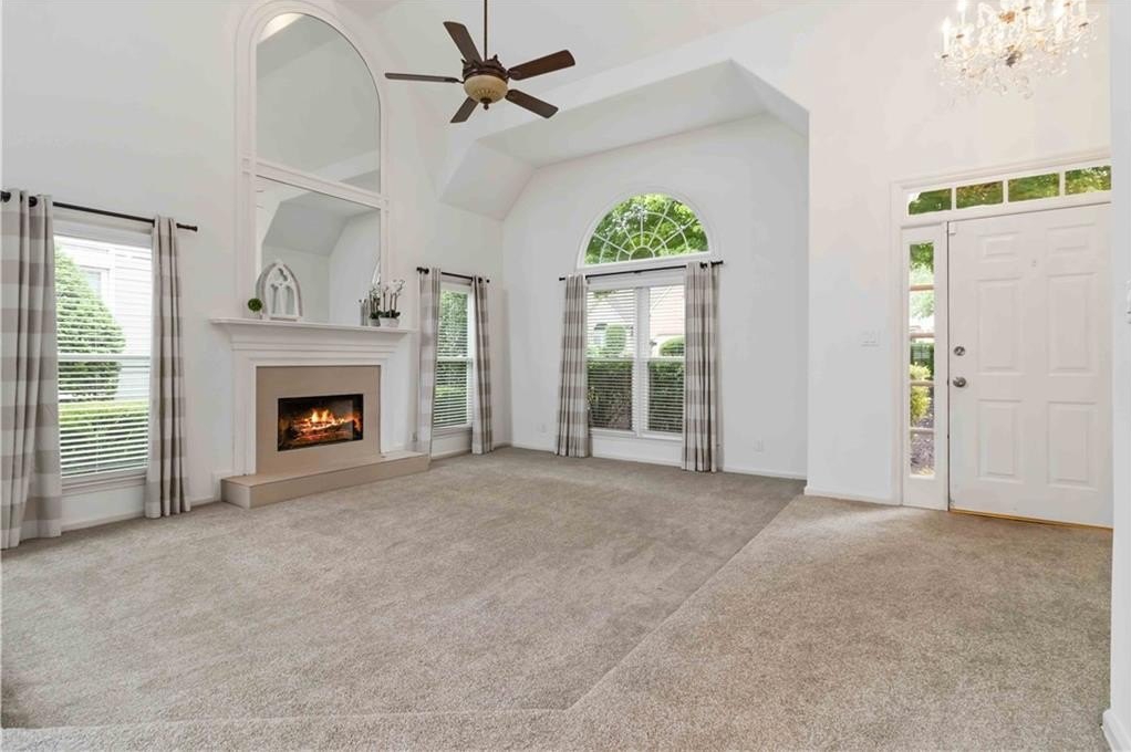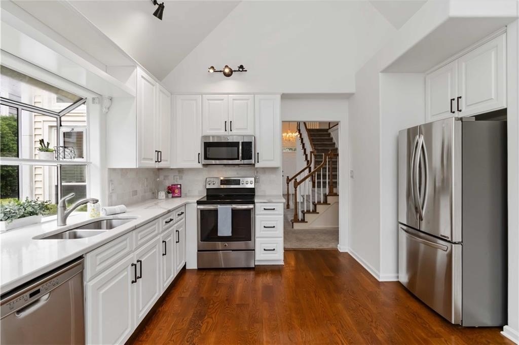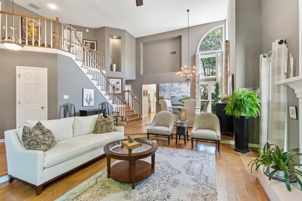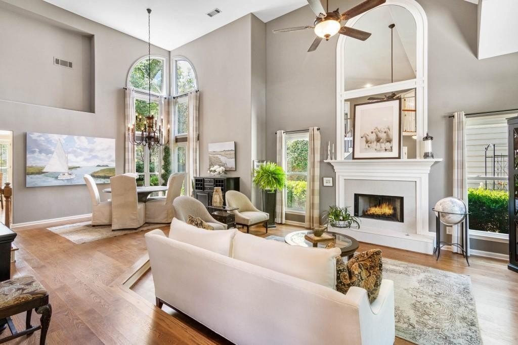 Elegant Master-on-Main Home Designed for Effortless Living & Entertaining Discover refined comfort and timeless style in this beautifully maintained master-on-main home, perfectly tailored for both everyday living and effortless entertaining. Step through the front door to soaring ceilings and sun-drenched windows that fill the spacious fireside great room with natural light. Charming kitchen features wood flooring, quartz countertops, stainless steel appliances, freshly painted white cabinetry with custom shelving, and a pantry. A bright eat-in area and separate dining space create the perfect setting for casual meals or hosting guests.