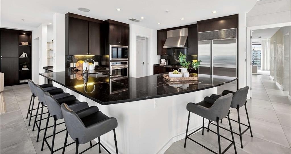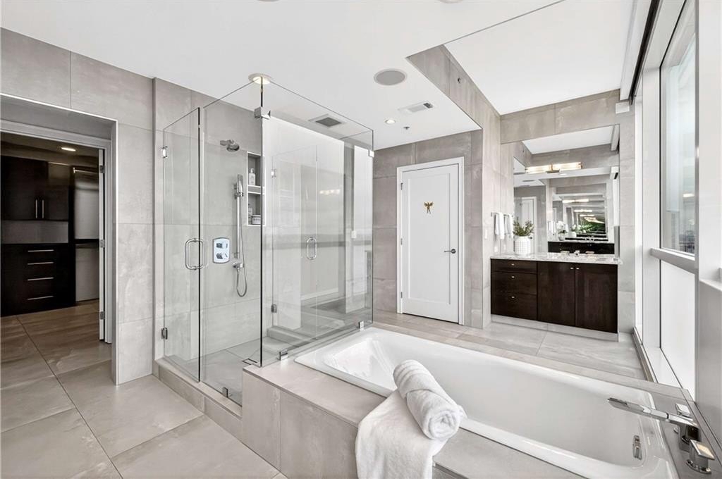 A rare offering in highly sought-after Terminus — one of only three residences with this sexy and coveted floor plan — this impressive corner unit embodies elevated Buckhead living with its expansive layout and nearly 360-degree skyline views from the 3 separate terraces. An entertainer’s dream, the open-concept living area features a fireside great room and a sleek bar complete with Sub-Zero wine storage. The adjoining dining and media rooms flow seamlessly into a gourmet kitchen outfitted with top-of-the-line appliances, including Sub-Zero refrigeration, Wolf gas range and warming drawer, and a convenient breakfast bar. A separate catering entrance off the kitchen makes hosting effortless. Step outside to the oversized, covered terrace and take in breathtaking views of both Buckhead and Downtown — the perfect backdrop for dining or entertaining al fresco. Privately situated, the luxurious primary suite with Venetian plaster walls offers a tranquil retreat with a sitting area framed by floor-to-ceiling corner windows, a private covered terrace with views of Stone Mountain and Buckhead, and an expansive custom walk-in closet with a built-in safe. The spa-inspired bath showcases dual vanities and water closets, a soaking tub, and a frameless glass shower — all positioned to capture the home’s extraordinary vistas. Two additional guest suites, each with ensuite baths, share a third balcony and are thoughtfully placed off the foyer for privacy. Additional highlights include Famosa Italian tile throughout, motorized shades throughout, leak defense water system, Toto toilets, and a fully integrated Lutron and Control4 smart home system and a 1/2 bathroom. Two deeded, covered parking spaces complete this exceptional offering. Perfectly positioned at Terminus, just steps from Buckhead’s finest dining, shopping, and MARTA access.