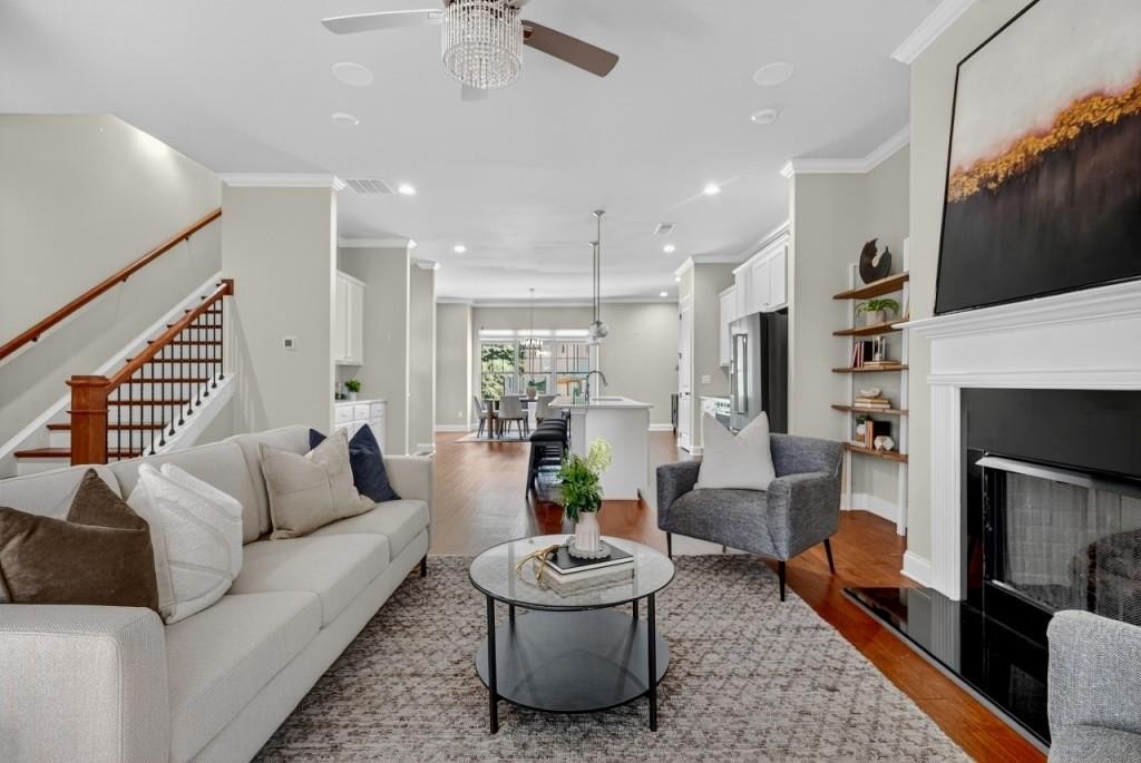 STOP! Say what?! The is the glow-up your current place can't deliver. Inside a quiet, gated enclave, this three-level modern townhouse stunner trades chores for lifestyle. Umm. yes please! Think.sunlit, polished main floor that actually entertains. With a chef's kitchen, statement island, butler's pantry, under-cab lighting, and seamless flow to a tree backdrop deck for golden-hour hangs (and cocki-pooh's). Your living room brings the vibe with a sleek fireplace, a defined dining area that allows seating the crew without playing Tetris (although we love that game). Upstairs commands the reset you've deserved - Inclusive of a spa-style bath with soaking tub + glass shower, dual vanities, and a walk-in that keeps the space for everyone's sanity. Downstairs, you'll find that the private ensuite flexes HARD. It could be a guest suite today, studio/gym/media tomorrow, and because your life isn't one-size-fits-all act as a multi-purpose filled room with endless opportunities. Throughout the home you'll find hardwoods, upstairs laundry (who doesn't love convenience), and a 2-car garage + driveway parking for guests which keeps the daily grind smooth. Lock-and-leave ease, minutes to everything, calm when you want it and close to the hustle and bustle because you crave it even when you don't. If your current address is draining your pockets and lifestyle, this one is screaming to not compromise and proves you can have the best of all worlds. You should buy it because this is the one you'll kick yourself for not jumping on this one before it's too late.