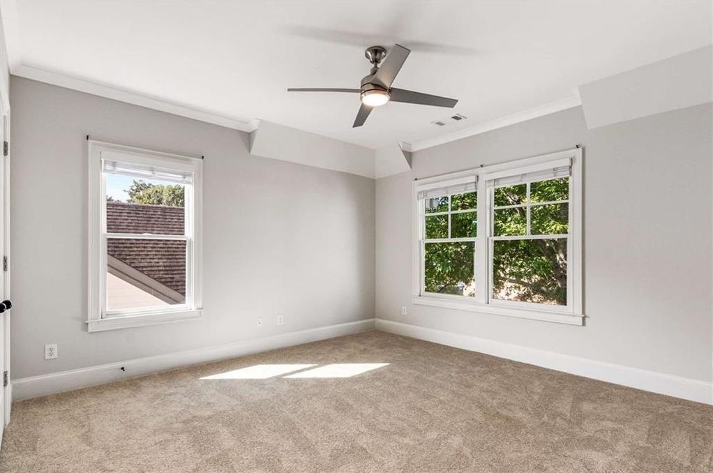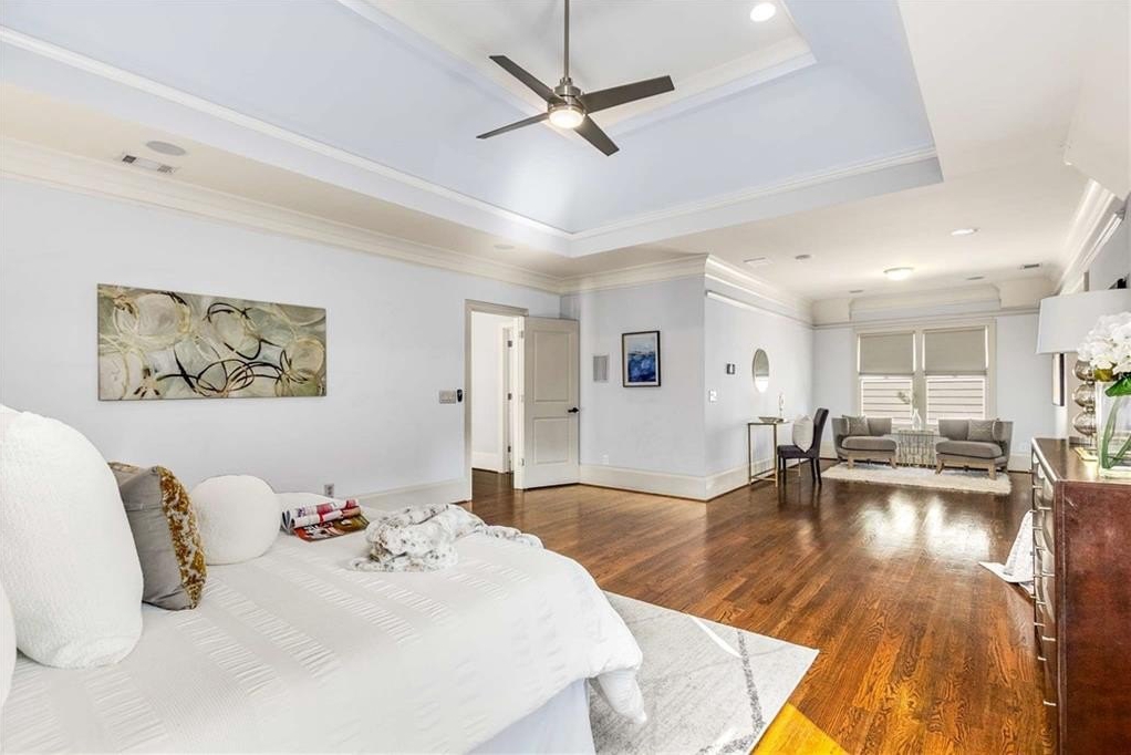 Upstairs, the oversized primary suite is a true retreat with a sitting room, two spacious