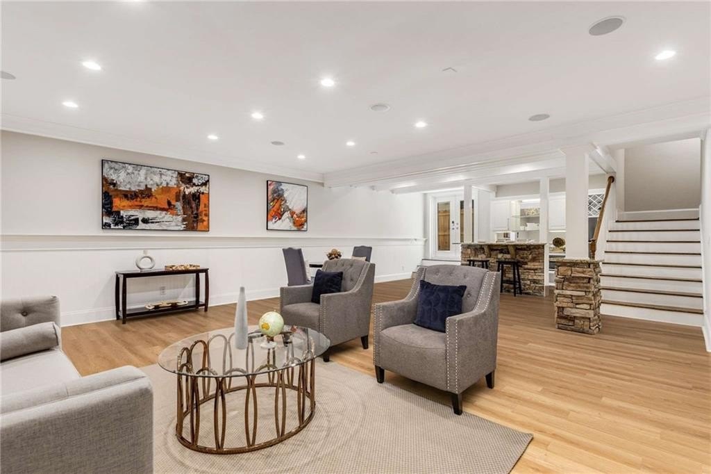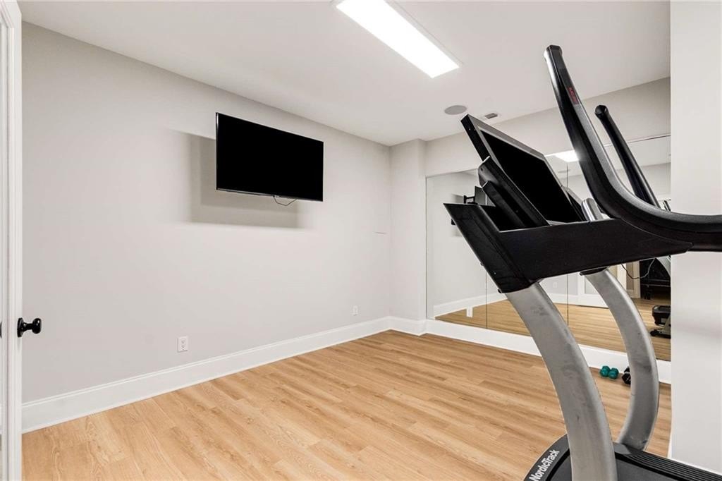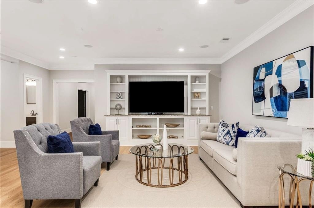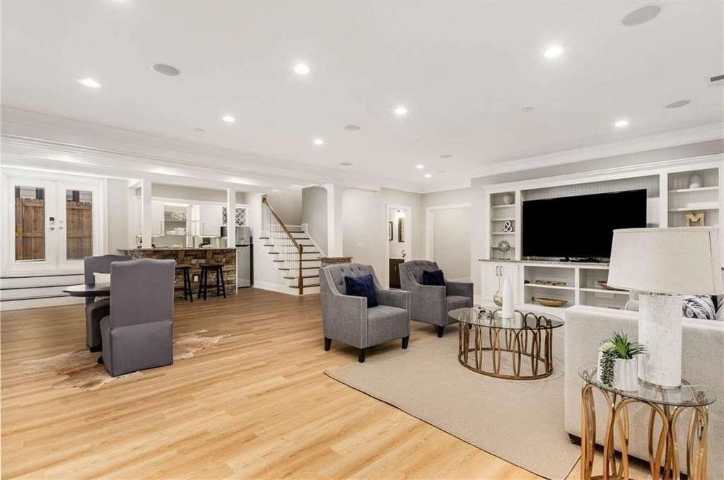 The terrace level offers a spacious family room perfect for entertaining or watching