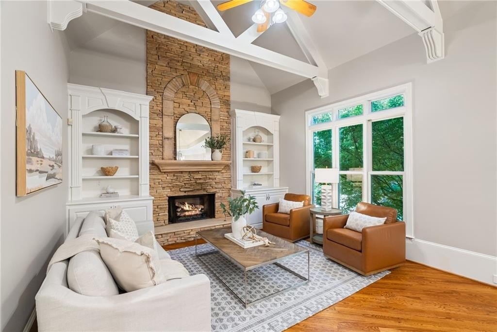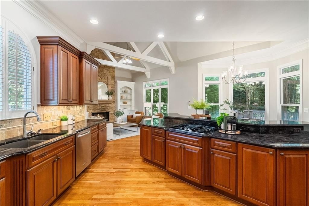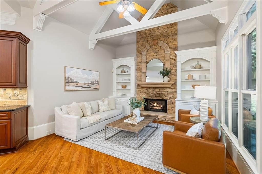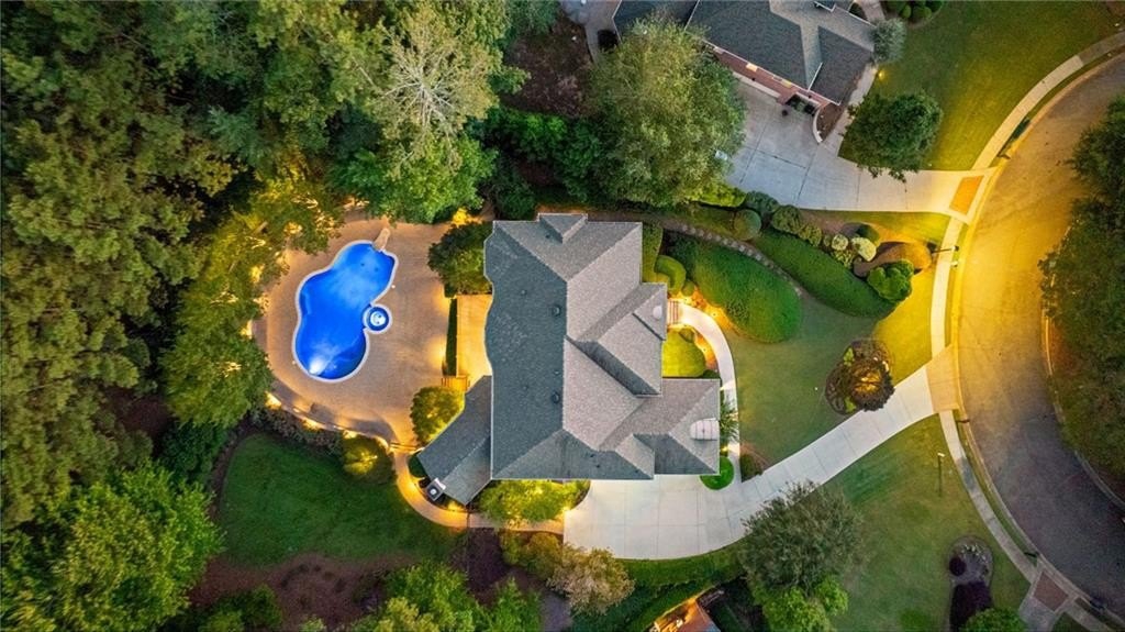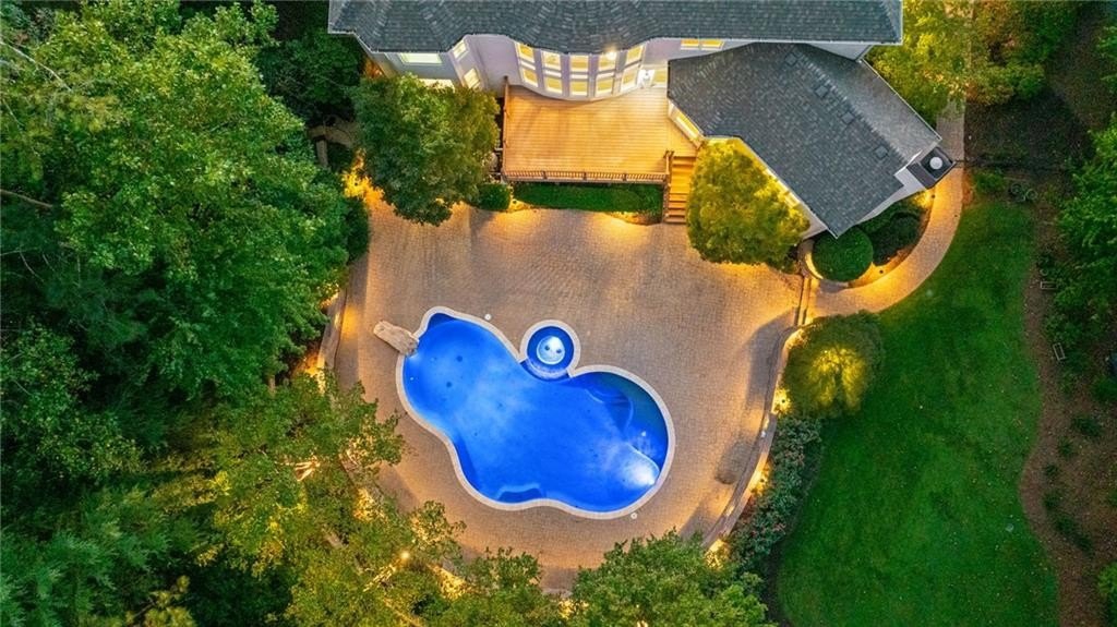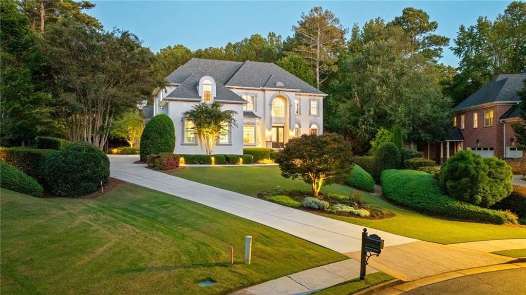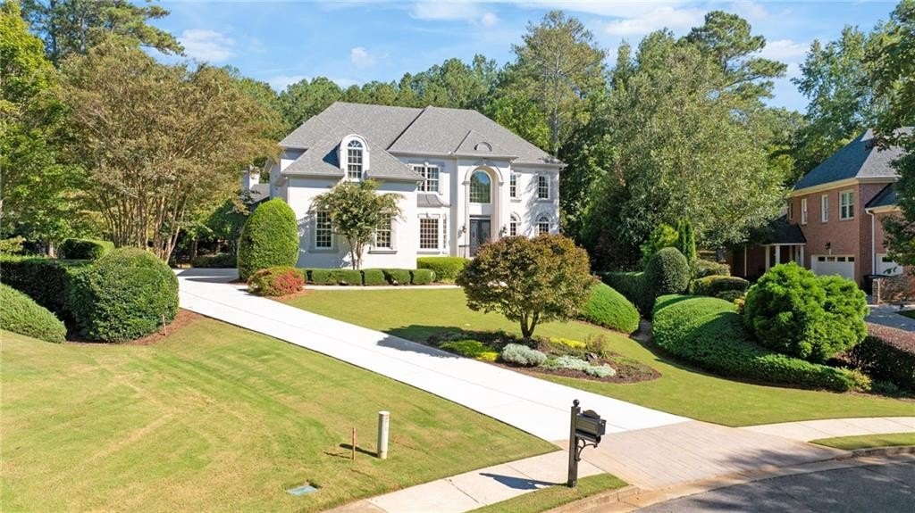 Gorgeous Hard Coat Stucco Executive Home with a HEATED SALT WATER POOL & SPA in the HIGHLY DESIRABLE LAKE SHORE SECTION of the master planned Windward Community. Situated on an ACRE LOT(.96), has a 3 CAR GARAGE and is tucked away on a private enclave AT THE END OF A CUL-DE-SAC with private wooded views from the front and back yard! Conveniently located less than 1 mile from the PRESTIGIOUS GOLF CLUB OF GEORGIA. This home has been incredibly maintained by the original owner with beautiful updates throughout. The MAIN FLOOR has beautiful mahogany front doors, elegant Millwork, STUNNING FLOOR TO CEILING WALL OF WINDOWS overlooking a private backyard with mature landscaping, Trex decking and a hardscaped pool deck and spa. Beautiful lighting enhancements surround the outdoor spaces. The floor plan has an expansive kitchen (including stainless steel appliances, a warming drawer and wine / beverage cooler) and keeping room with vaulted ceilings and a traditional family room - both with built ins and separate fireplaces just in time for fall. As you enter from the garage (which features an epoxy finish on the floor), a thoughtfully redesigned mud room with built in storage, a stackable washer & dryer discreetly located inside the built in cabinets, a conveniently located secondary refrigerator/freezer and a updated half bath with a nearby friends side entrance door complete this space. Don't miss the hidden pantry closet above the bench! There is also a beautiful home office with wood paneled walls and a floor to ceiling library, a full bedroom and bathroom suite and a formal dining room complete this main level. UPSTAIRS you will find a RENOVATED MASTER SUITE with an oversized master bedroom complete with a sitting area and a 3rd fireplace, a redesigned master bathroom with another stackable washer and dryer unit conveniently located right next to one of the walk in master closets. Gorgeous marble floor to wall finishing, a heated floor and a zero entry oversized double shower with a large bench. Three additional secondary bedrooms - all with their own private updated bathrooms and walk in closets complete this floor. THE FINISHED BASEMENT has updated LVP Vinyl floor planks and mirror the main floor plan. It features a secondary family / TV room, a separate theatre room (could be used as another private home office), a home gym, a bedroom and full bathroom suite as well as 2 unfinished storage rooms that offer additional flexibility. DON'T MISS THE 4TH FLOOR STAIRS THAT LEAD TO AN ADDITIONAL FULLY DECKED ATTIC STORAGE AREA! ADDITIONAL UPDATES AND ENHANCEMENTS INCLUDE: 8 yo roof, 1 yo pool heater, brand new driveway and front walkway (2025), all windows replaced on the main and upper floors with Anderson vinyl clad windows and newer insulated garage doors. Windward has AMAZING RESORT STYLE AMENITIES, including: Lake Windward for boating & sailing (with its own boat launch), fishing, neighborhood parks, dog parks, picnic areas, sports park (baseball, basketball, etc). Optional amenities include swim/tennis community with multiple swimming pools & courts, a marina, a water park, and a golf membership as well. Great information is on the community website!