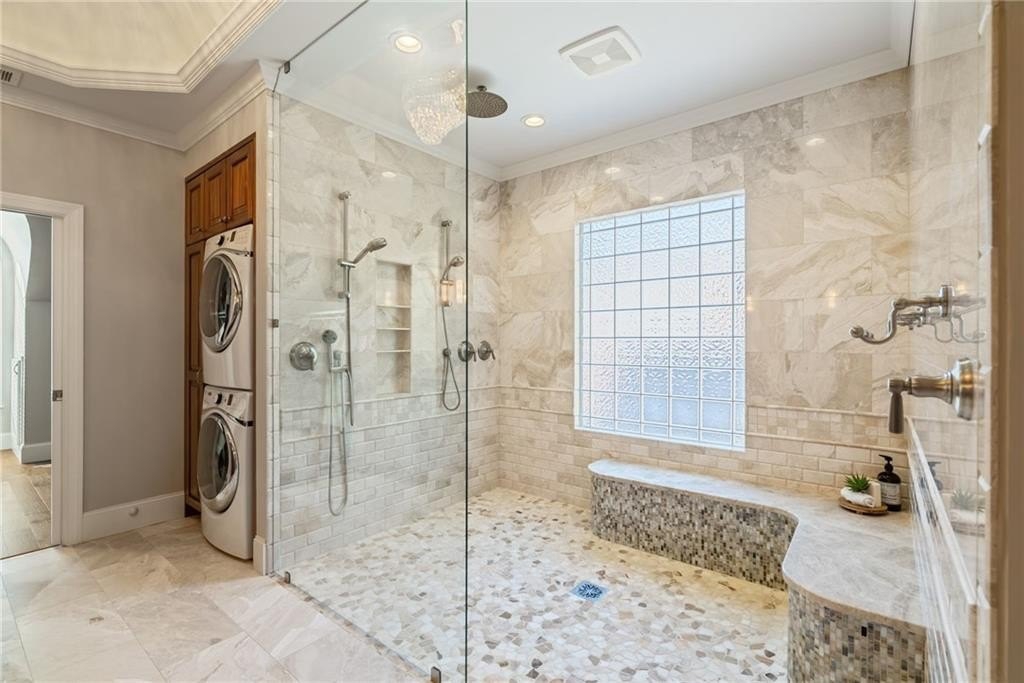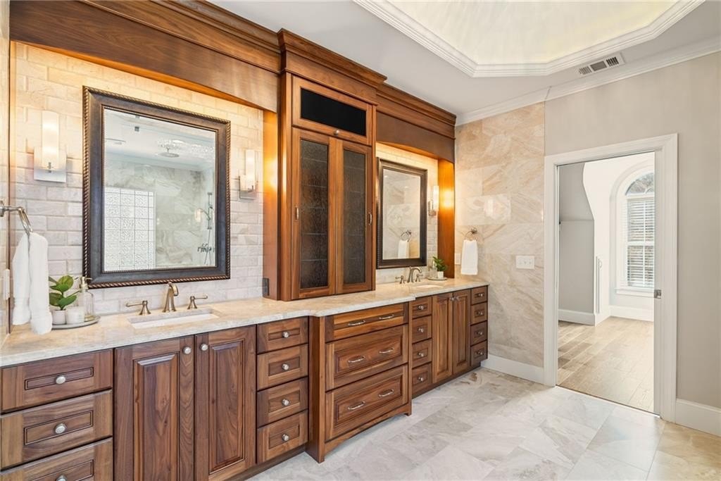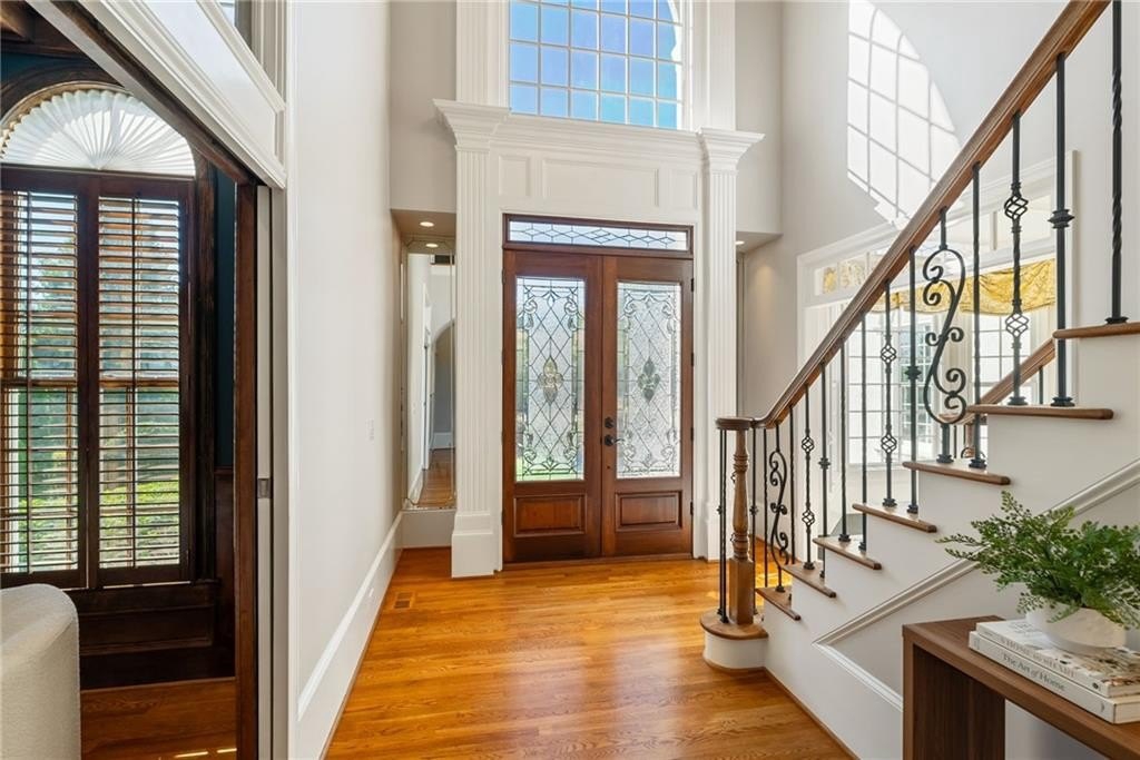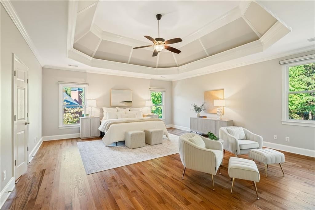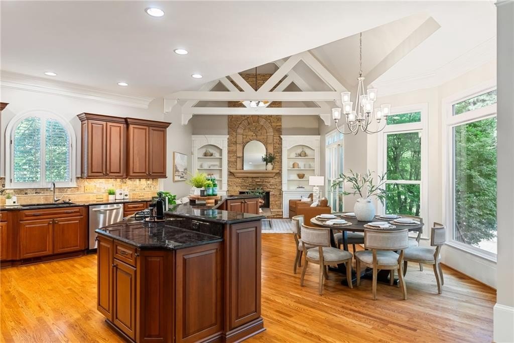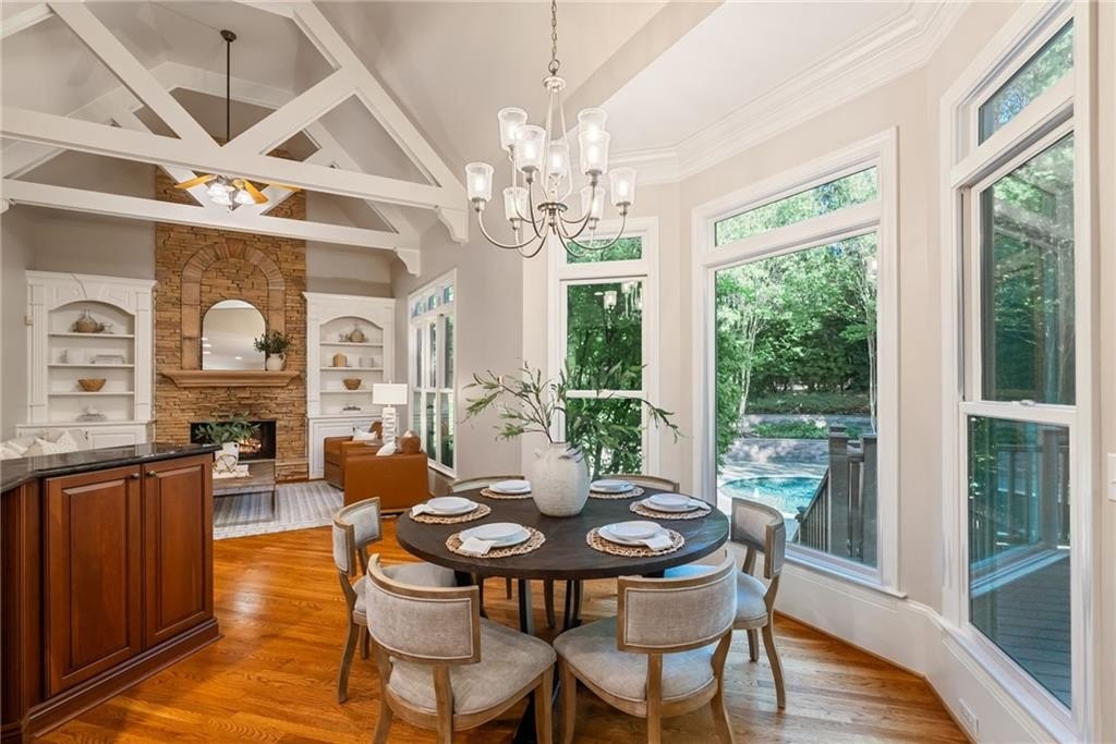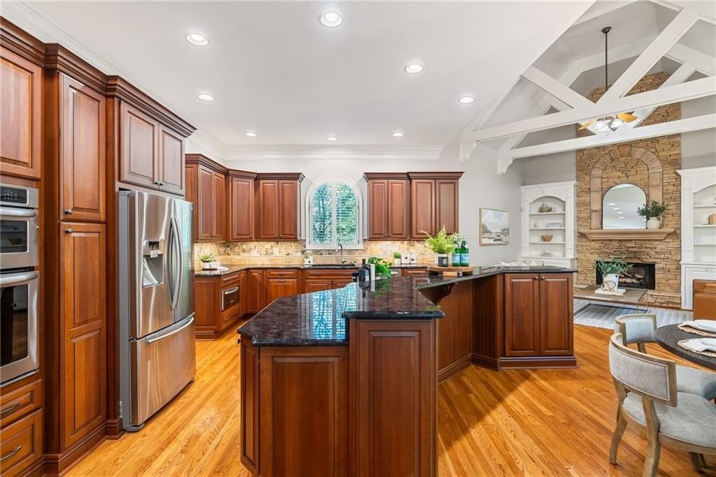 Gorgeous Hard Coat Stucco Executive Home with a HEATED SALT WATER POOL & SPA in the HIGHLY DESIRABLE LAKE SHORE SECTION of the master planned Windward Community. Situated on an ACRE LOT(.96), has a 3 CAR GARAGE and is tucked away on a private enclave AT THE END OF A CUL-DE-SAC with private wooded views from the front and back yard! Conveniently located less than 1 mile from the PRESTIGIOUS GOLF CLUB OF GEORGIA. This home has been incredibly maintained by the original owner with beautiful updates throughout. The MAIN FLOOR has beautiful mahogany front doors, elegant Millwork, STUNNING FLOOR TO CEILING WALL OF WINDOWS overlooking a private backyard with mature landscaping, Trex decking and a hardscaped pool deck and spa. Beautiful lighting enhancements surround the outdoor spaces. The floor plan has an expansive kitchen (including stainless steel appliances, a warming drawer and wine / beverage cooler) and keeping room with vaulted ceilings and a traditional family room - both with built ins and separate fireplaces just in time for fall. As you enter from the garage (which features an epoxy finish on the floor), a thoughtfully redesigned mud room with built in storage, a stackable washer & dryer discreetly located inside the built in cabinets, a conveniently located secondary refrigerator/freezer and a updated half bath with a nearby friends side entrance door complete this space. Don't miss the hidden pantry closet above the bench! There is also a beautiful home office with wood paneled walls and a floor to ceiling library, a full bedroom and bathroom suite and a formal dining room complete this main level. UPSTAIRS you will find a RENOVATED MASTER SUITE with an oversized master bedroom complete with a sitting area and a 3rd fireplace, a redesigned master bathroom with another stackable washer and dryer unit conveniently located right next to one of the walk in master closets. Gorgeous marble floor to wall finishing, a heated floor and a zero entry oversized double shower with a large bench. Three additional secondary bedrooms - all with their own private updated bathrooms and walk in closets complete this floor. THE FINISHED BASEMENT has updated LVP Vinyl floor planks and mirror the main floor plan. It features a secondary family / TV room, a separate theatre room (could be used as another private home office), a home gym, a bedroom and full bathroom suite as well as 2 unfinished storage rooms that offer additional flexibility. DON'T MISS THE 4TH FLOOR STAIRS THAT LEAD TO AN ADDITIONAL FULLY DECKED ATTIC STORAGE AREA! ADDITIONAL UPDATES AND ENHANCEMENTS INCLUDE: 8 yo roof, 1 yo pool heater, brand new driveway and front walkway (2025), all windows replaced on the main and upper floors with Anderson vinyl clad windows and newer insulated garage doors. Windward has AMAZING RESORT STYLE AMENITIES, including: Lake Windward for boating & sailing (with its own boat launch), fishing, neighborhood parks, dog parks, picnic areas, sports park (baseball, basketball, etc). Optional amenities include swim/tennis community with multiple swimming pools & courts, a marina, a water park, and a golf membership as well. Great information is on the community website!