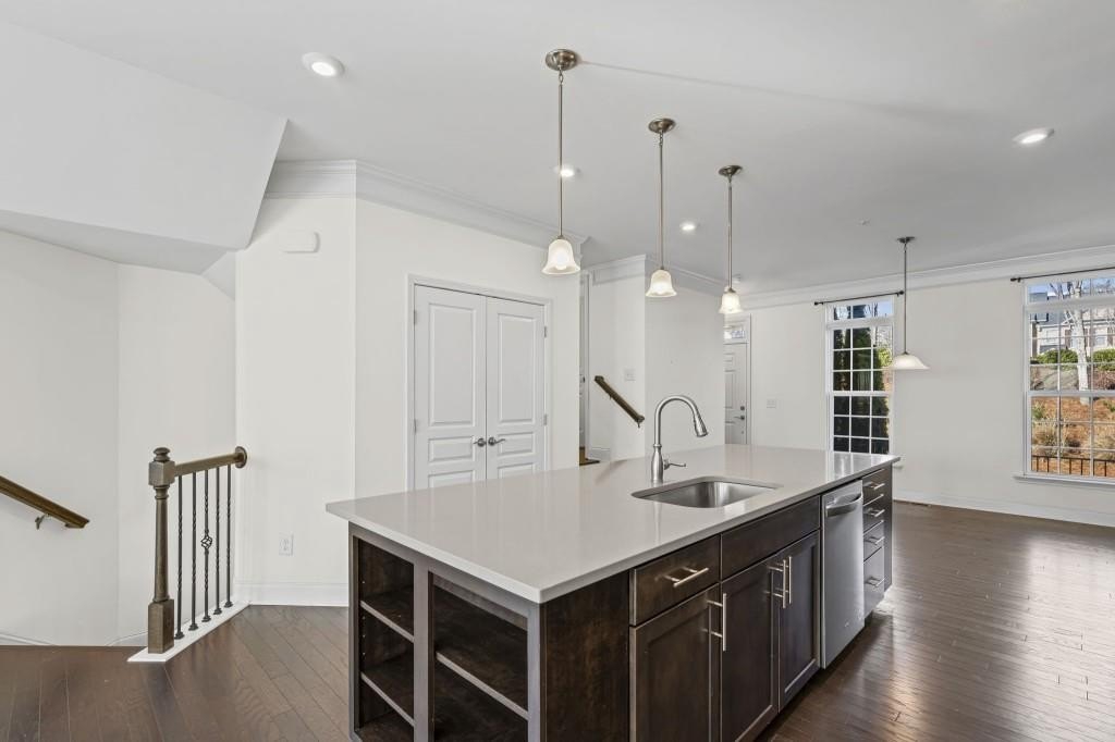 Welcome home to this stunning 3-bedroom, 3.5-bath end-unit townhome in the heart of Alpharetta. Designed for both comfort and entertaining, flooded with natural light, this home features an inviting open floor plan with hardwood floors throughout, solid-surface countertops, and a spacious chef's kitchen that is truly an entertainer's delight. The main level offers seamless open-concept living, connecting the living room, kitchen, eat-in area, and dining room. Step outside to the oversized back deck perfect for morning coffee or evening cocktails. The primary suite is a true retreat, featuring a walk-in shower, double vanities, and two generous walk-in closets with custom closet systems. With 10-foot ceilings and upscale finishes throughout, this home blends modern luxury with everyday convenience. The terrace level provides a versatile in-law suite, teen suite, or home office. Enjoy easy access to the community pool and clubhouse, enhancing the low-maintenance lifestyle this neighborhood offers. Ideally located within walking distance to Avalon and just minutes from GA-400 and Downtown Alpharetta, this home is close to parks, restaurants, shopping, schools, and entertainment. Located just over a mile from The Gathering, a highly anticipated mixed-use development currently under construction, this property places you at the center of exciting future dining, shopping, and entertainment options.
