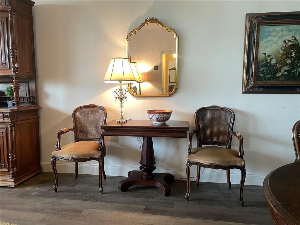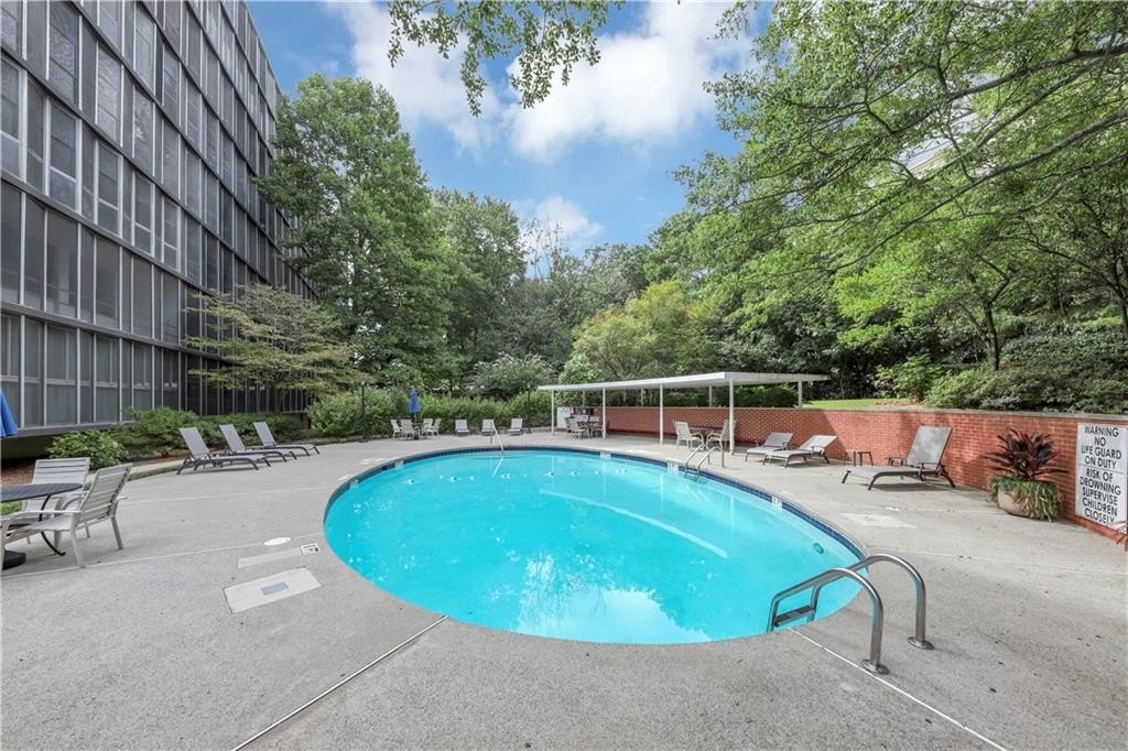 Walk to all Buckhead has to offer at this incredible rate. This oversized 2 bedroom unit is tucked away on private cul-de-sac in the center of Buckhead and is not to be missed! Tall ceilings with newly installed luxury vinyl plank flooring and newly remodeled kitchen enhances the European Styling and gives you Parisian vibes. Fully furnished option, this unit has tons of windows for great light enhancing the spacious screened porch that runs the full length of the condo with treetop views of the southeastern Buckhead Skyline. HOA fee is basically all inclusive and includes unlimited utilities (power, heat & air, water, trash, sewer) & this is a no pet building. Additional fee for designated parking options are gated garage, gated lot or open lot depending on availability. Building has daily on site management, a maintenance team, library conference room, gym, pool, grilling area garden area with gazebo and special secure pedestrian access to Saint Regis Drive, Whole Foods and all the dinning or night life options Buckhead offers. Also offered for rent furnished.