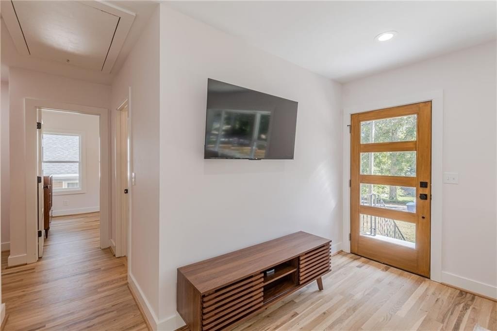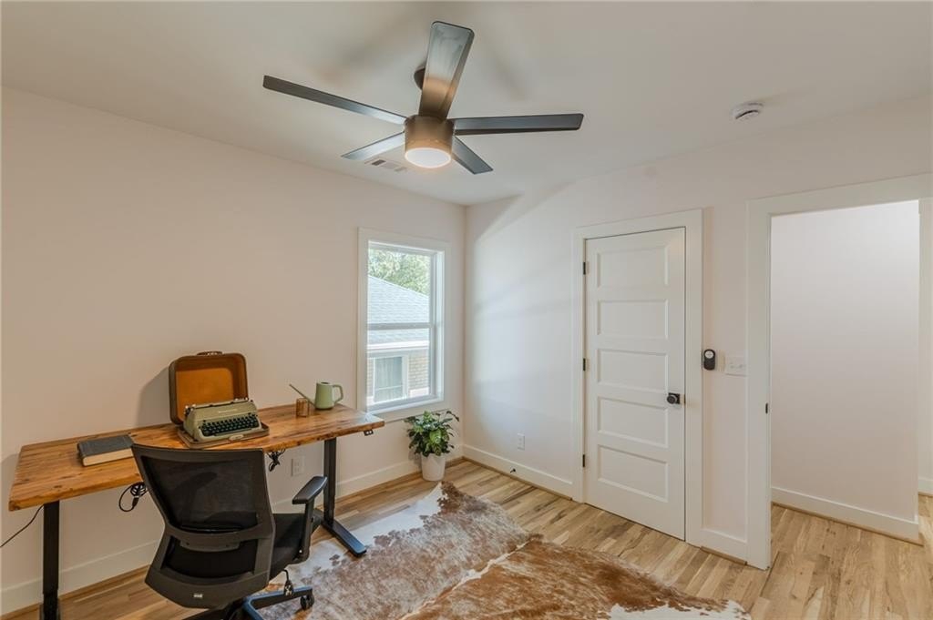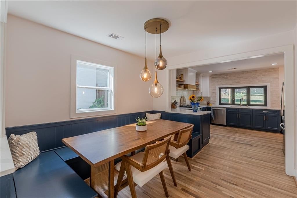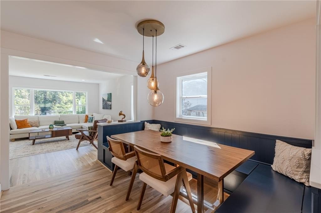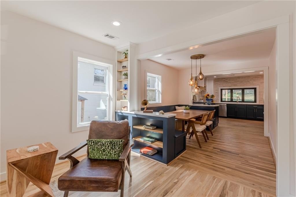 Ideally located just over a quarter mile from the Westside BeltLine entrance, this fully renovated 3-bedroom, 2-bath mid-century modern ranch blends timeless design with modern convenience in one of Atlanta’s most walkable and welcoming neighborhoods. Thoughtful landscaping frames the home’s classic MCM lines, while inside you’ll find an open floor plan with custom shelving, designer lighting, quartz countertops throughout, and a built-in dining banquet that seats up to eight. The kitchen features an accordion window that creates that indoor-outdoor connection seamlessly to nearly a quarter acre of cleared backyard—perfect for entertaining at your new firepit or creating your garden oasis. Renovated in 2025 with all new plumbing, electrical, roof, Hardie plank siding on the addition, natural white oak hardwood floors, new HVAC, energy-efficient fiberglass doors, and smart-home upgrades including Ring and Nest, this home is both stylish and functional. The spacious primary suite is a true retreat, with a spa-like feel featuring a soaking tub that fits two, glass-enclosed shower, double vanity, private water closet, and walk-in closet with wood shelving. Steps from Patchwork City Farms, breweries, coffee houses, MARTA, and Lee + White, this move-in ready home offers the perfect combination of location, charm, and modern updates—cherished by one family for three generations and now ready to welcome yours.