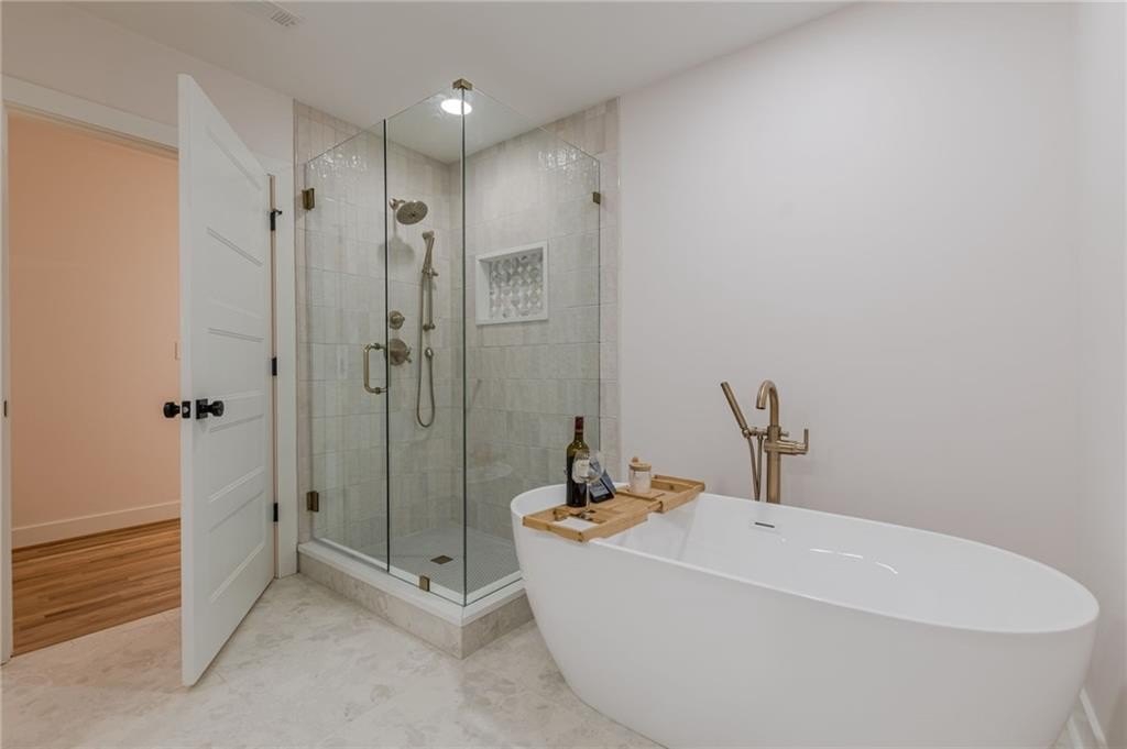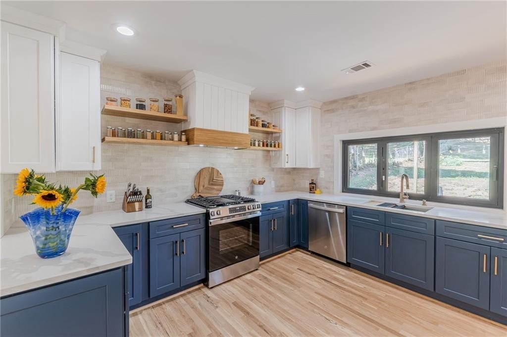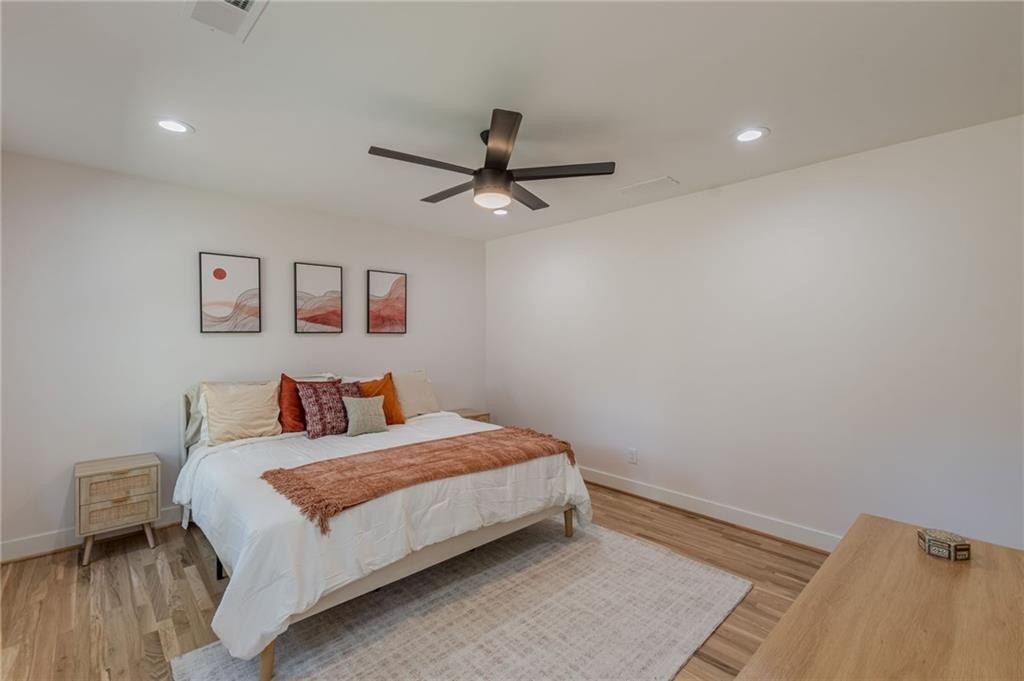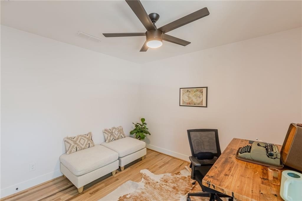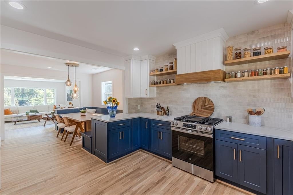 Ideally located just over a quarter mile from the Westside BeltLine entrance, this fully renovated 3-bedroom, 2-bath mid-century modern ranch blends timeless design with modern convenience in one of Atlanta’s most walkable and welcoming neighborhoods. Thoughtful landscaping frames the home’s classic MCM lines, while inside you’ll find an open floor plan with custom shelving, designer lighting, quartz countertops throughout, and a built-in dining banquet that seats up to eight. The kitchen features an accordion window that creates that indoor-outdoor connection seamlessly to nearly a quarter acre of cleared backyard—perfect for entertaining at your new firepit or creating your garden oasis. Renovated in 2025 with all new plumbing, electrical, roof, Hardie plank siding on the addition, natural white oak hardwood floors, new HVAC, energy-efficient fiberglass doors, and smart-home upgrades including Ring and Nest, this home is both stylish and functional. The spacious primary suite is a true retreat, with a spa-like feel featuring a soaking tub that fits two, glass-enclosed shower, double vanity, private water closet, and walk-in closet with wood shelving. Steps from Patchwork City Farms, breweries, coffee houses, MARTA, and Lee + White, this move-in ready home offers the perfect combination of location, charm, and modern updates—cherished by one family for three generations and now ready to welcome yours.